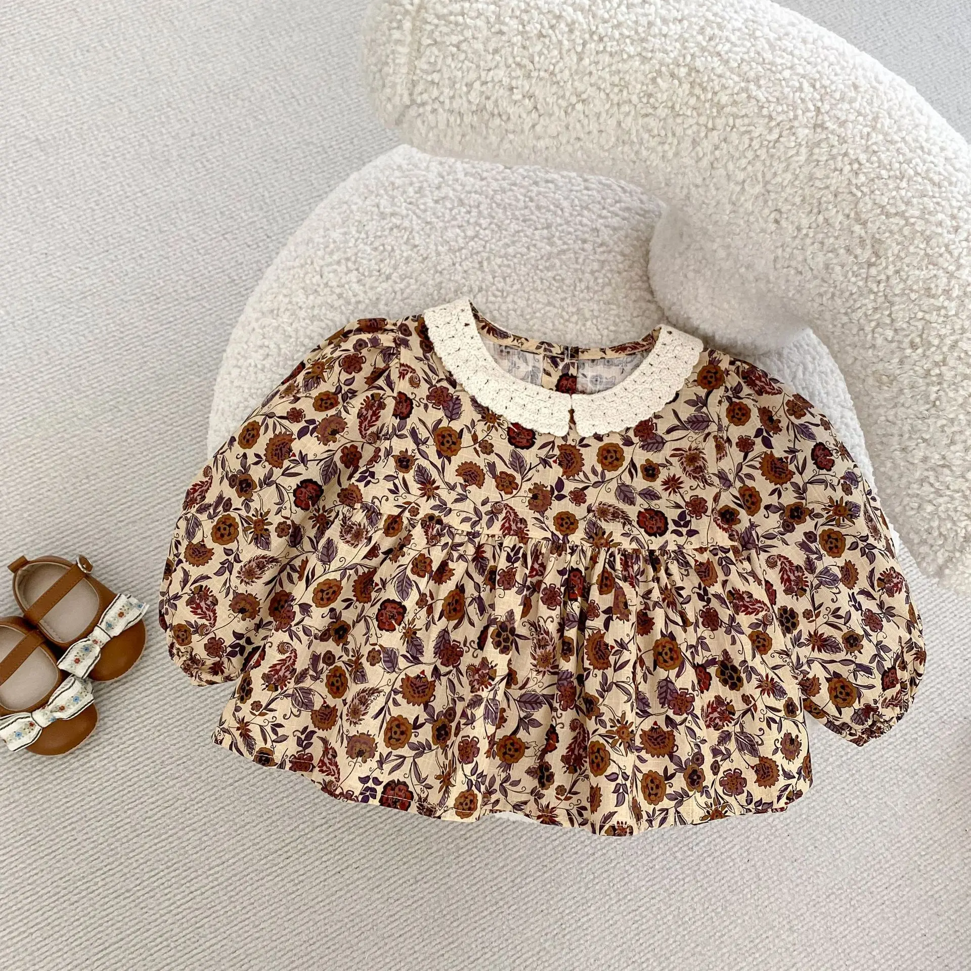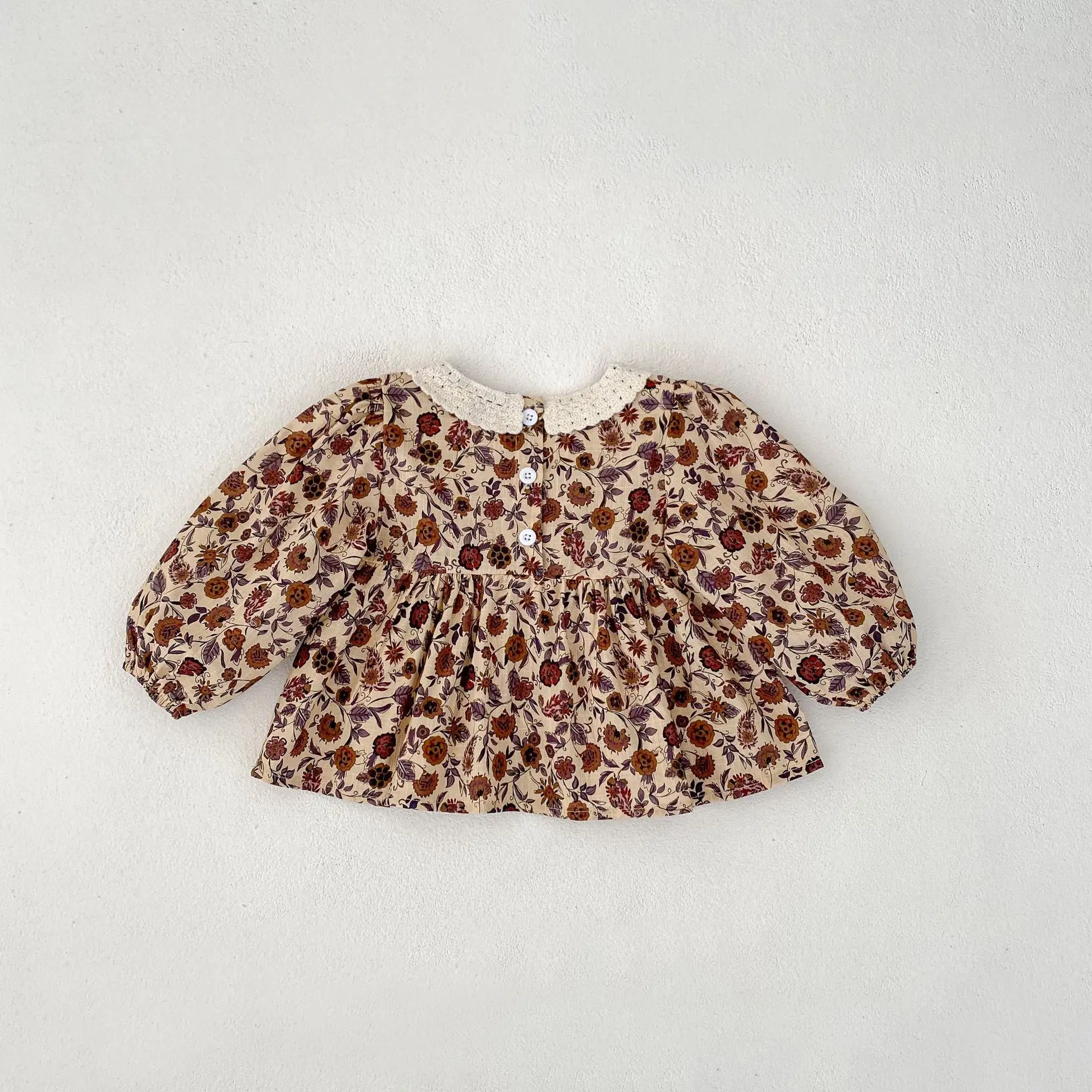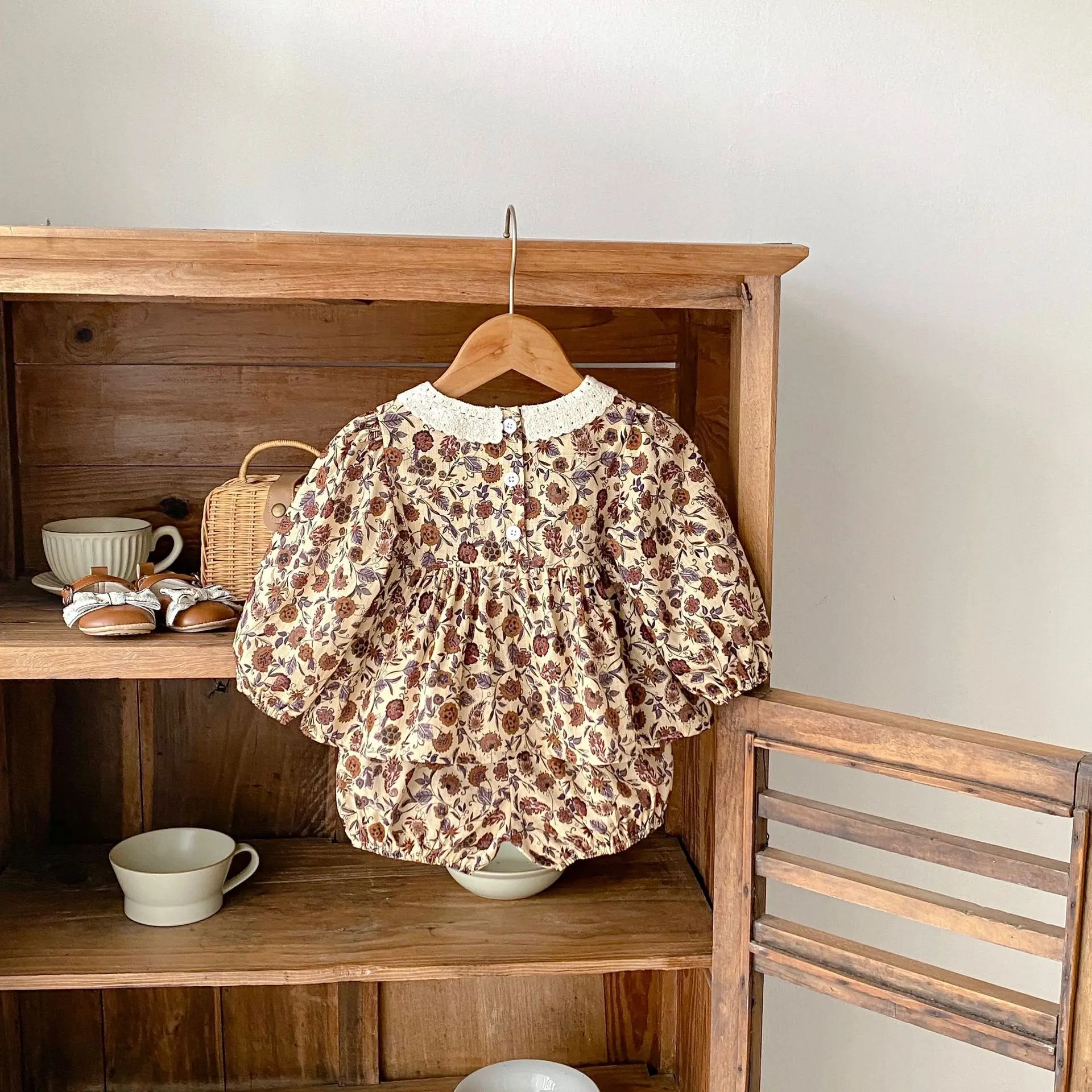 #Baby and kids set #Lace collar #Flower print #Long sleeve blouse #Balloon pants #Fashionable baby #Baby clothes
