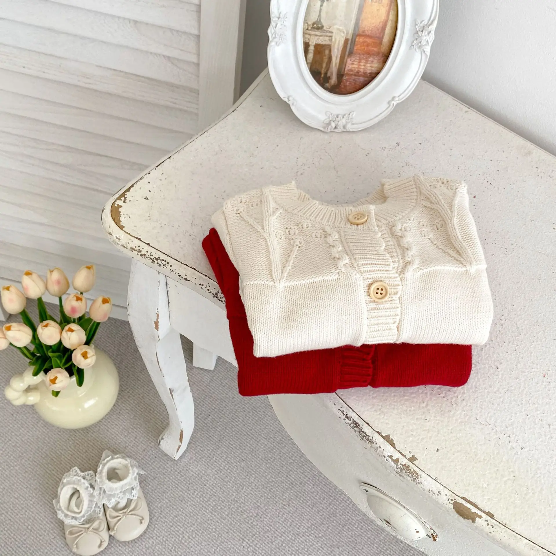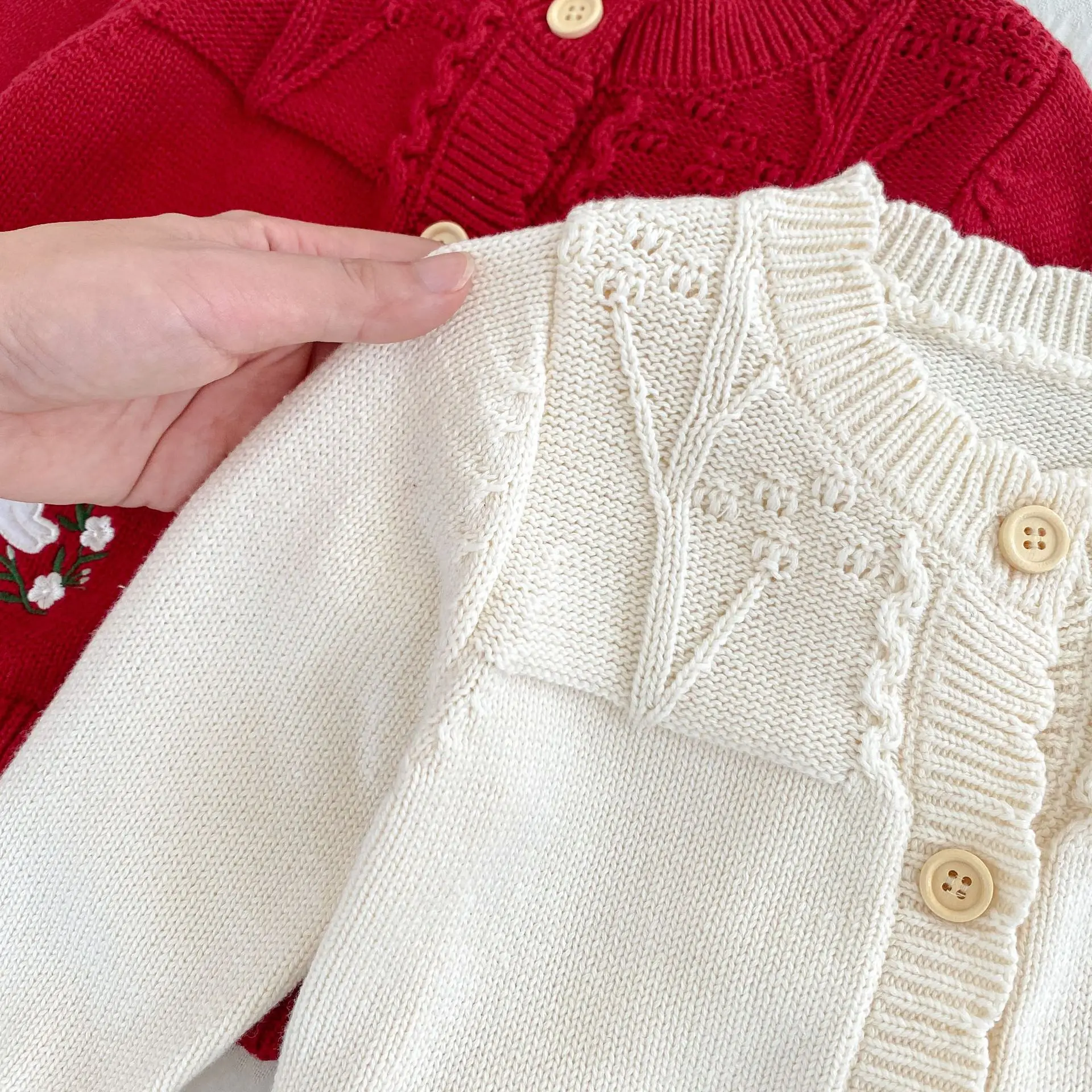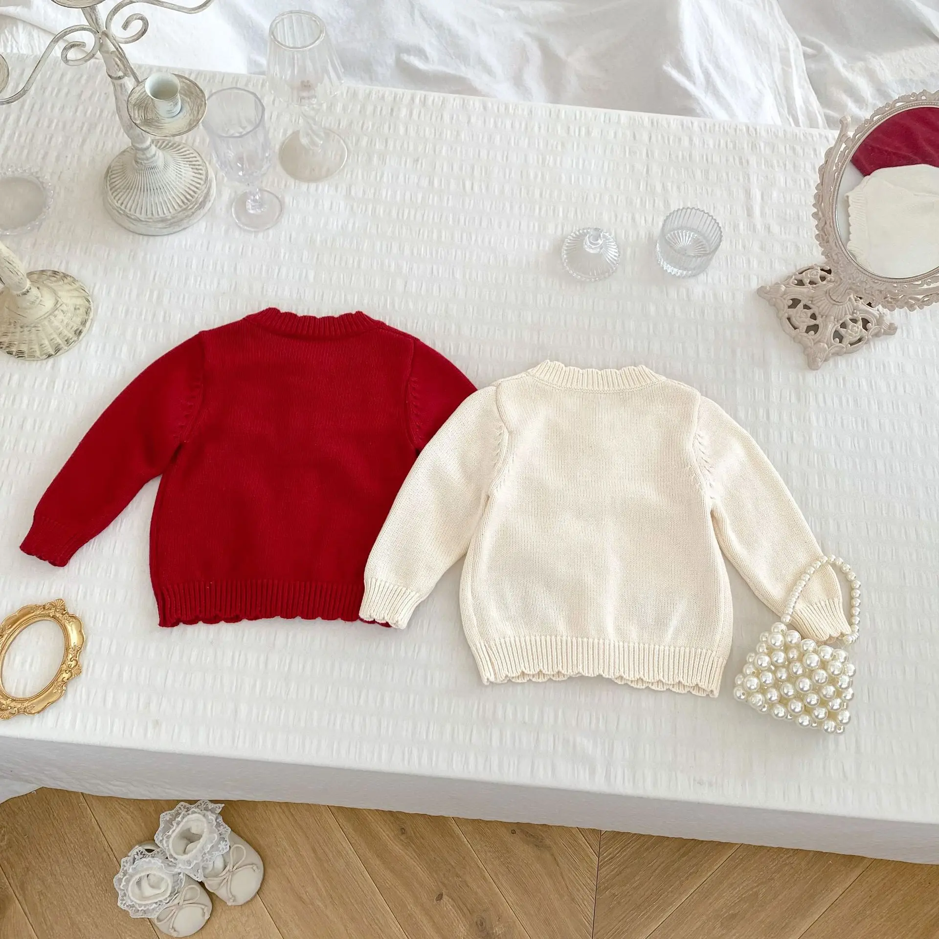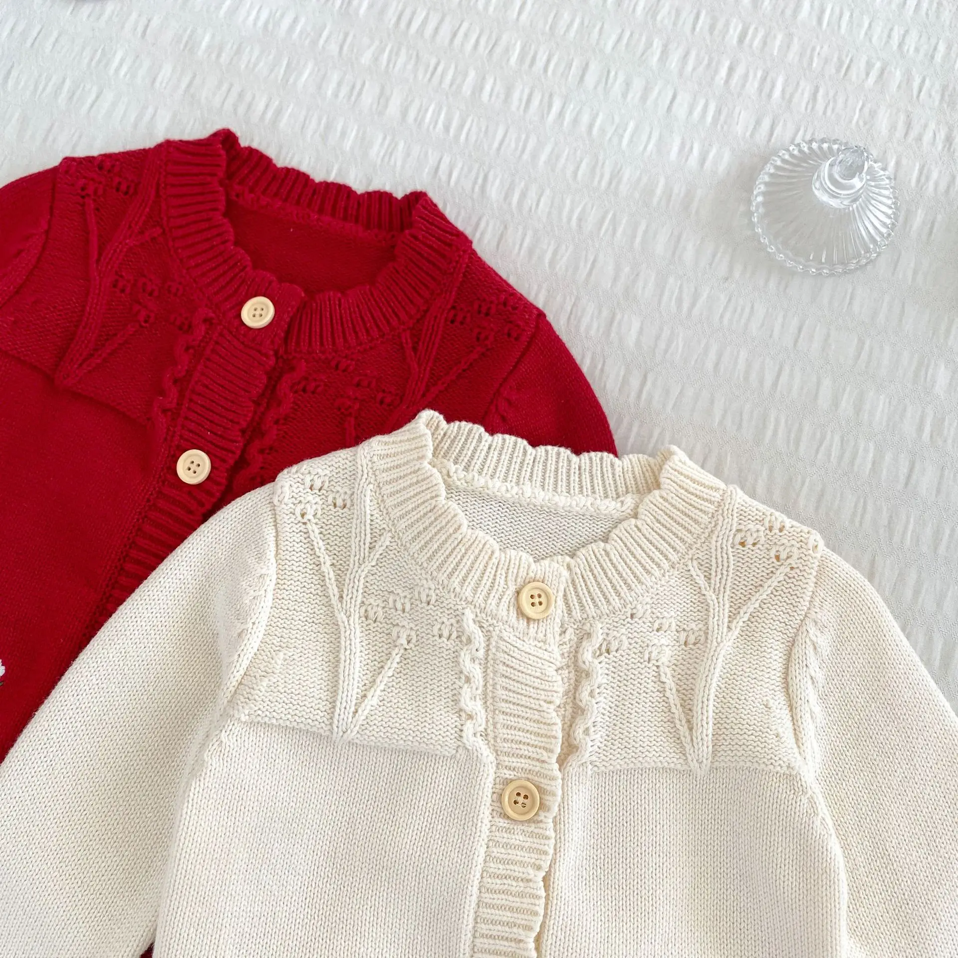 #Baby cardigan #Rabbit embroidery #Ruffle collar T-shirt #Knit jacket #Winter baby clothes #Stylish baby outfit