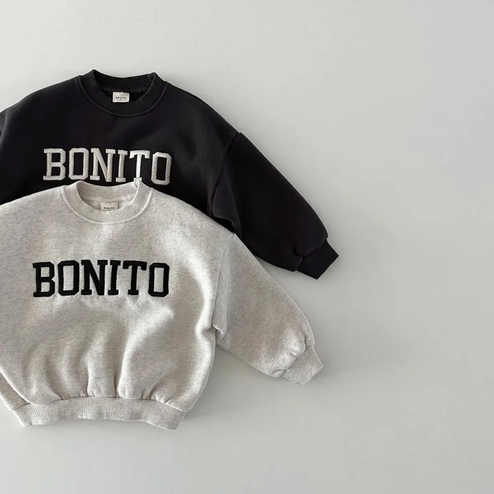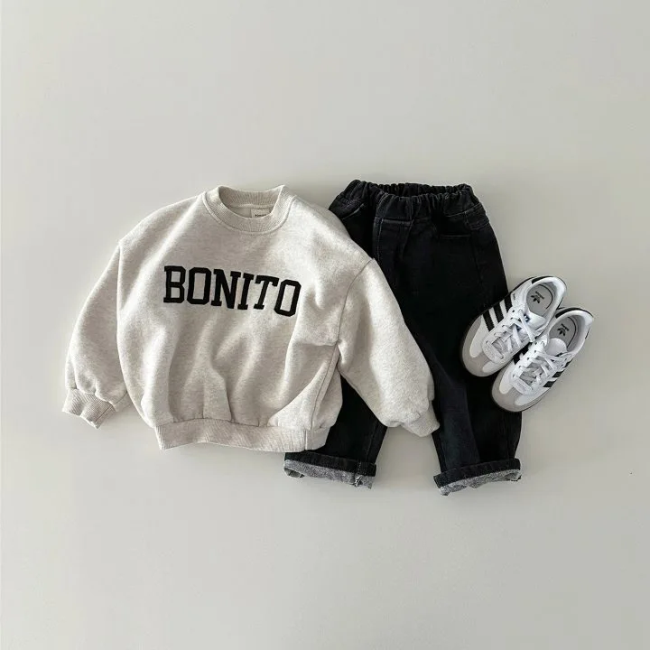 This fleece-lined long-sleeved sweatshirt with embroidered letter logo is the perfect warmth for the cold season. Made of soft velour material, it is soft to the touch and comfortable to wear. The simple yet stylish design goes well with any outfit and is perfect for everyday use. It comes in two colors, so you can choose according to your preference. Be sure to add it to your child's stylish winter wardrobe.