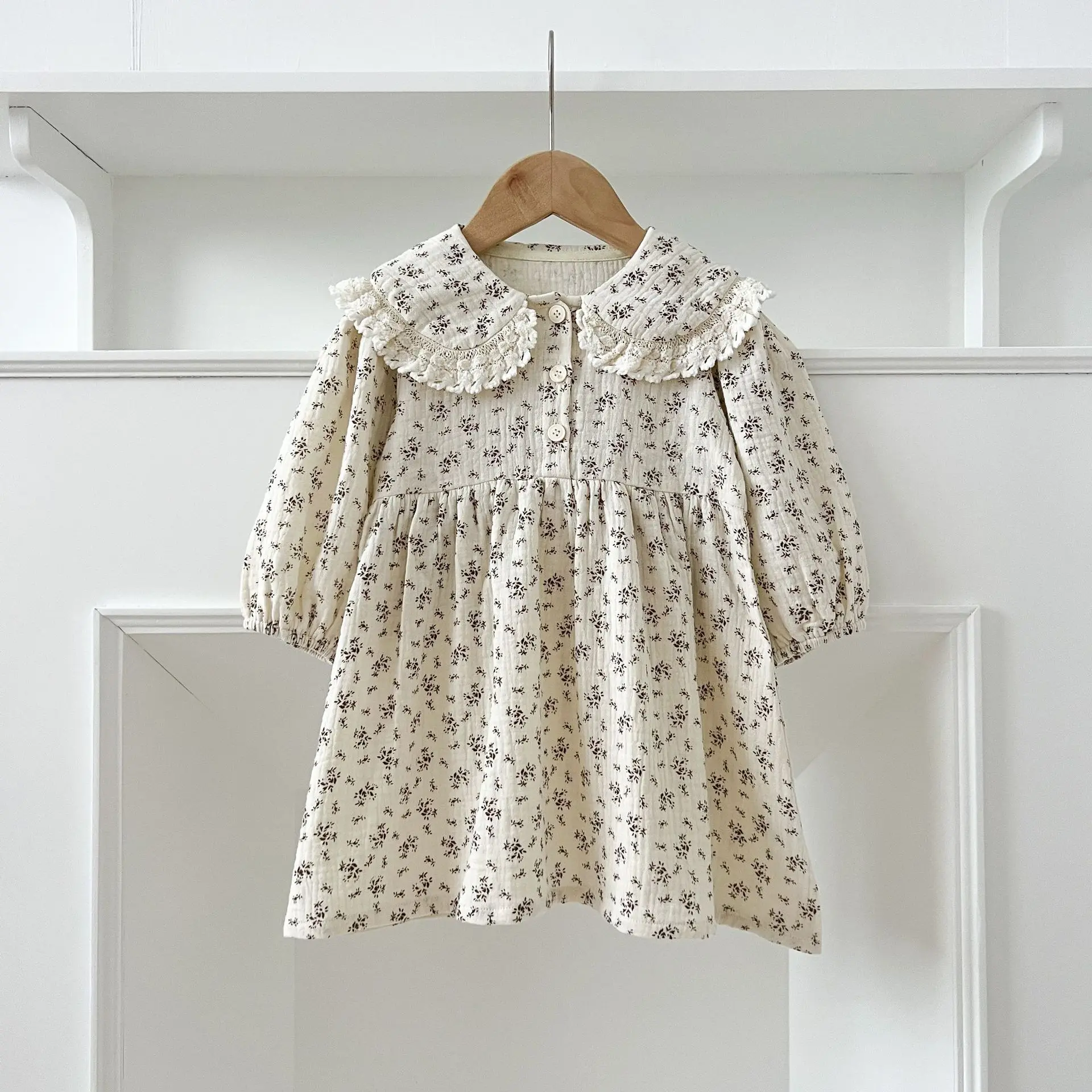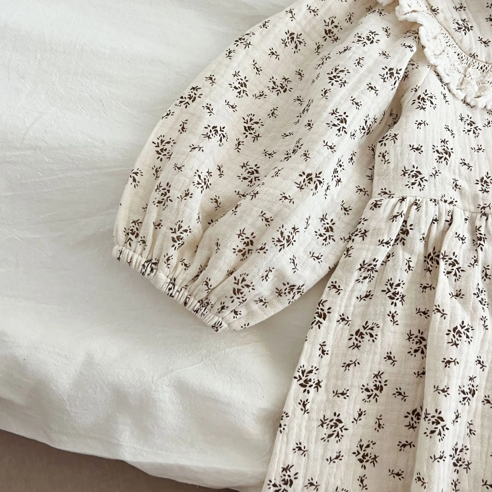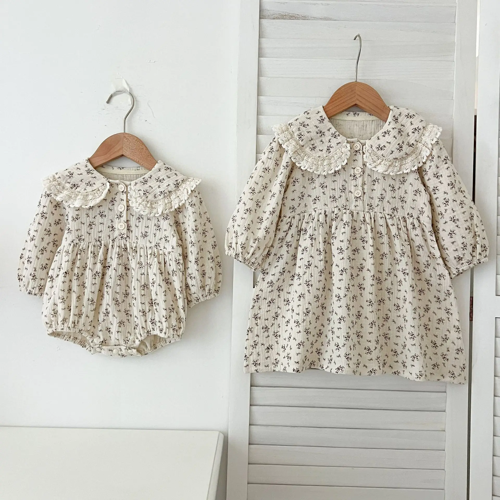 Baby Romper/Kids Dress, Lace Round Collar Floral Print Long Sleeve Bodysuit/Dress, Matching Outfits for Sisters [mh0007537]