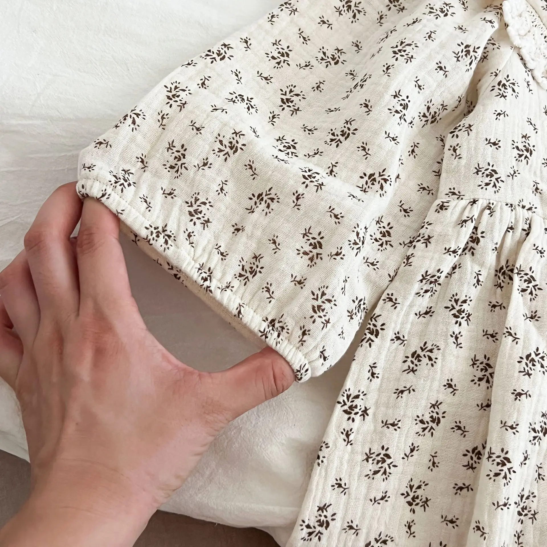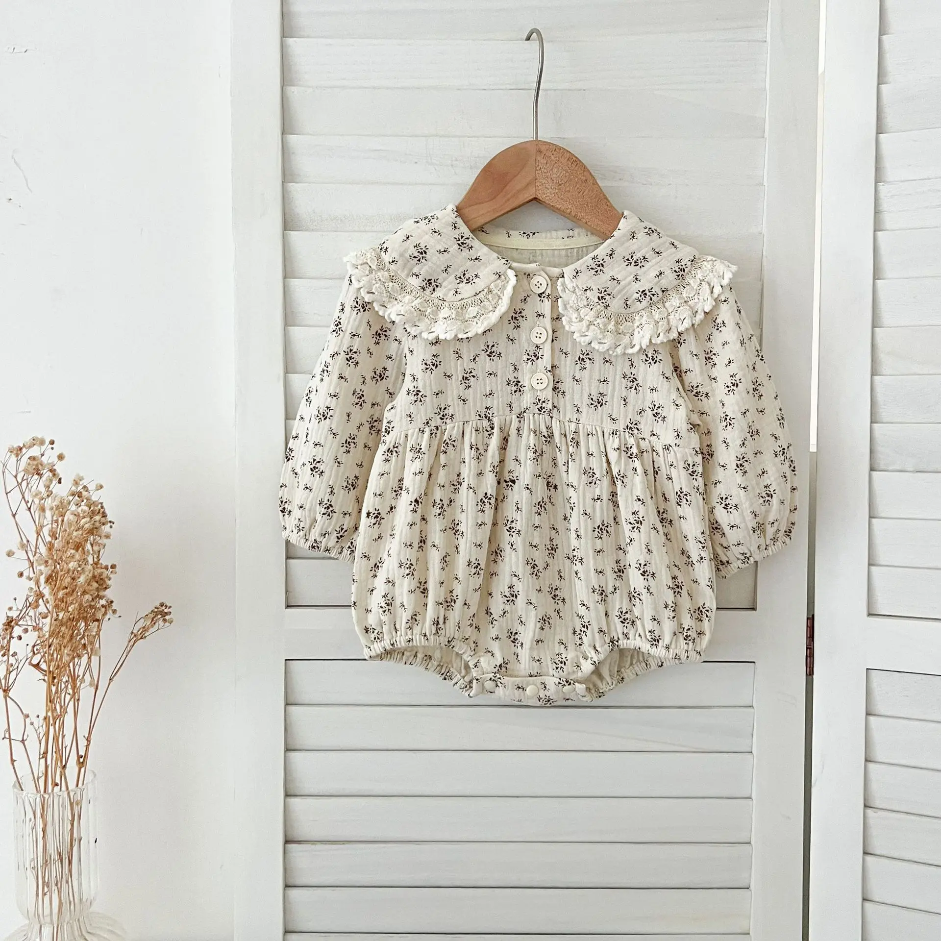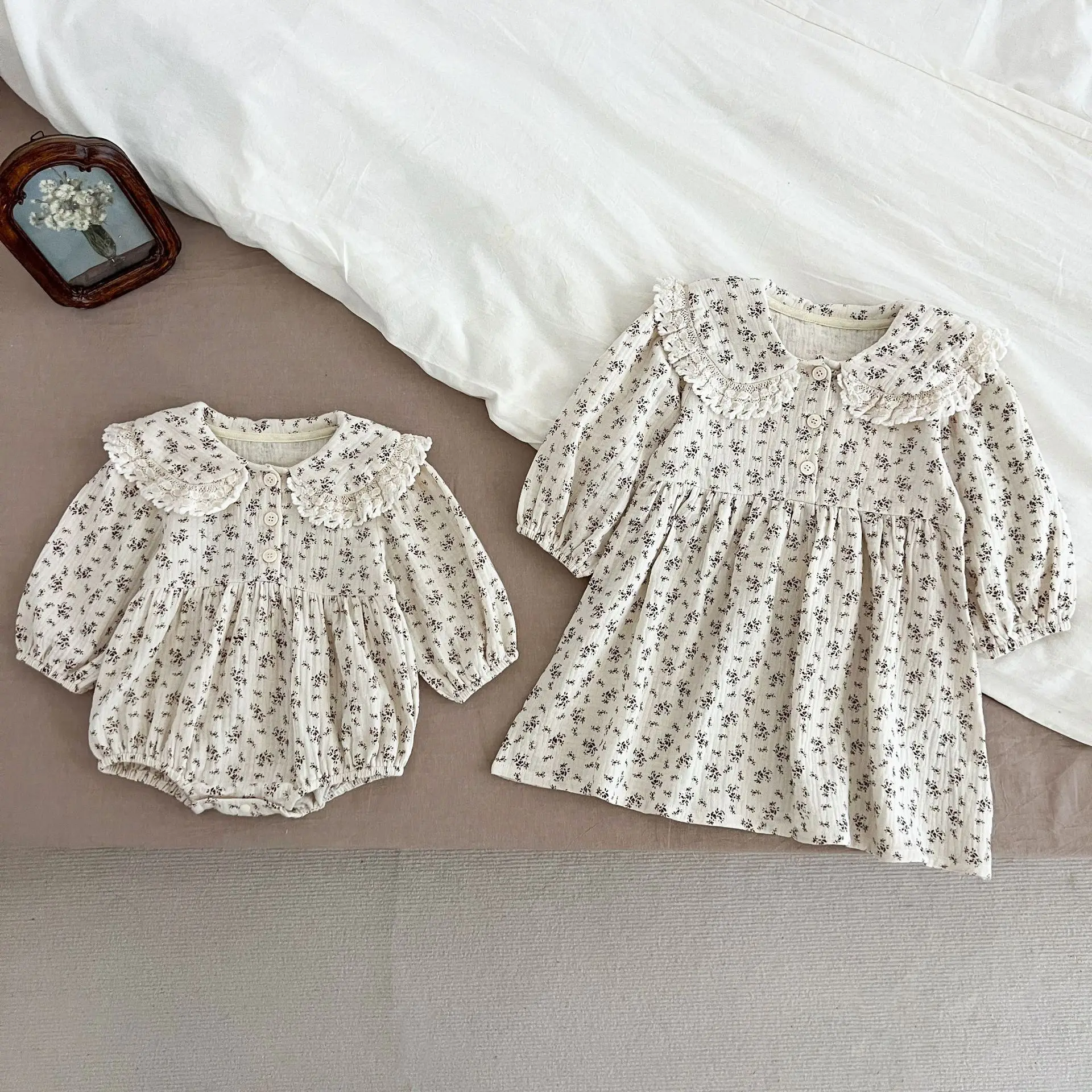 #Baby rompers #Flower print #Round lace collar #Sisters outfit #Matching style #Fashionable baby