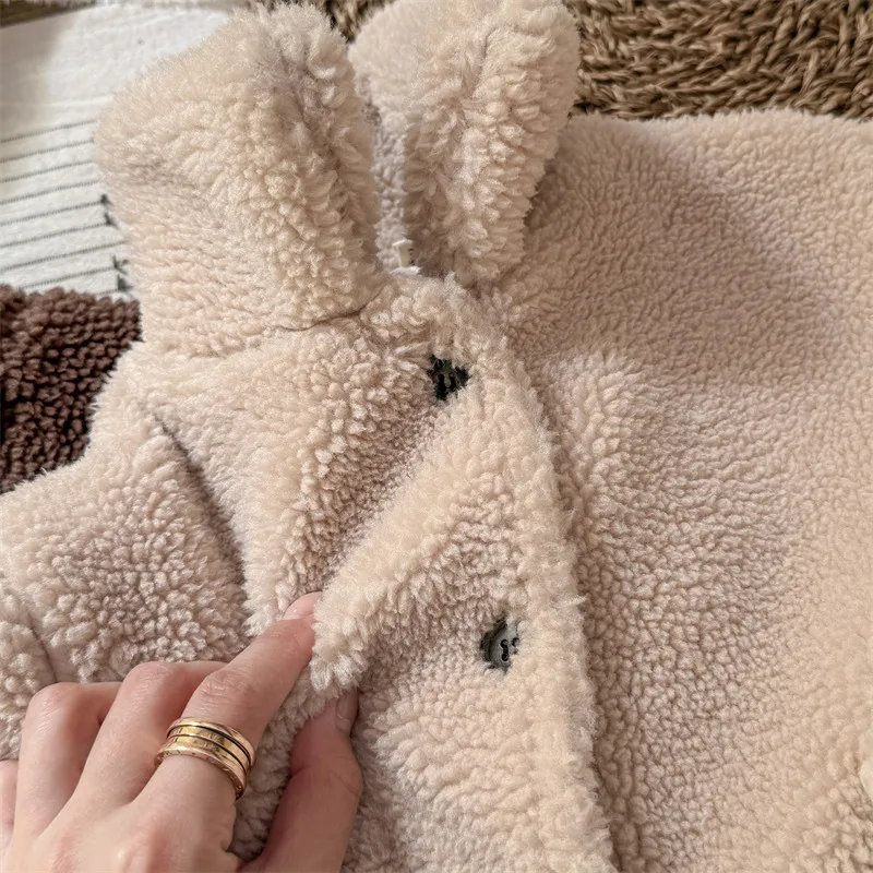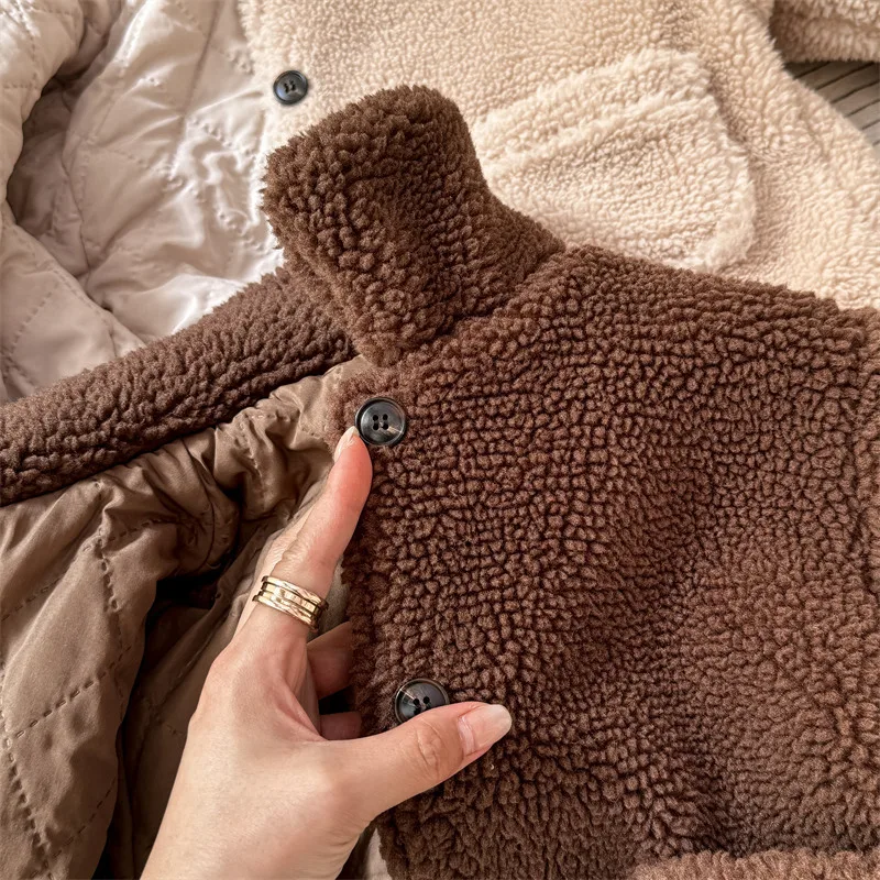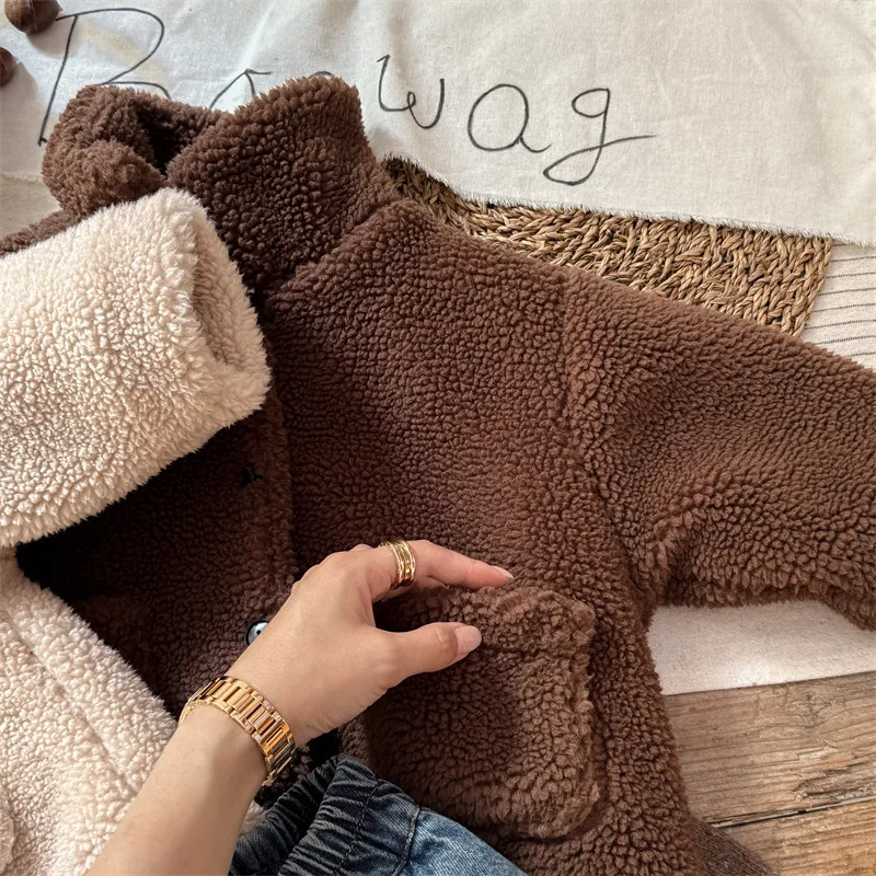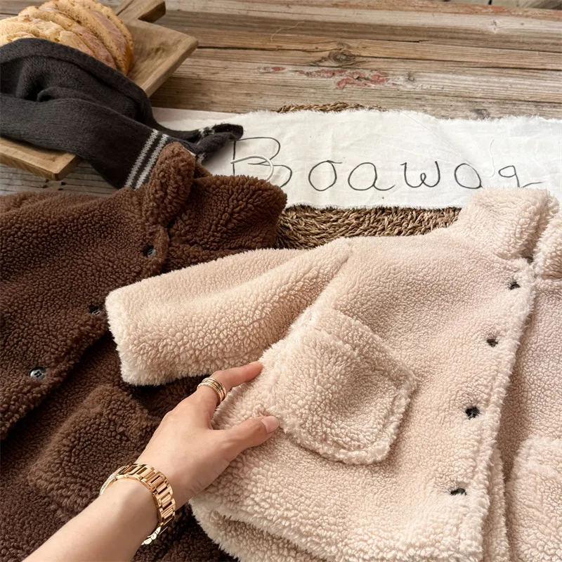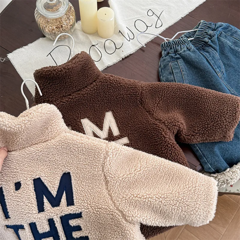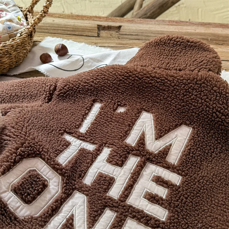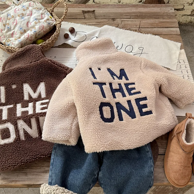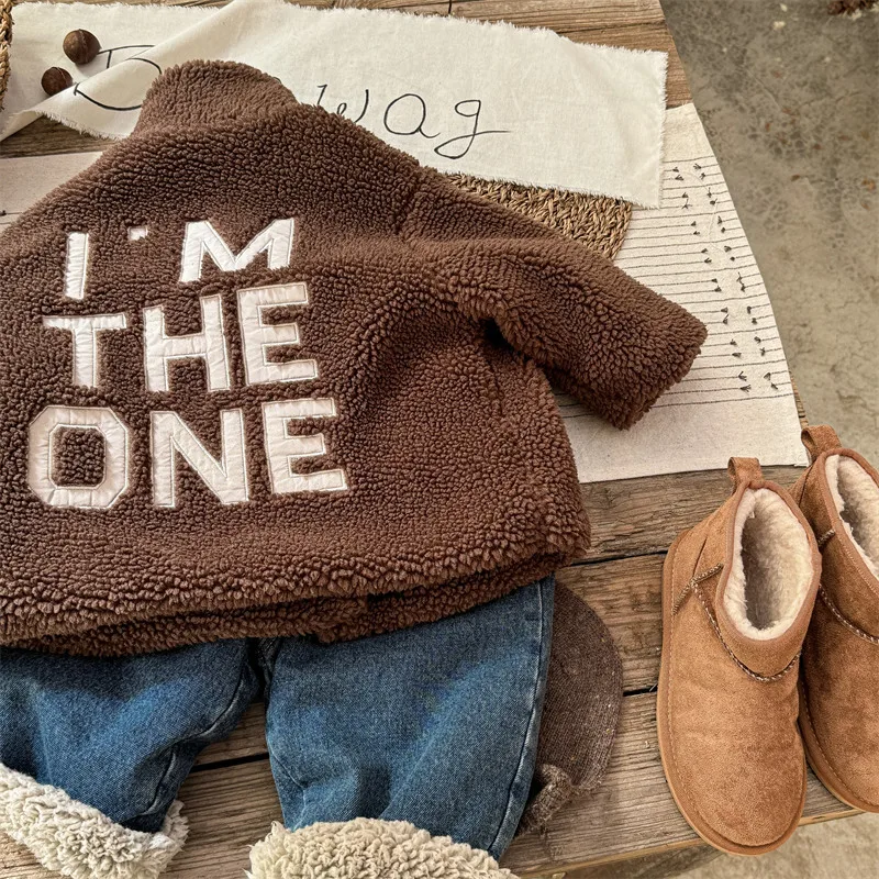 #kids outerwear #boa fleece #stand collar #back letter logo #winter outfit #fashionable kids