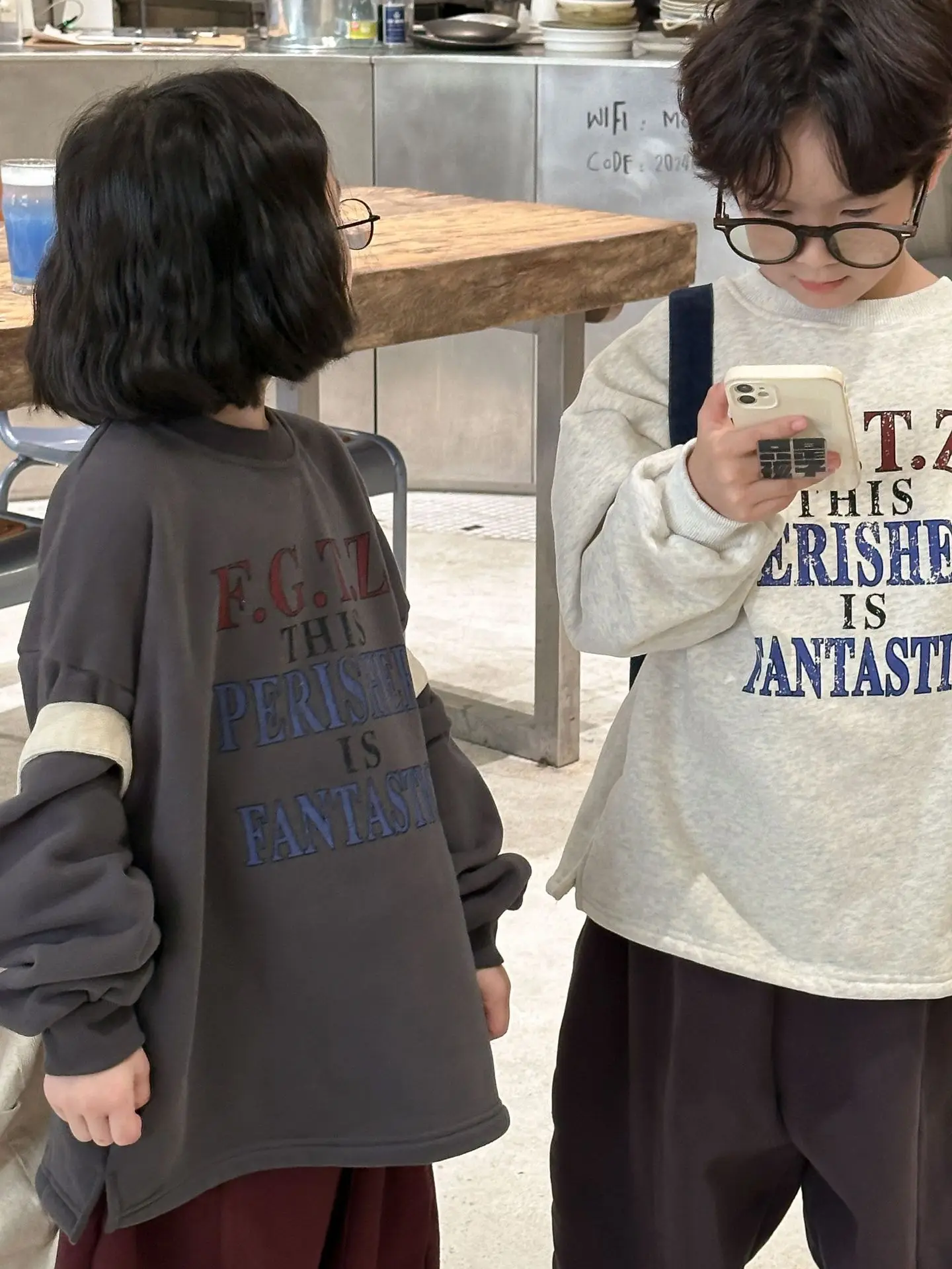 #kids fashion #baby fashion #thick t-shirt #letter logo #korean children's clothing #long sleeve tops #casual wear