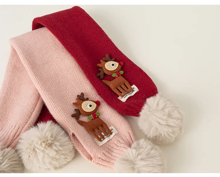 Baby Kids Scarf Knitted Neck Warmer with Reindeer Applique Pompoms 2 Colors [mh0007580]