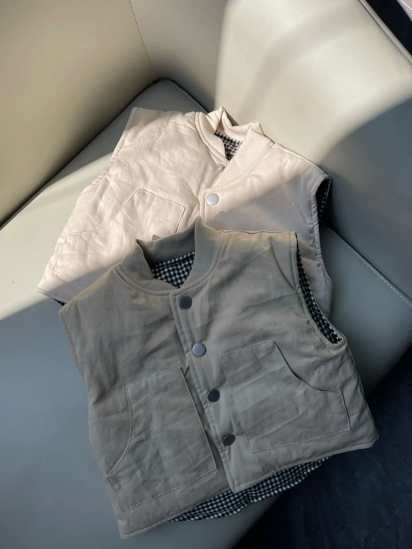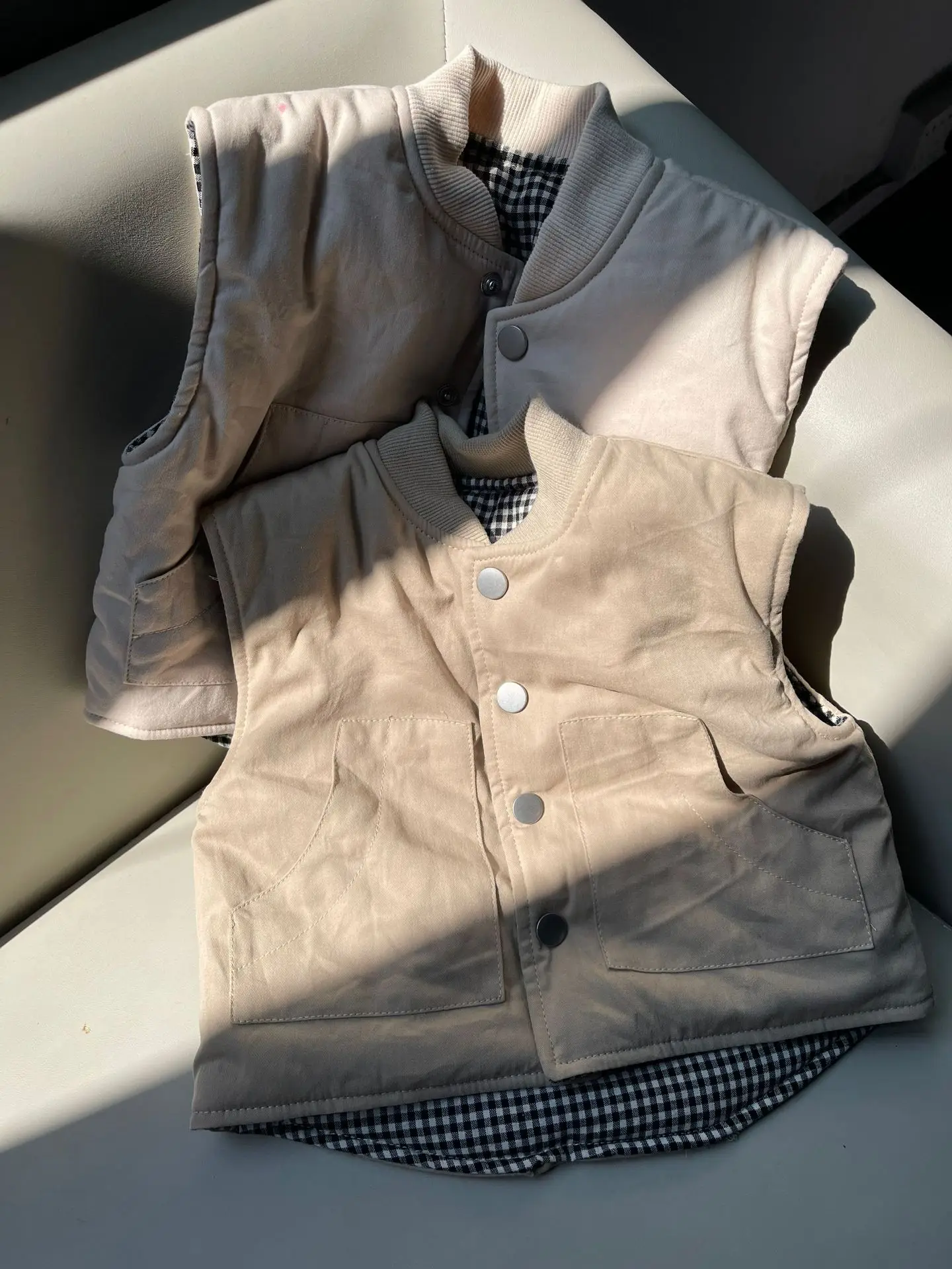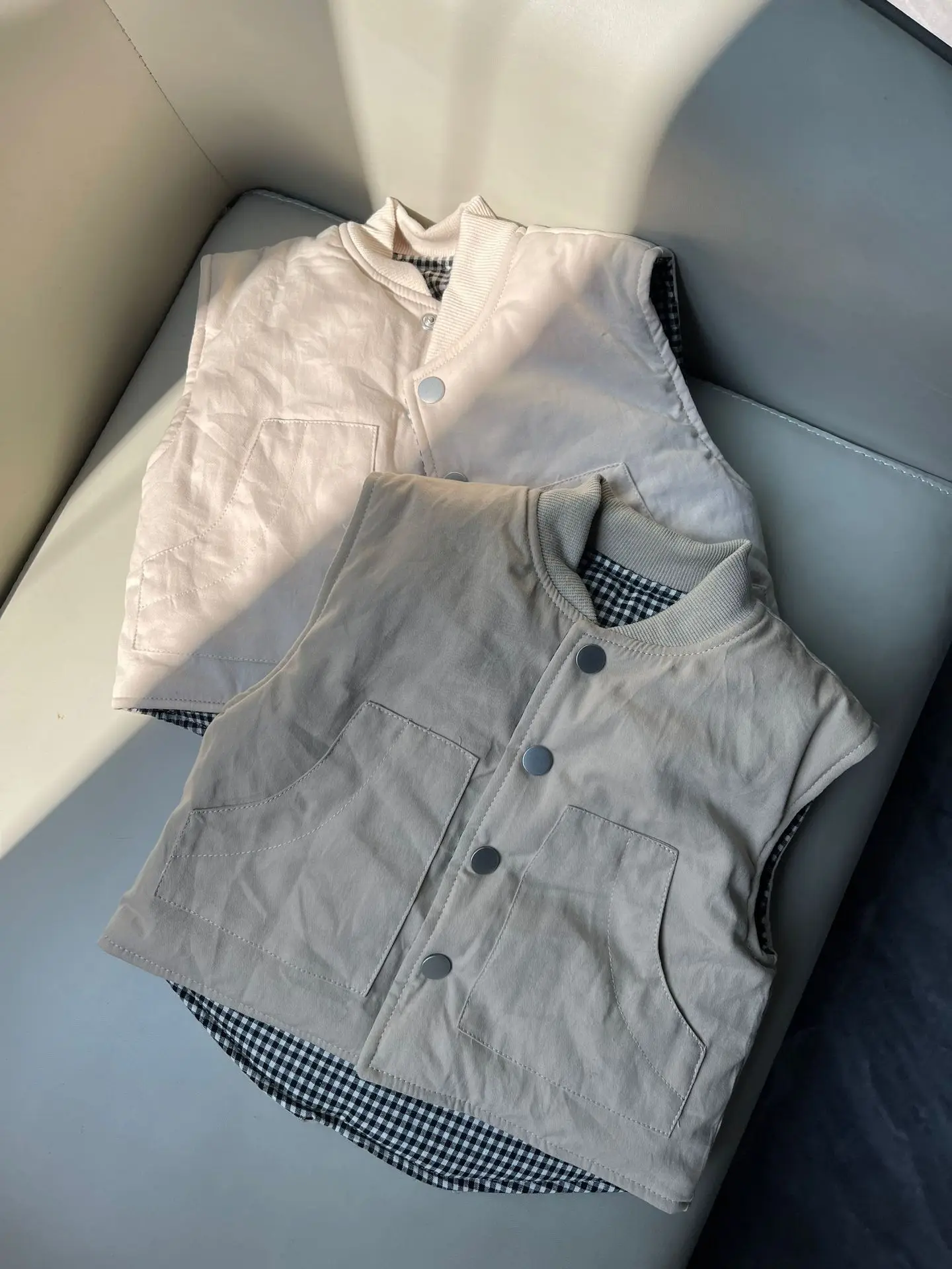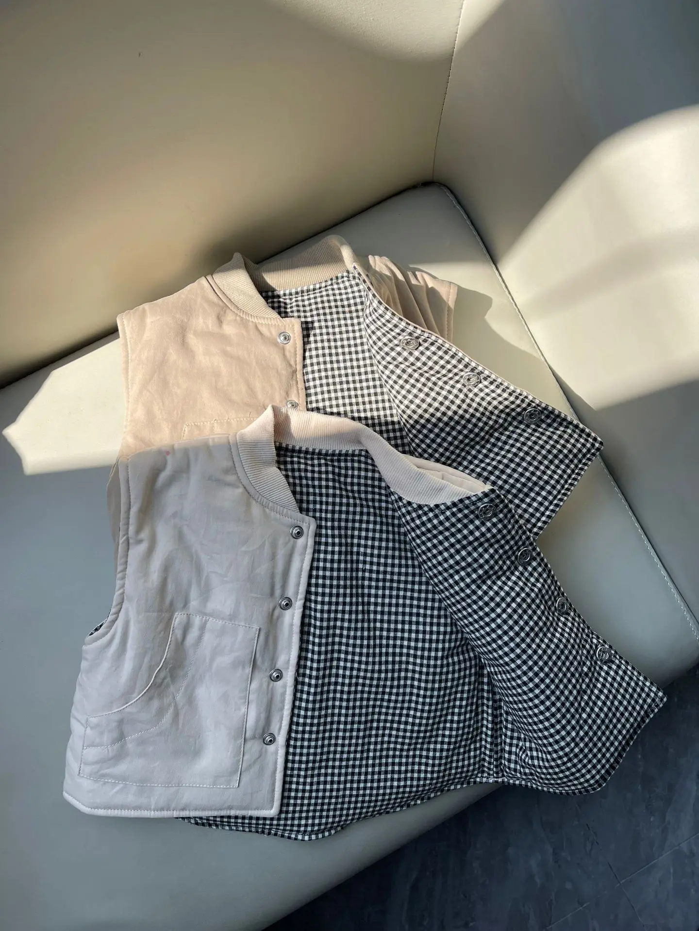 Baby and Kids Vest, Checked Back Simple Outer Vest [mh0007650]