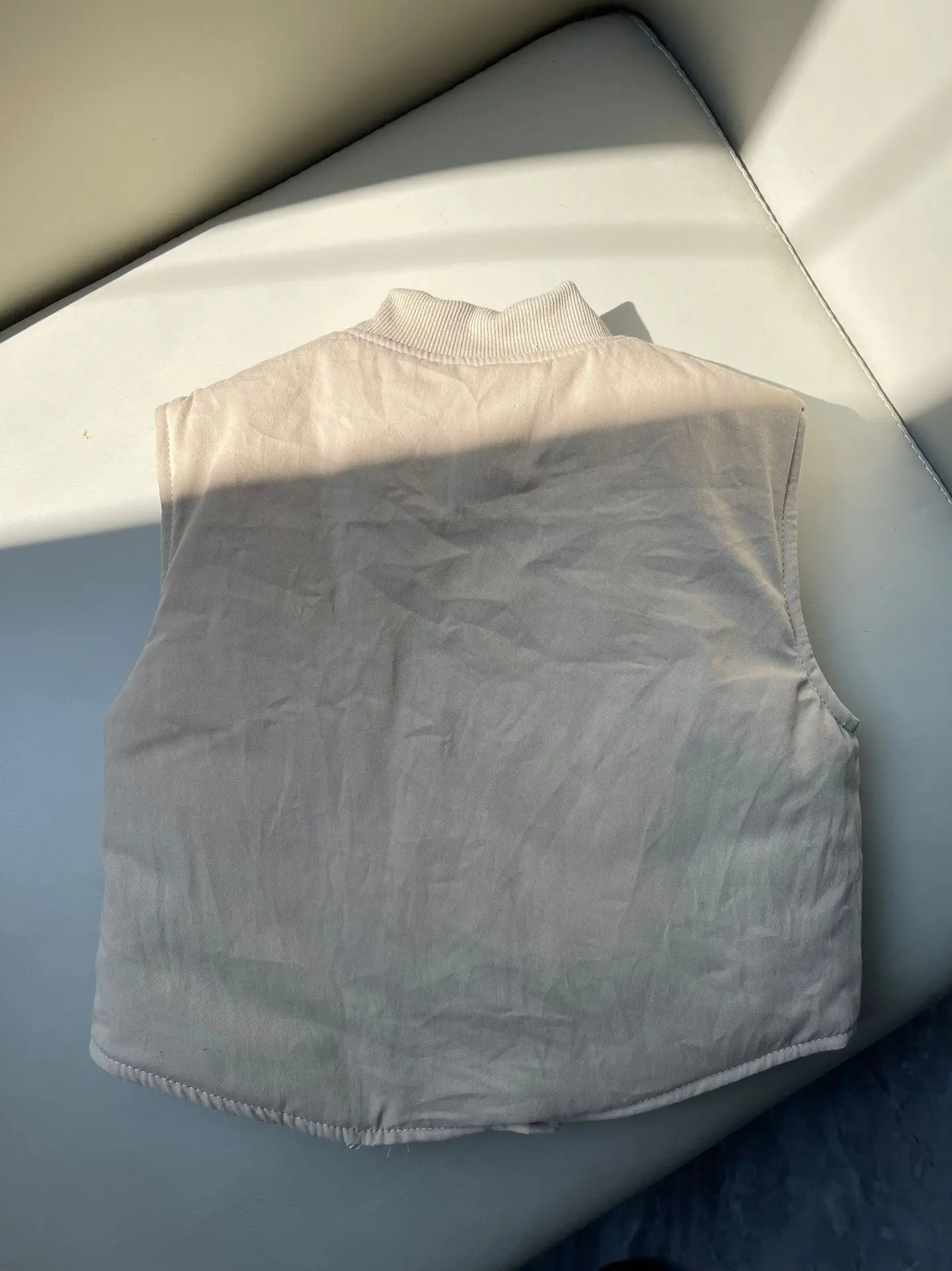 This outer vest with a simple design and a checkered lining is the perfect item for the cold season. The plain exterior is simple and easy to match with a variety of outfits, and can be used for a wide range of styles from casual to going out. It is lightweight and easy to move in, making it ideal for active children. The checkered pattern on the inside is a subtle accent that adds warmth to your outfit. It is a convenient piece for everyday layering.