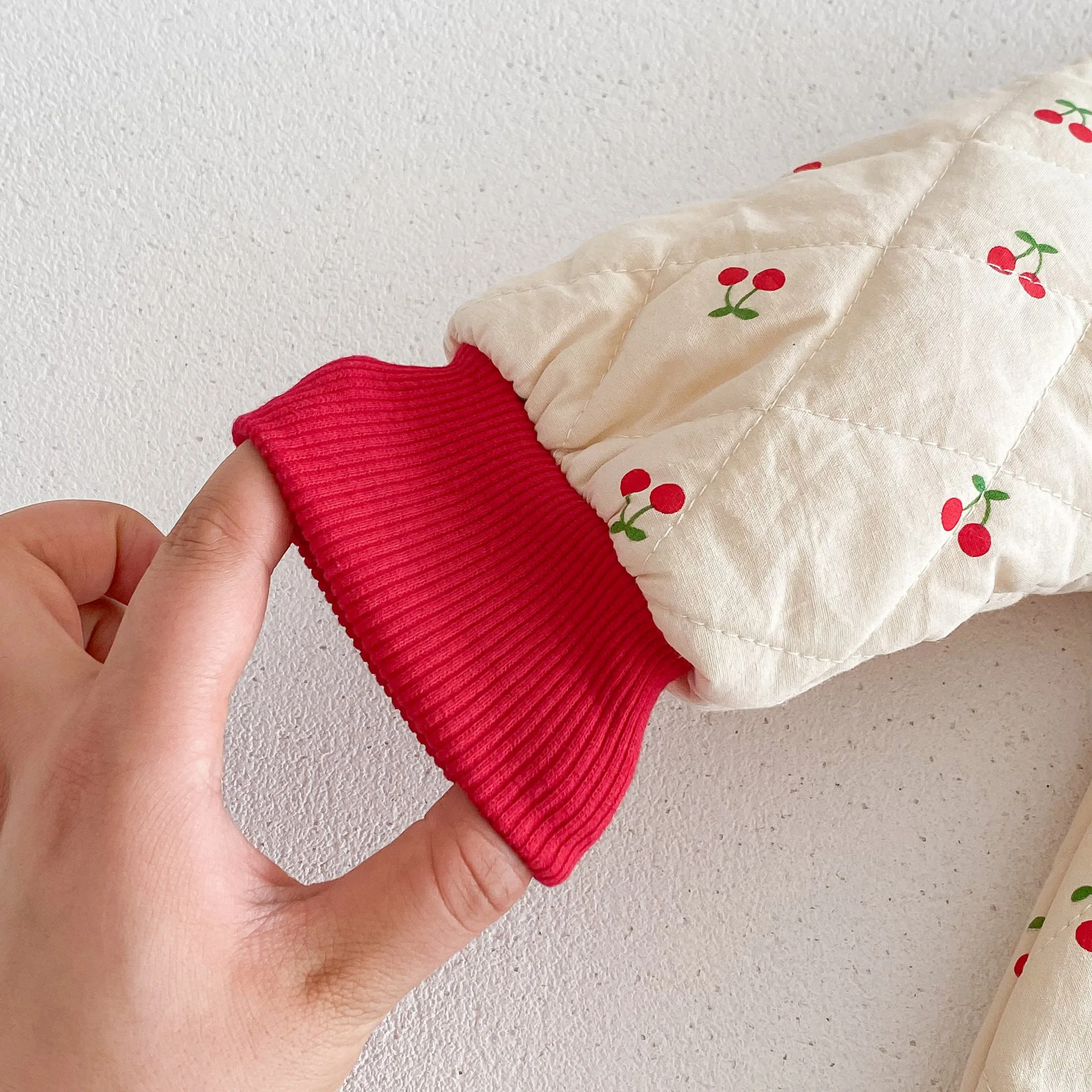 #baby clothes #rompers #cherry print #with ribbon #fleece lining #quilting #Korean children's clothes #winter outerwear