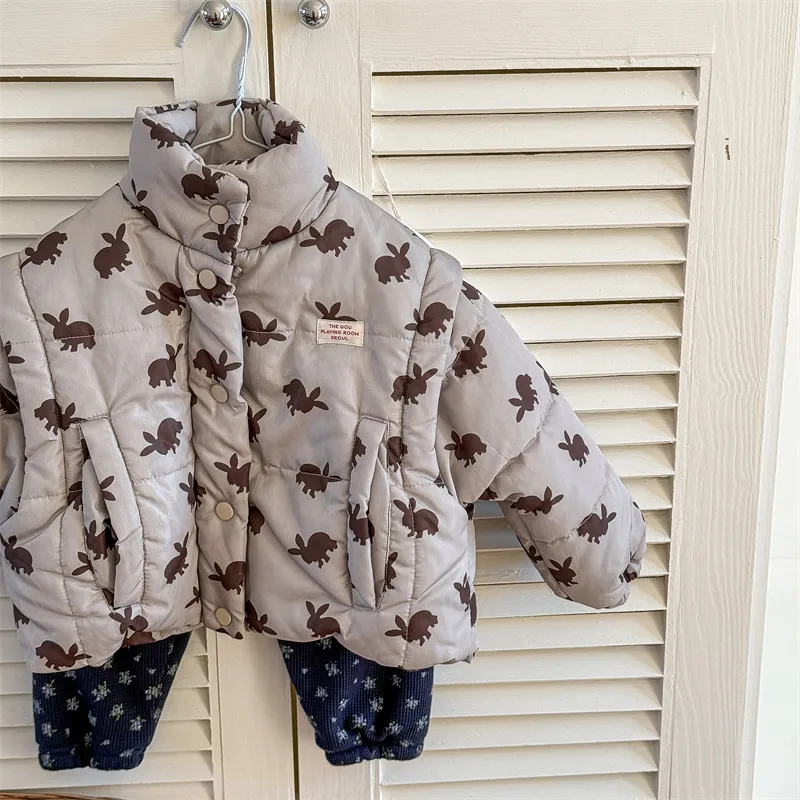 #kids outerwear #baby outerwear #down jacket #padded jacket #rabbit print #warm coat #winter children's clothing