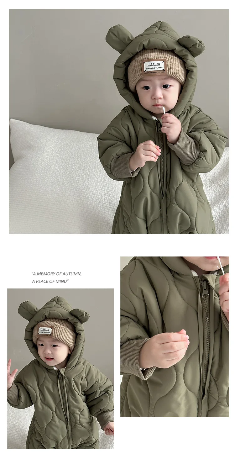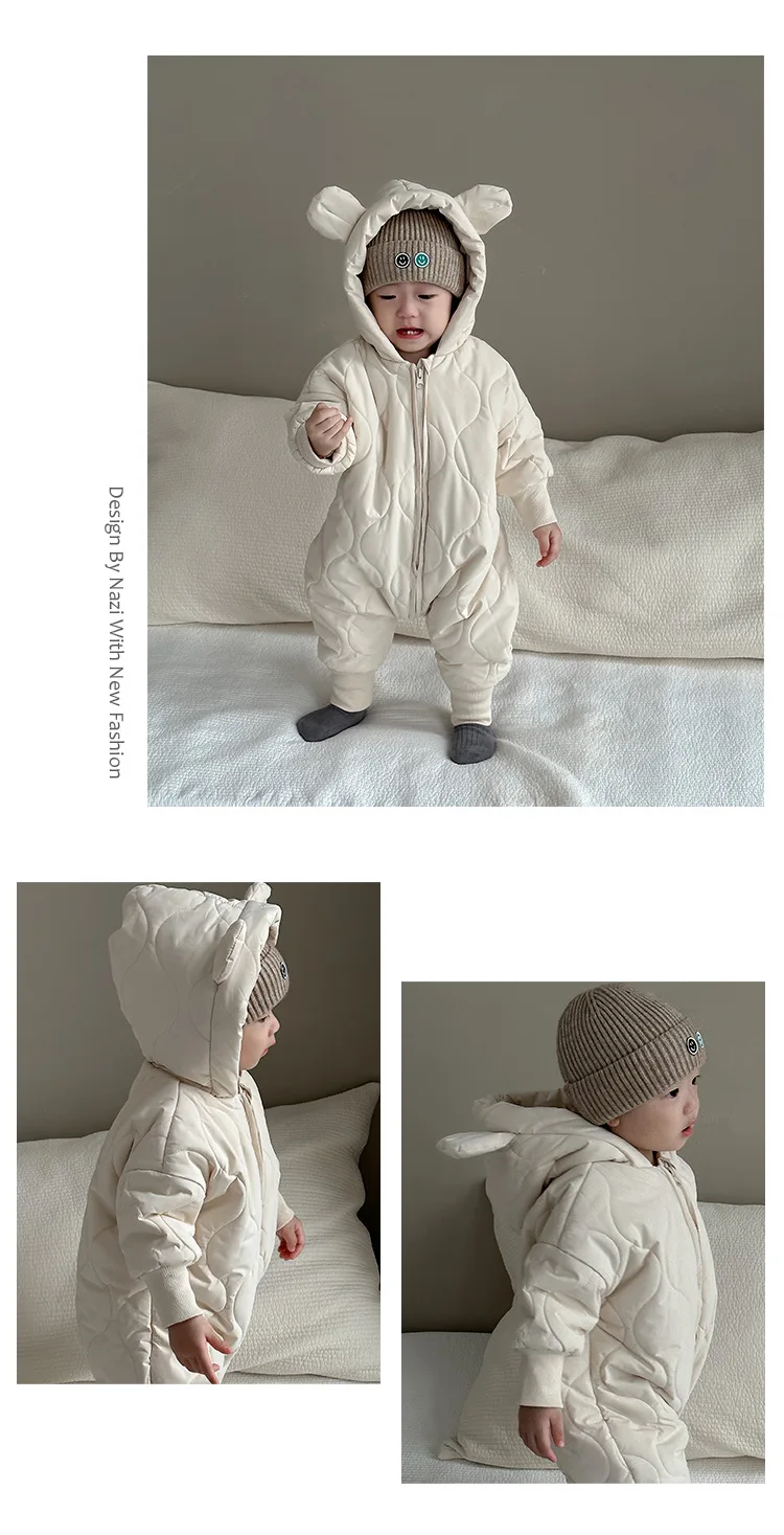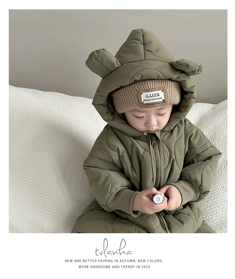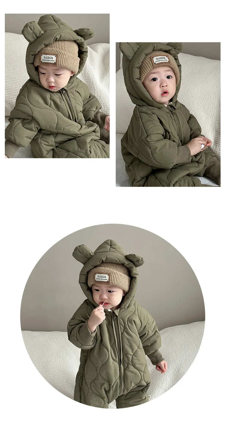 Baby Outerwear Jumpsuit, Quilted Bear Ear Hoodie, Zip-Up Winter Romper [mh0007796]