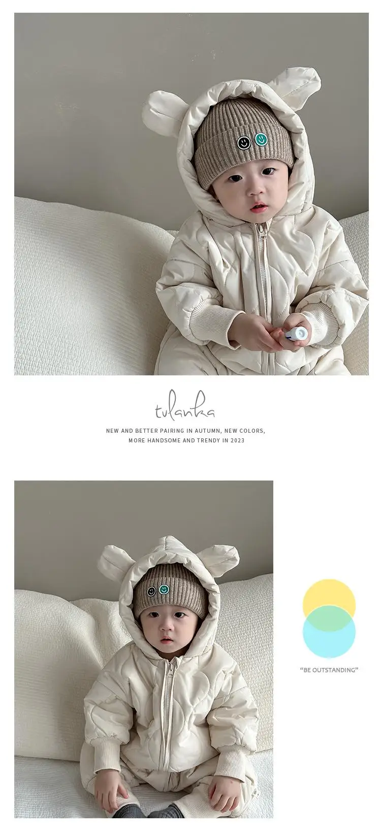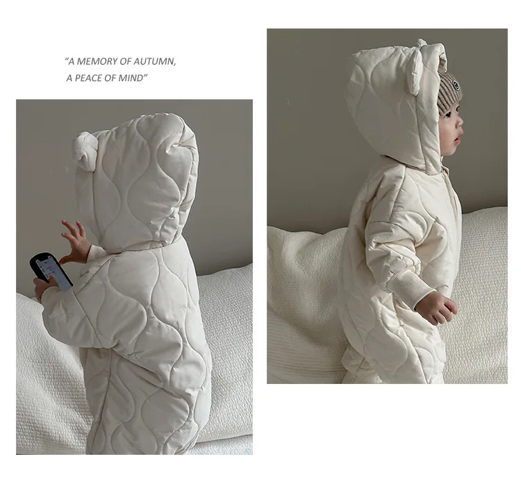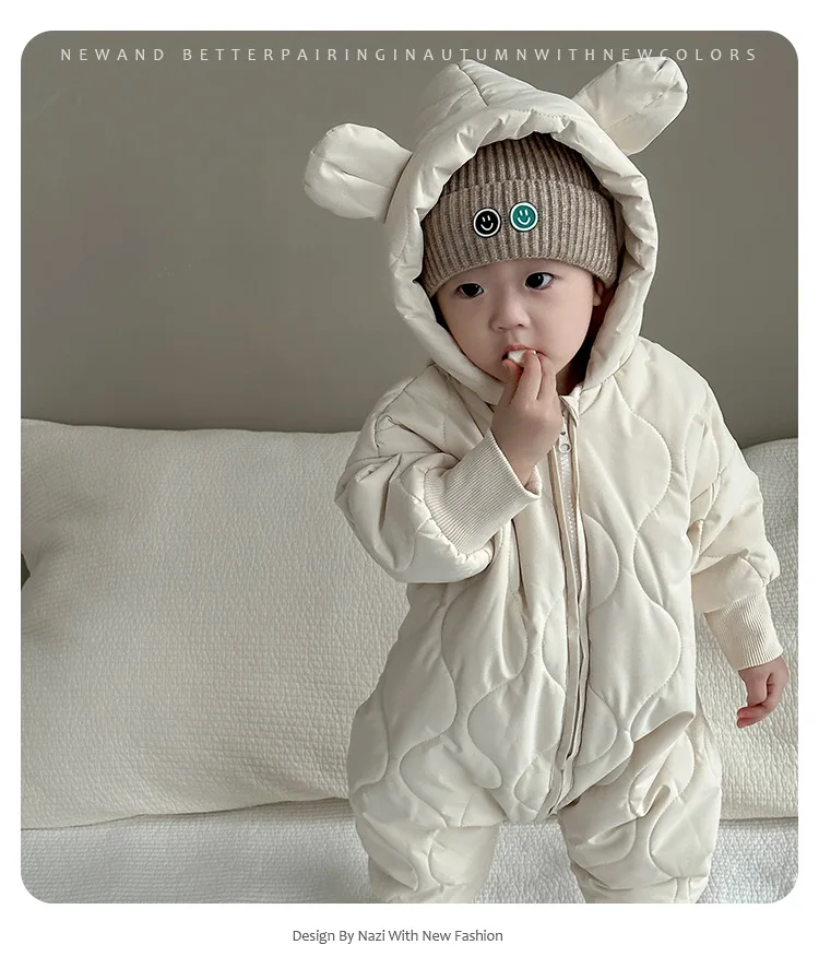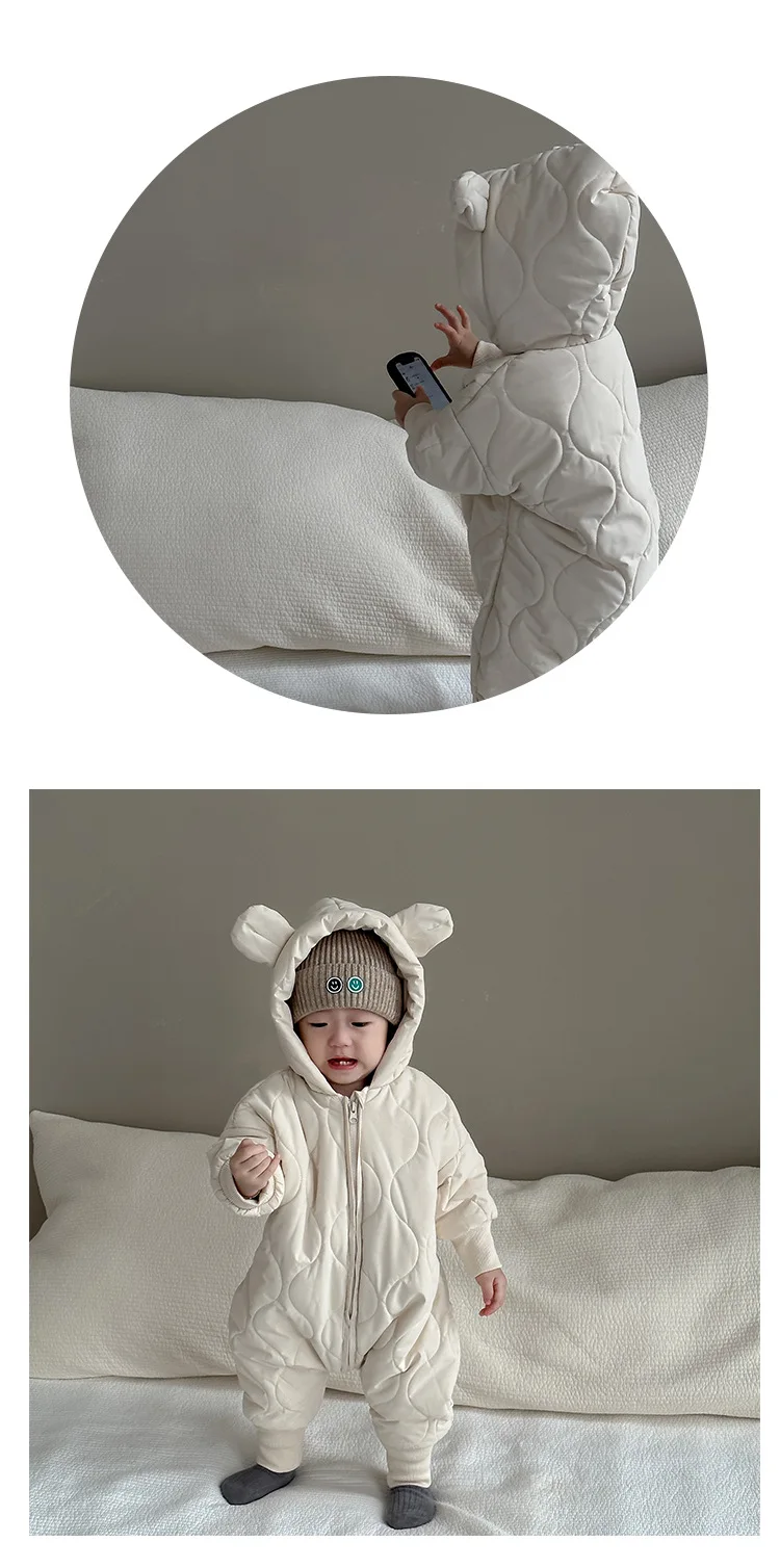 Baby Outerwear Jumpsuit, Quilted Bear Ear Hoodie, Zip-Up Winter Romper [mh0007796]