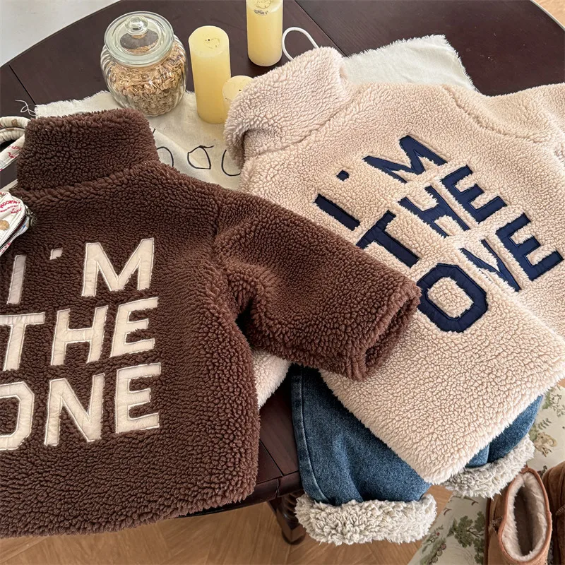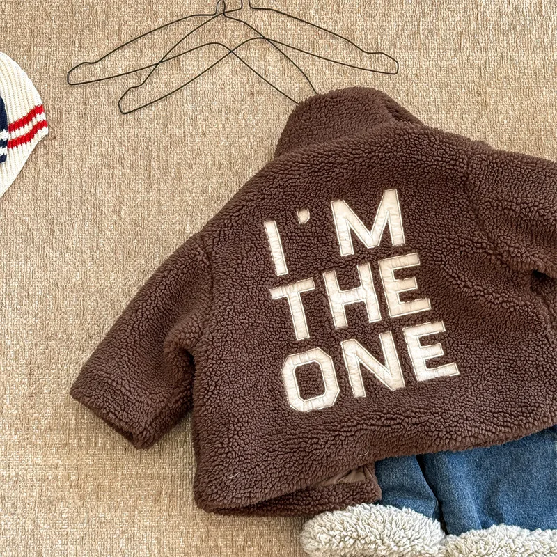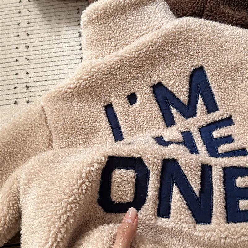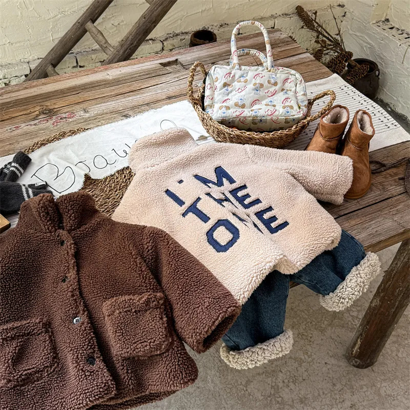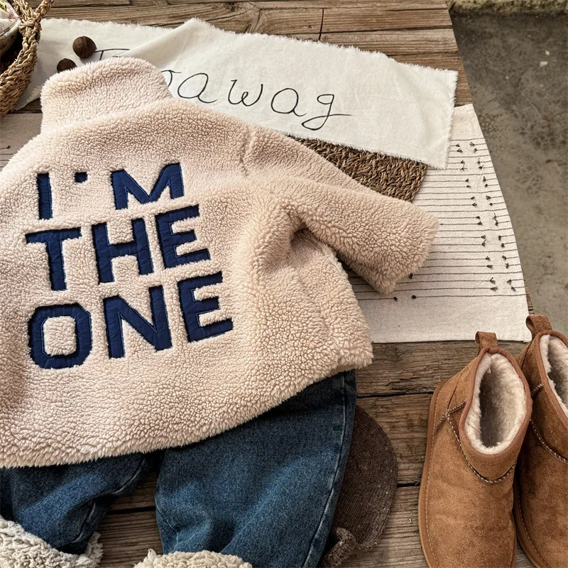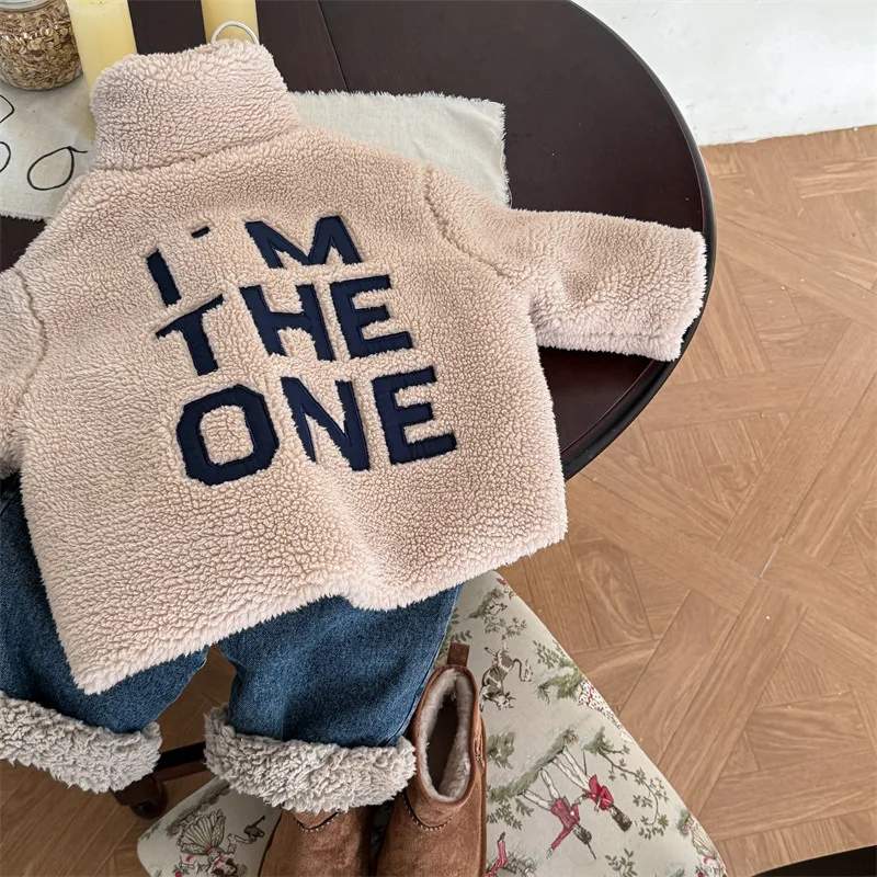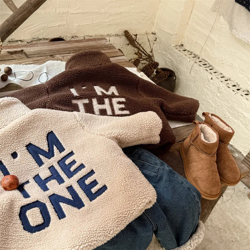 #kids outerwear #boa fleece #letter logo #embroidered jacket #baby clothes #winter outfit #warm jacket