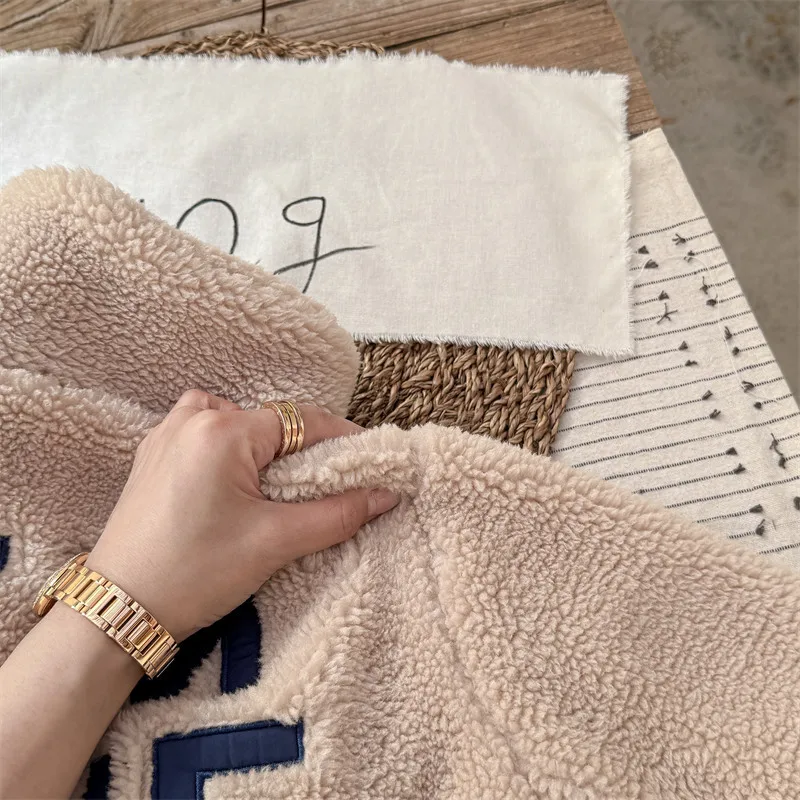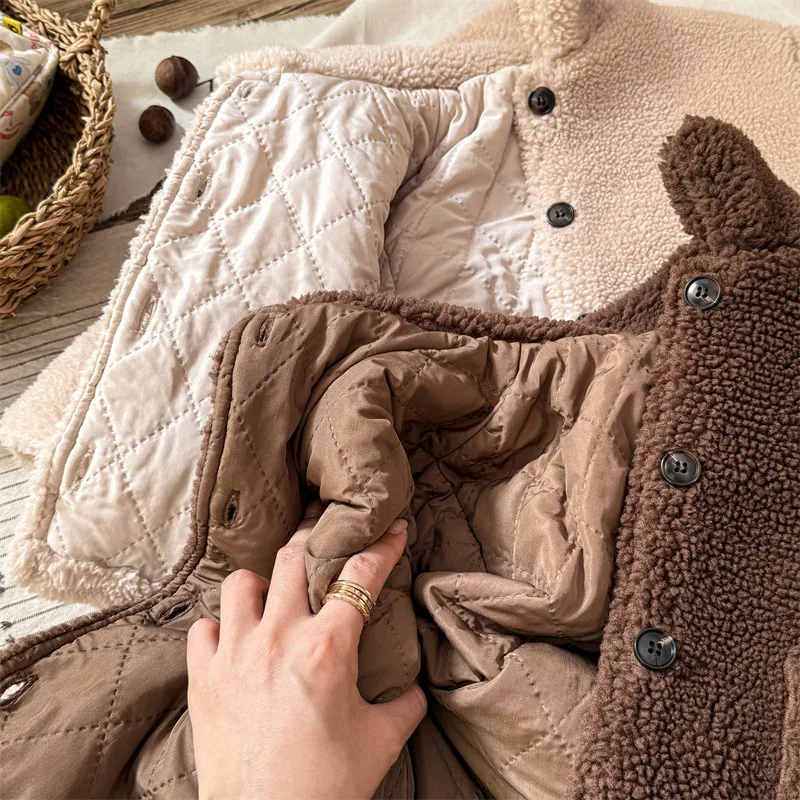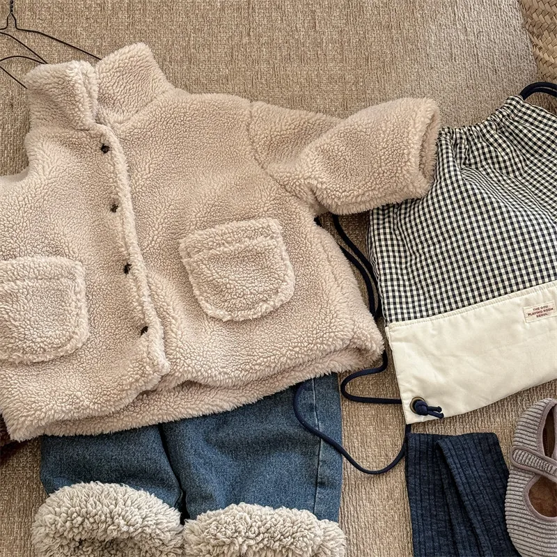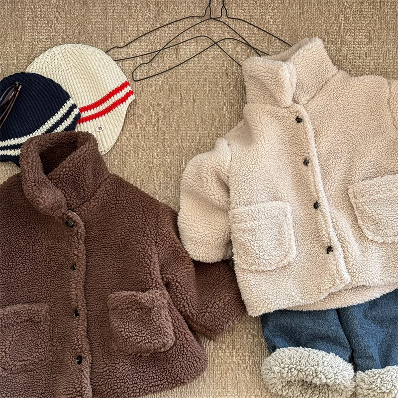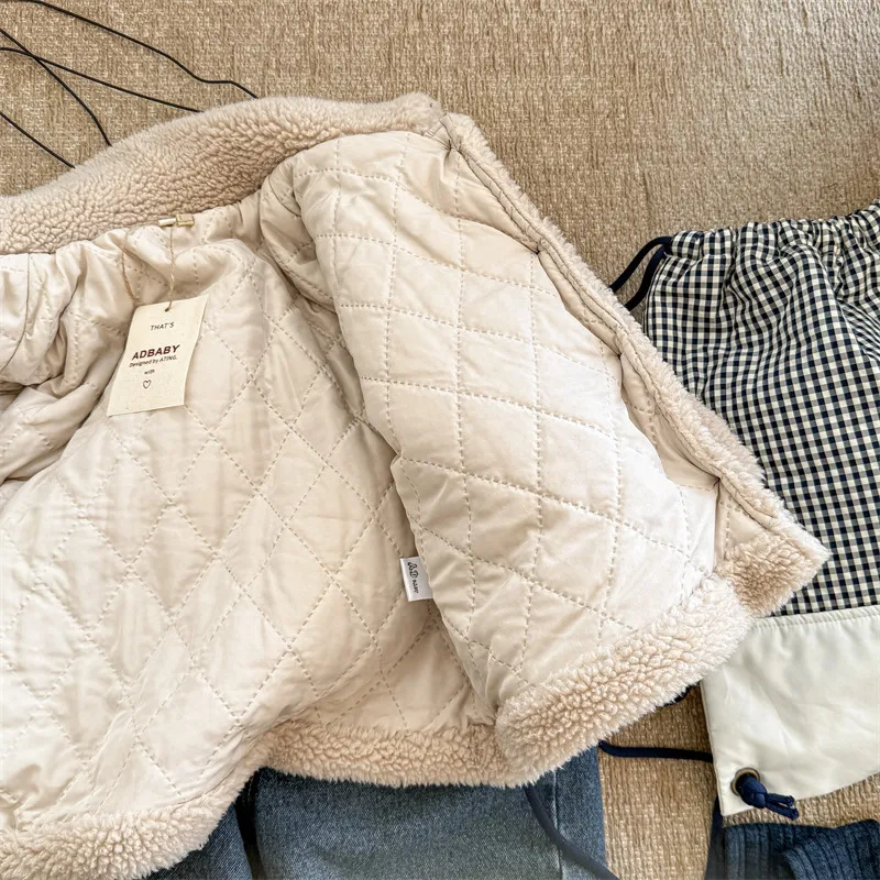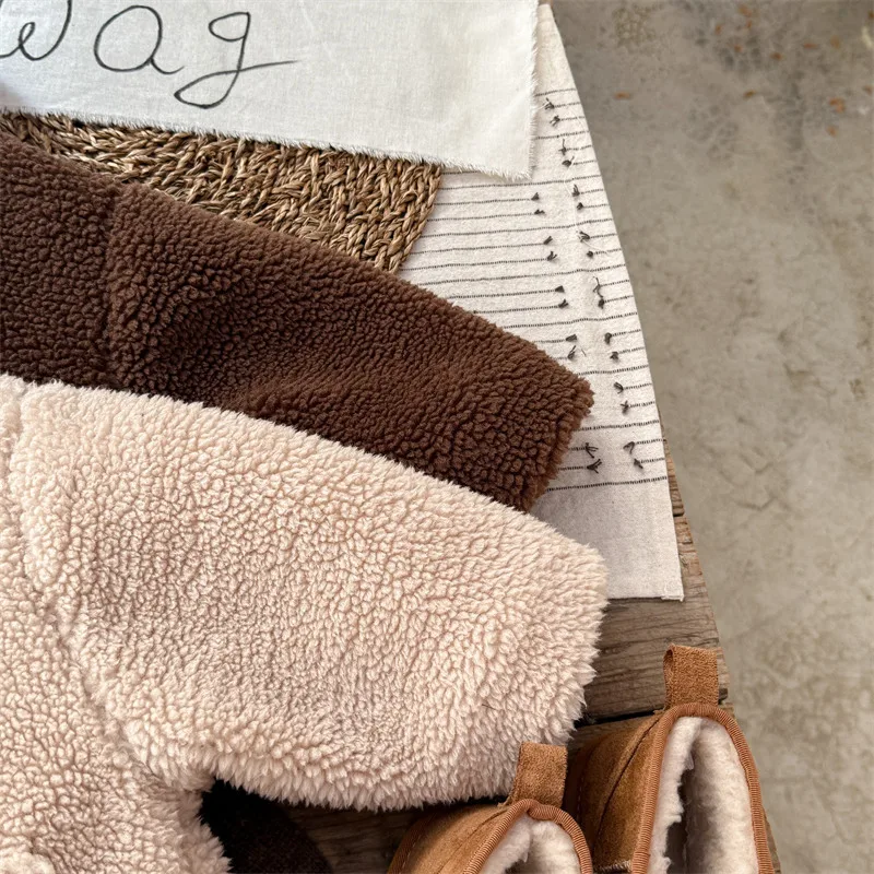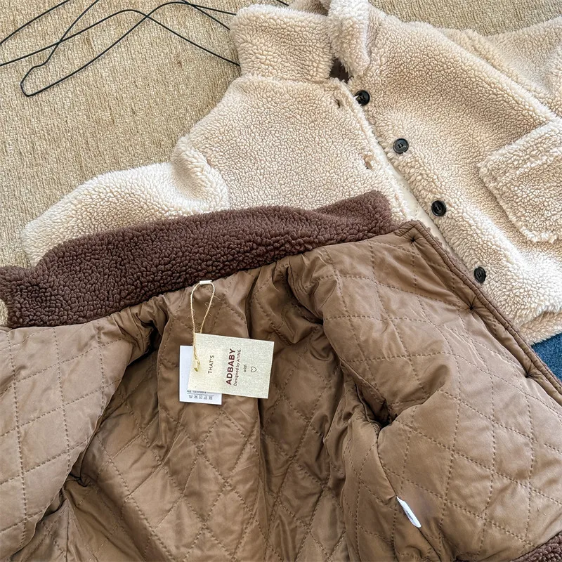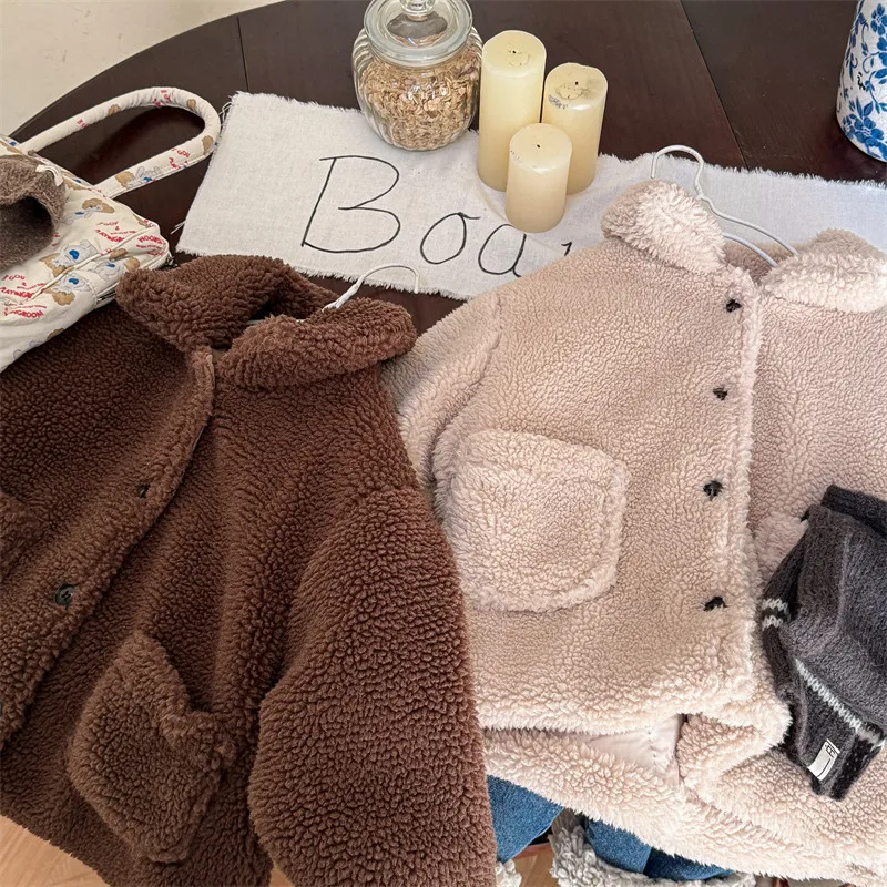 #kids outerwear #boa fleece #letter logo #embroidered jacket #baby clothes #winter outfit #warm jacket