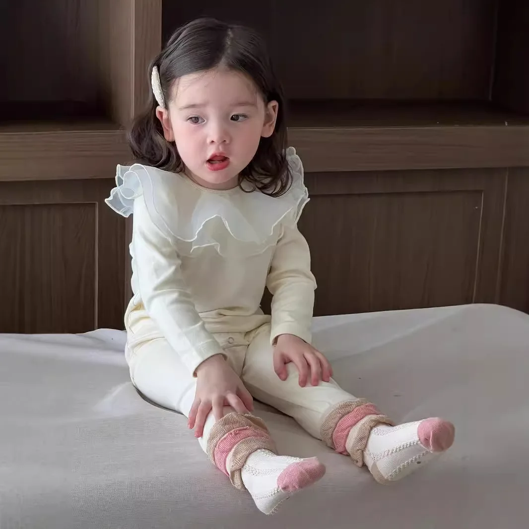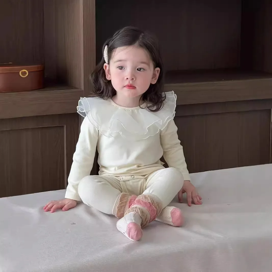 #baby fashion #ruffle frill collar #lace collar romper #leggings pants #2-piece set #baby clothes #girly style