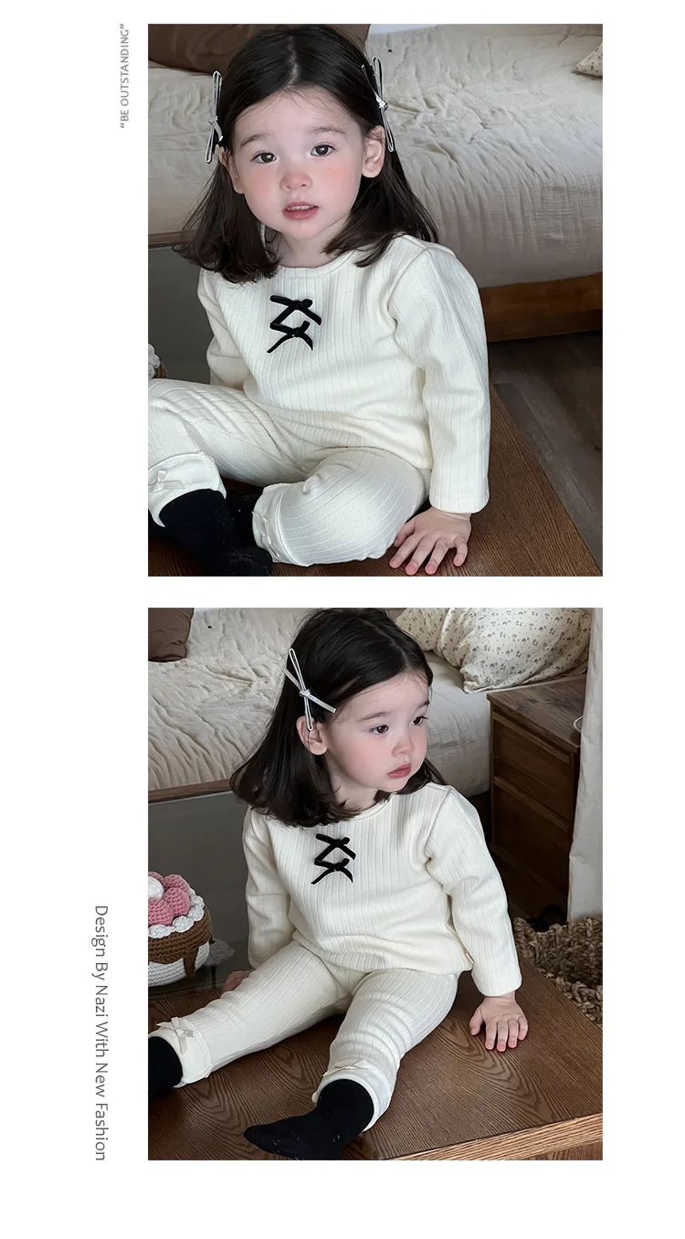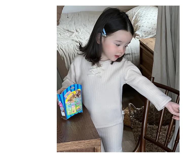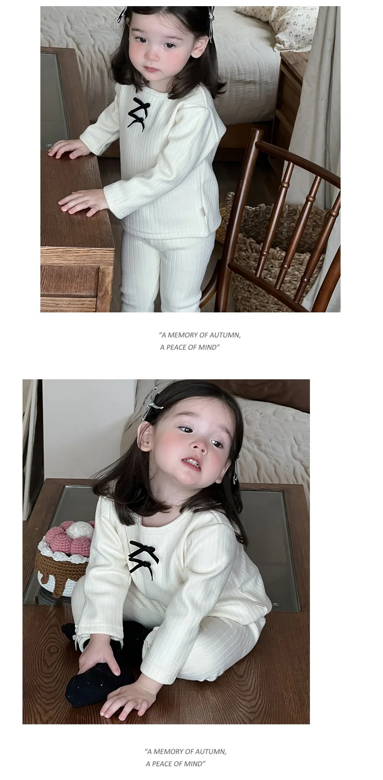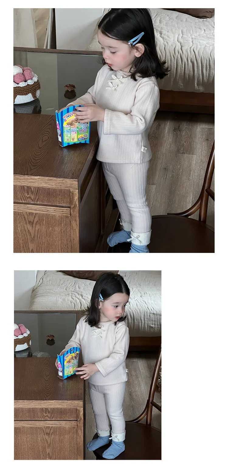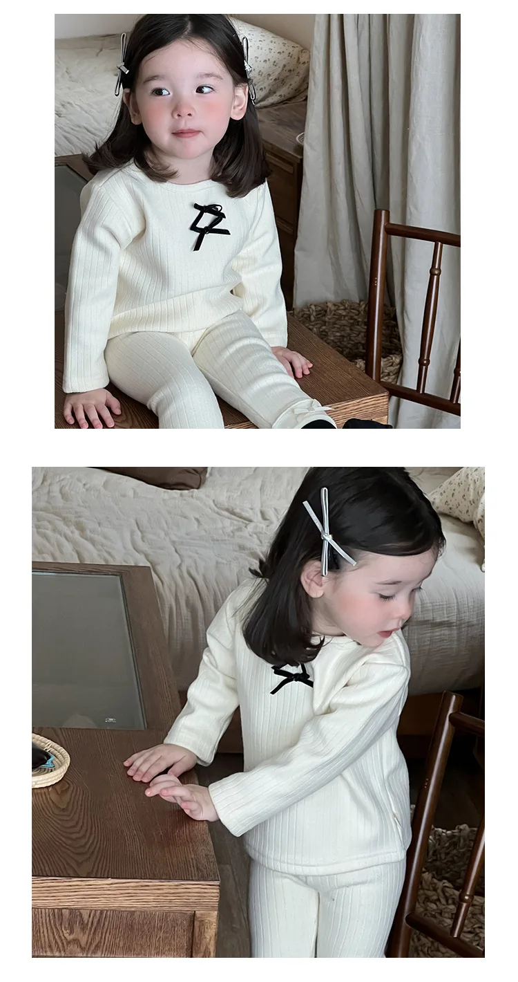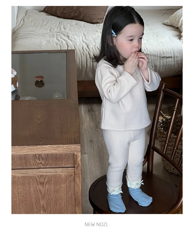 Baby/Kids Tops: Ribbon-lined fleece-lined long-sleeved ribbed T-shirt [mh0008429]