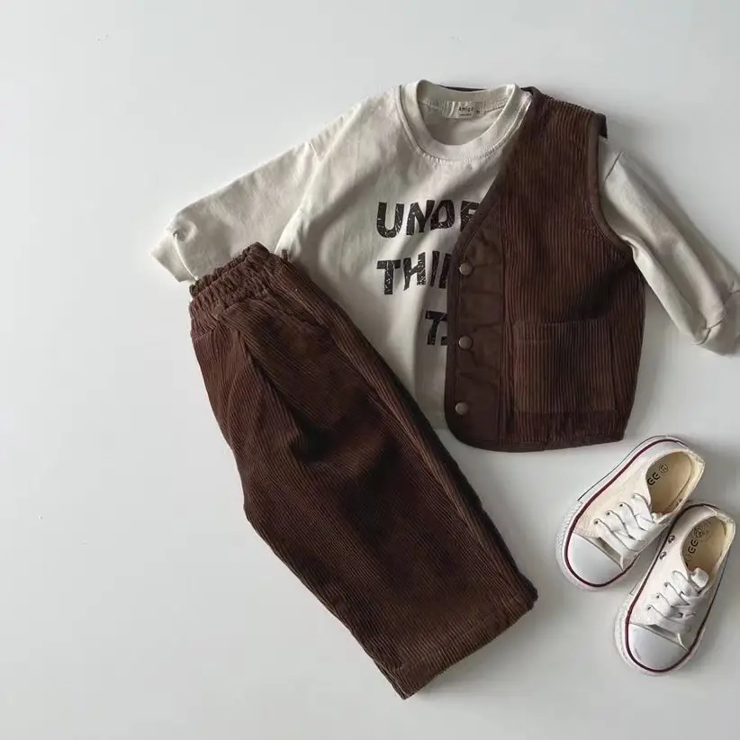 This is a letter logo printed long sleeve T-shirt for babies. The stylish letter design gives it a casual yet fashionable look. Made of soft cotton material, it is gentle on your baby's skin and provides a comfortable fit. The long sleeve design can be used in a wide range of situations regardless of the season, making it perfect for playtime or everyday outings. This simple piece is an accent piece for your outfit and can be enjoyed with other bottoms. This T-shirt is both stylish and functional, making it an essential item for your baby's wardrobe.