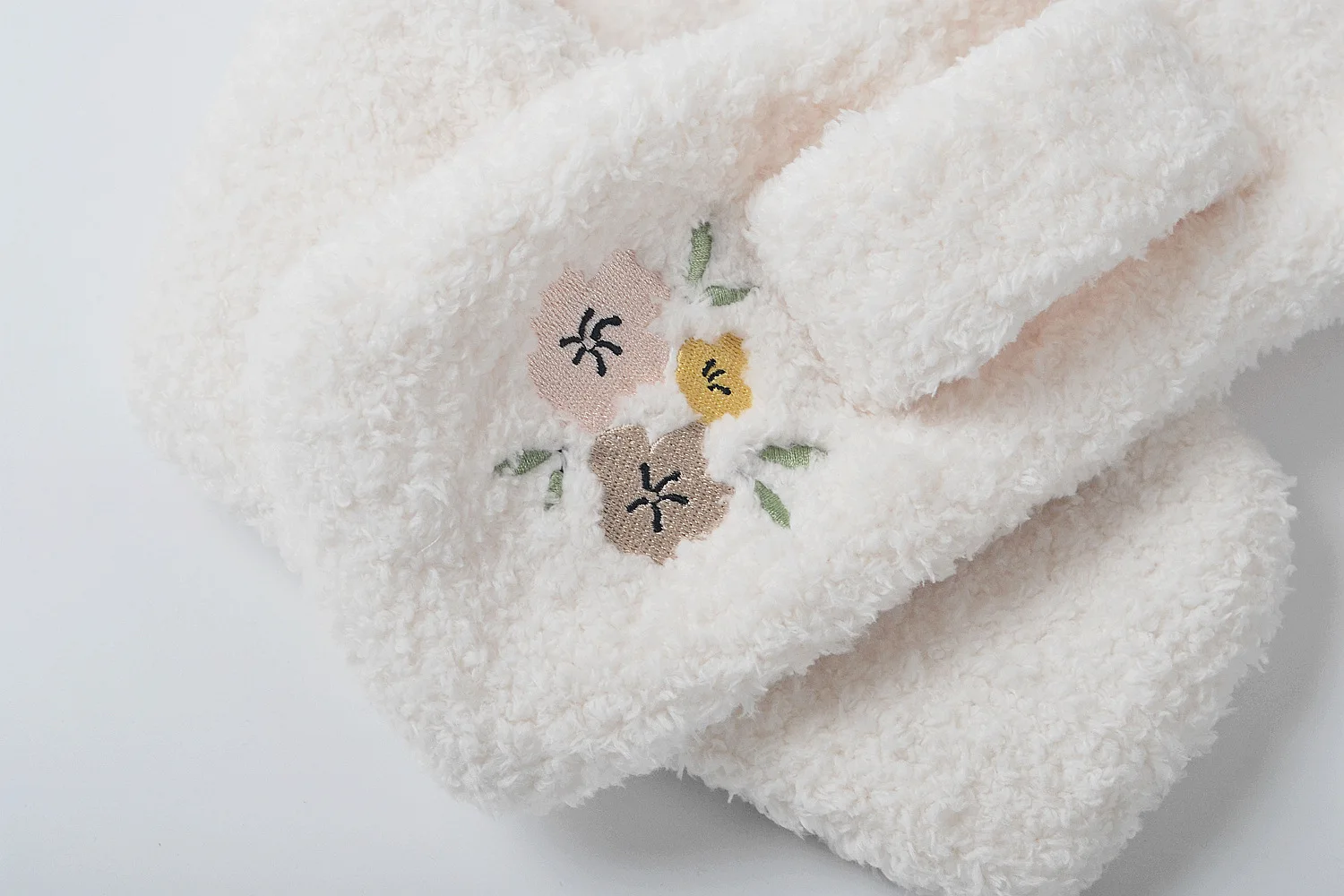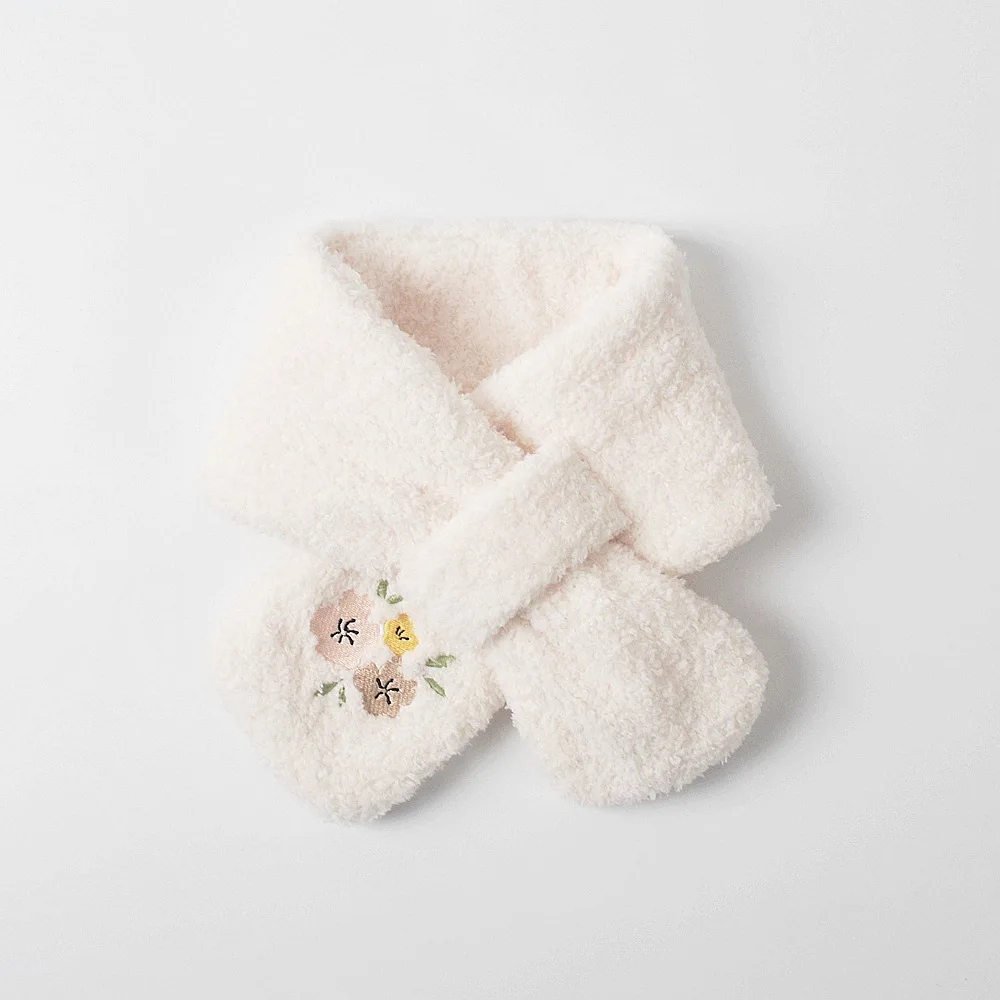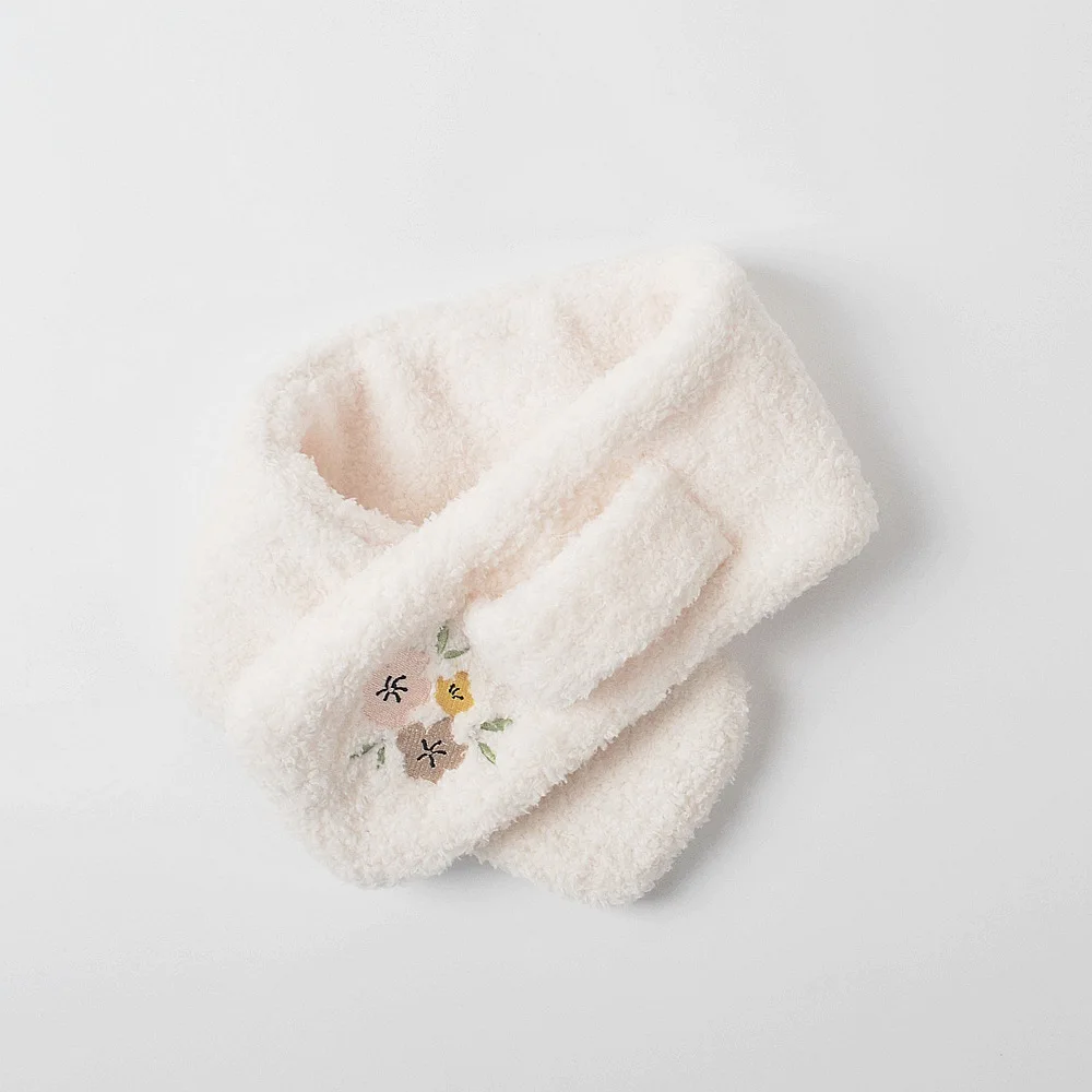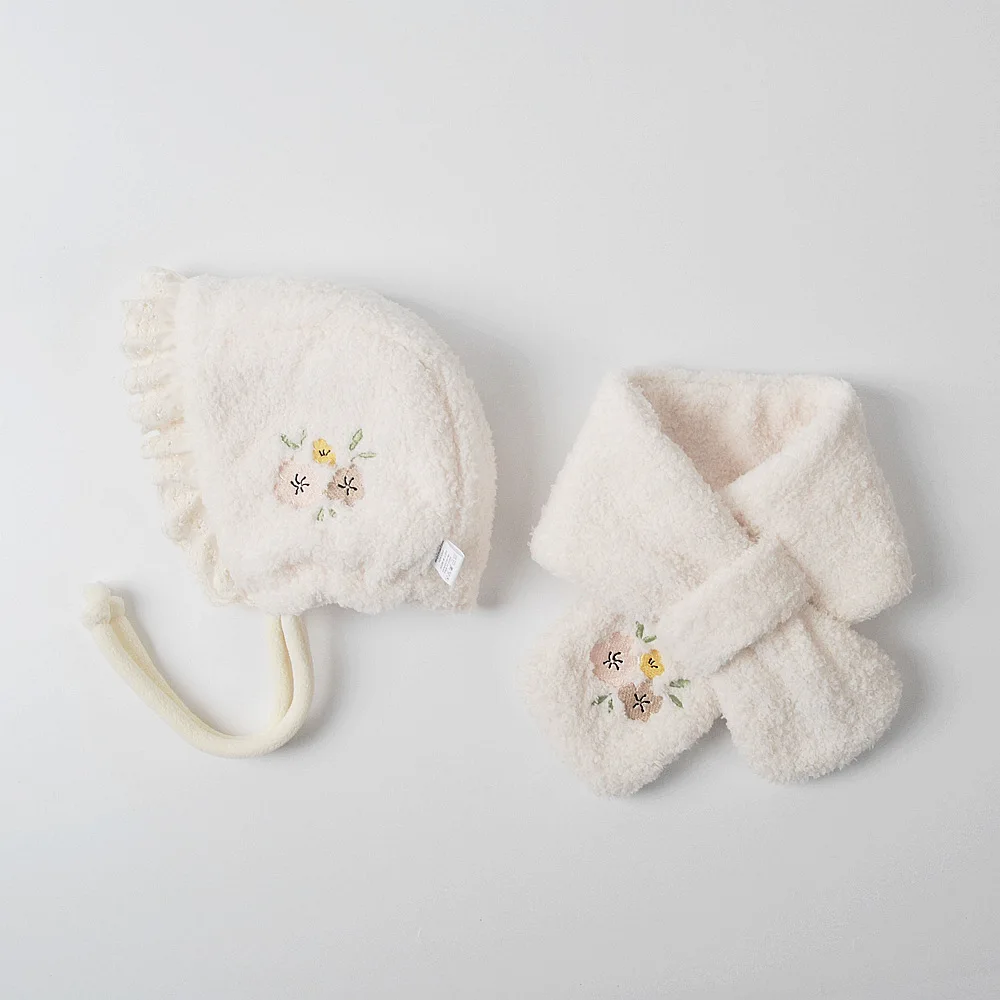 Baby hat/scarf Flower embroidered fleece bonnet/neck warmer scarf [mh0008632]