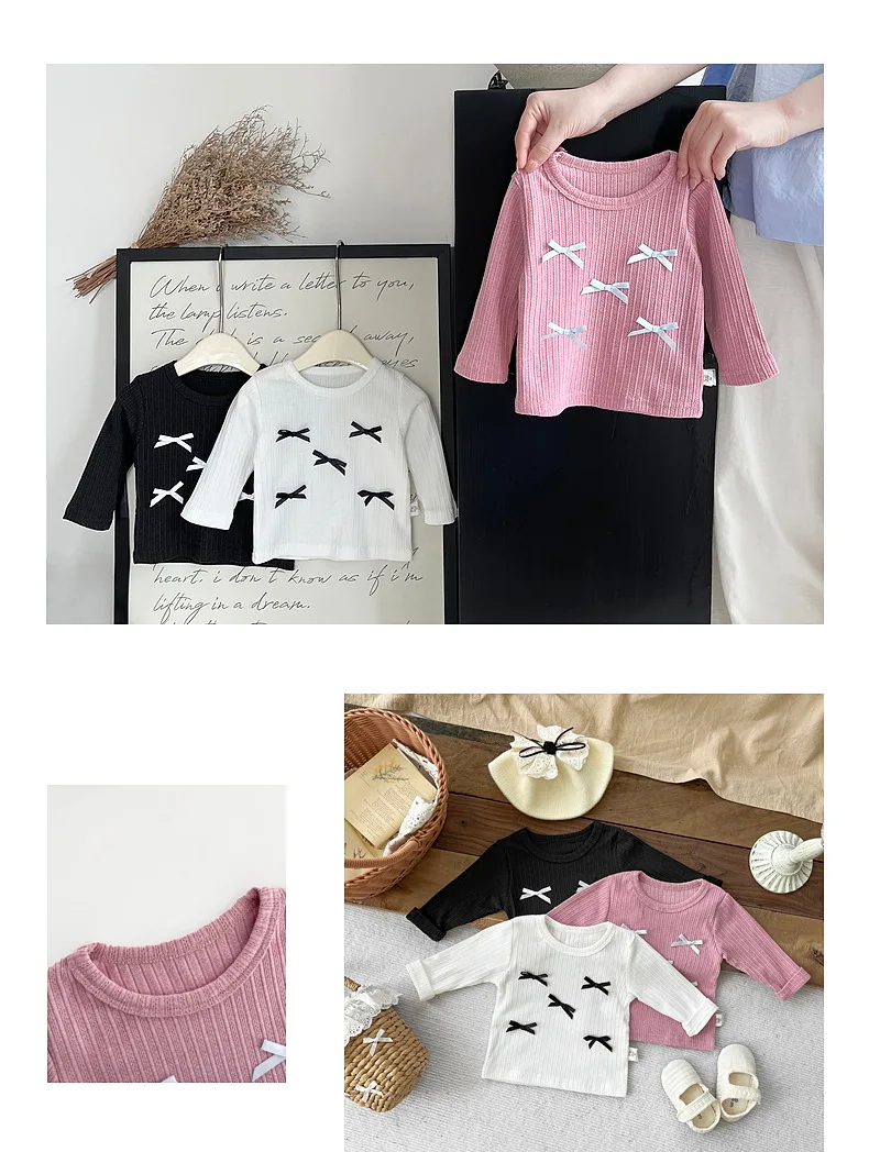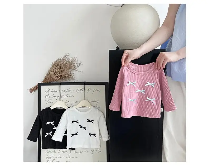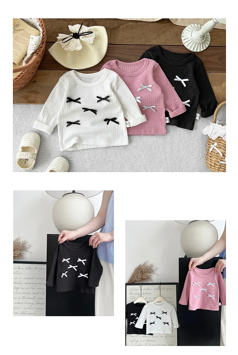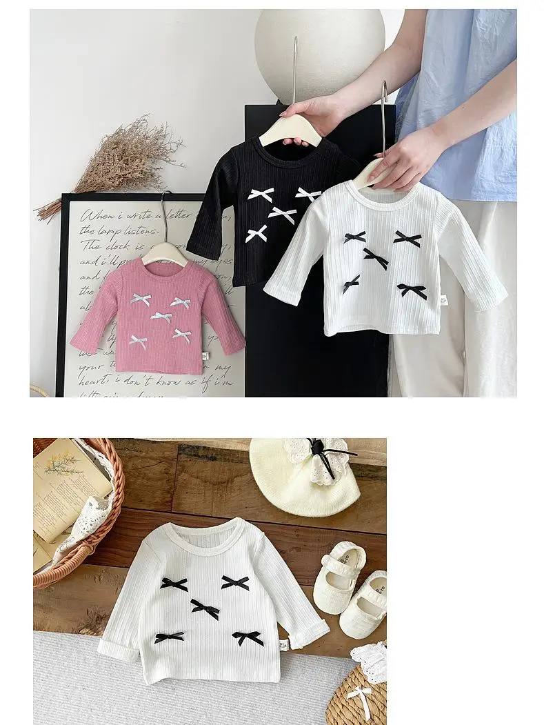 #Baby tops #Ribbon design #Long sleeve T-shirt #Cotton material #Stylish baby clothes #Children's clothes