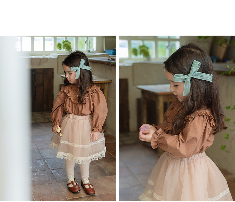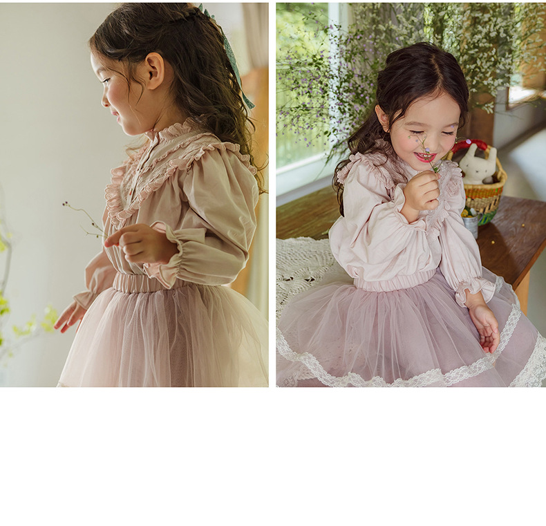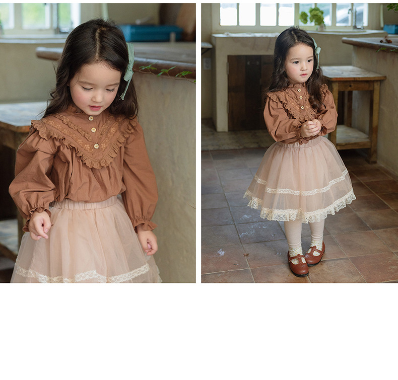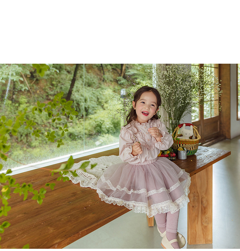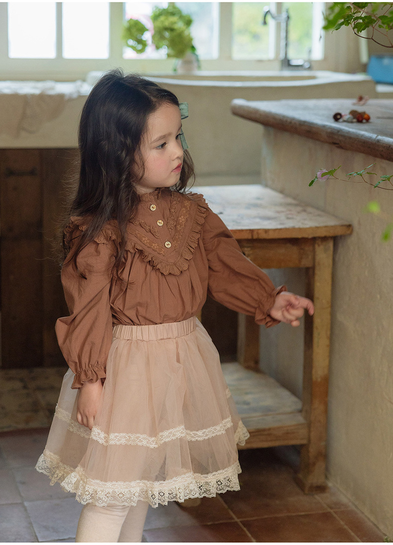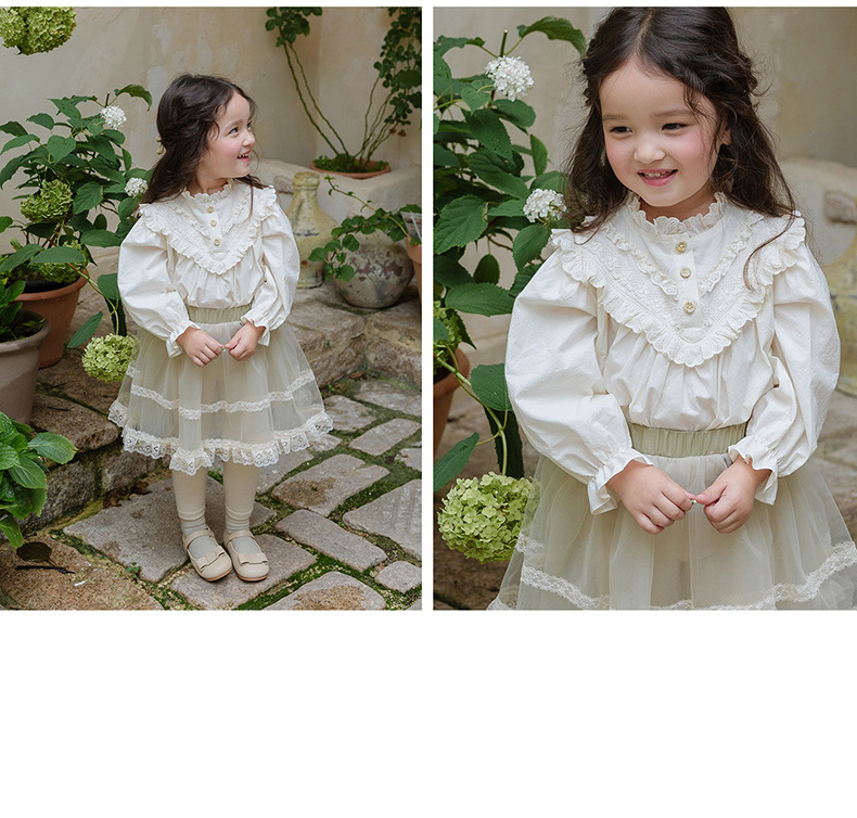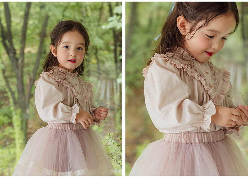 Kids Tops Lace Ruffle Long Sleeve Girly Blouse [mh0009046]