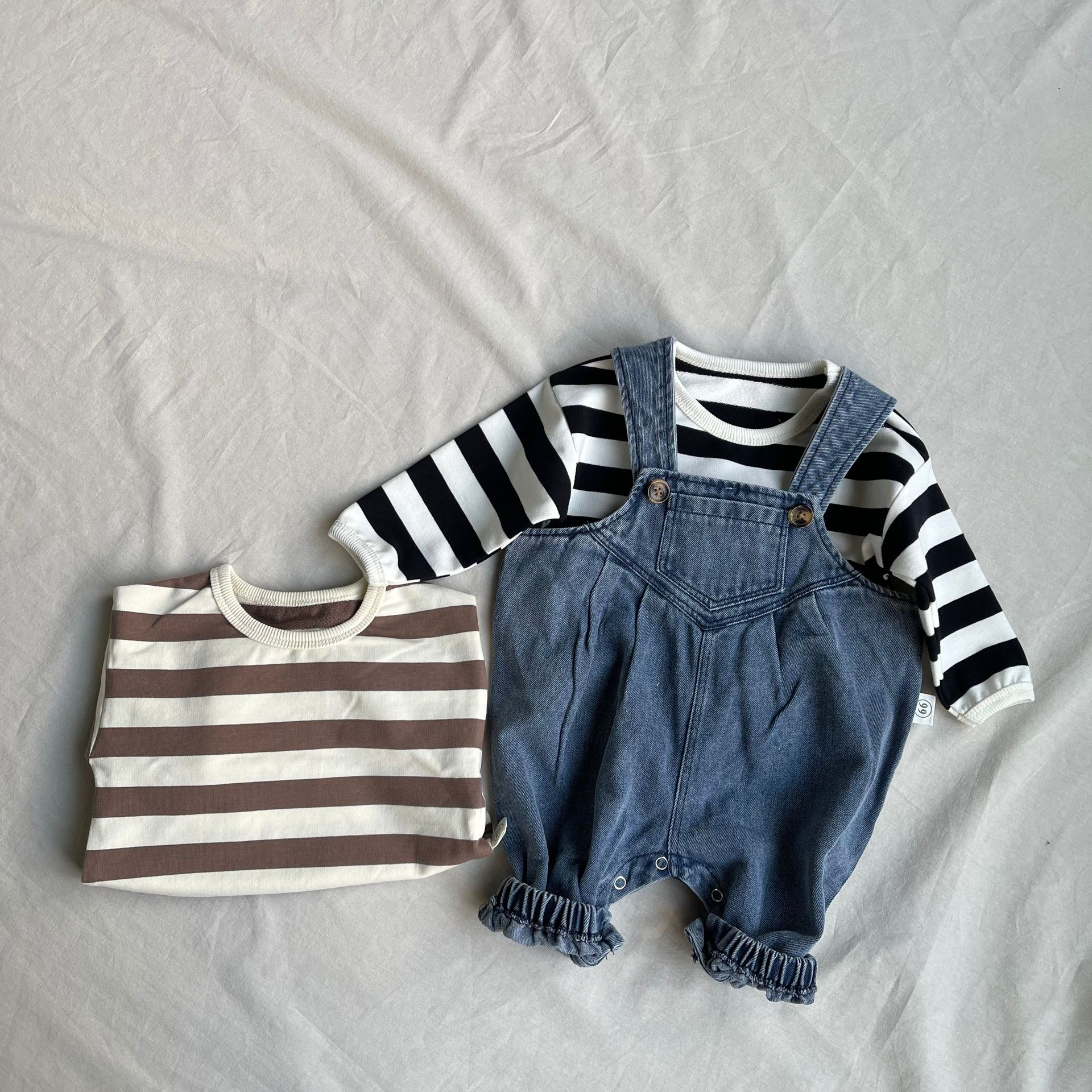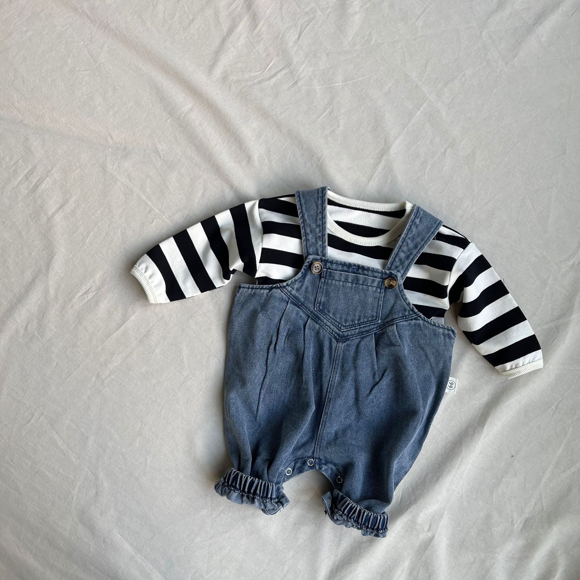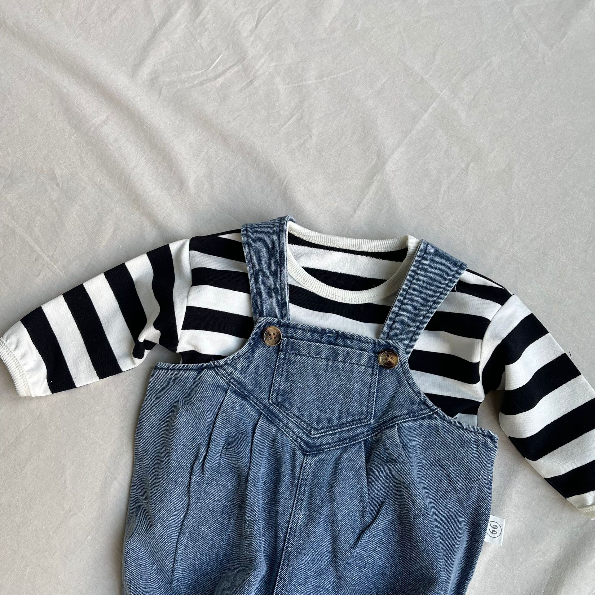 #Baby set #Striped T-shirt #Denim suspenders #Casual outfit #Easy to move in #Stylish baby #Everyday wear
