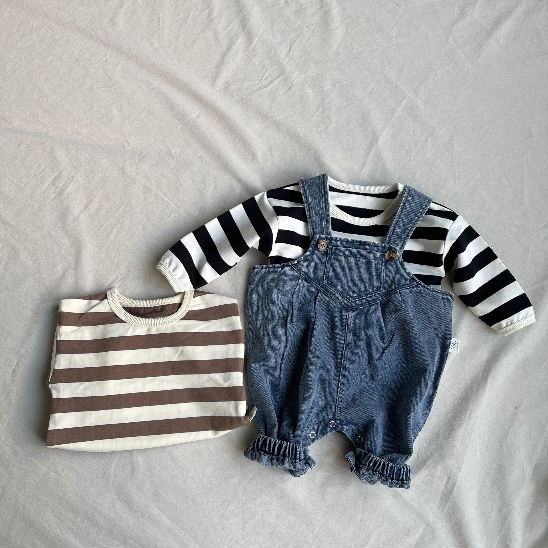 Baby tops/overalls Striped long-sleeved T-shirt/denim suspender pants [mh0009105]