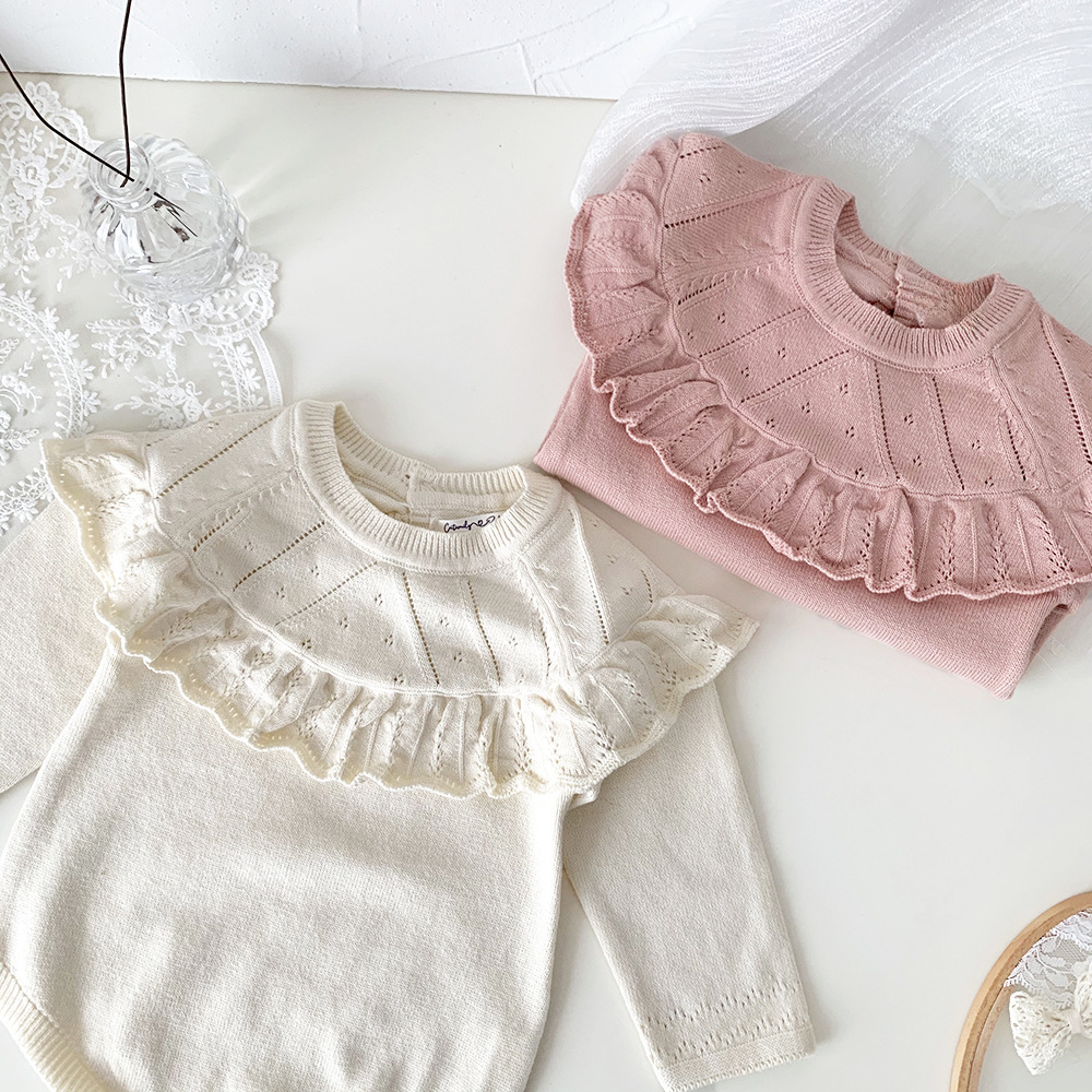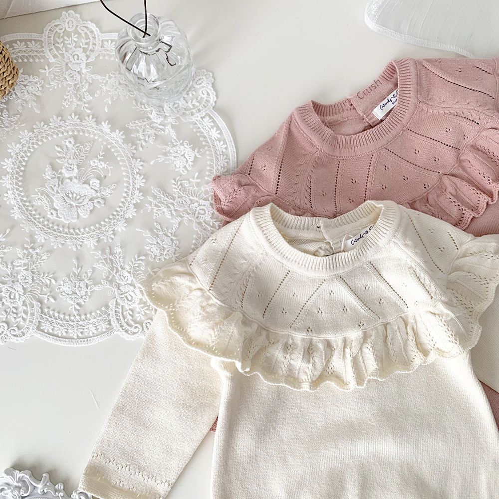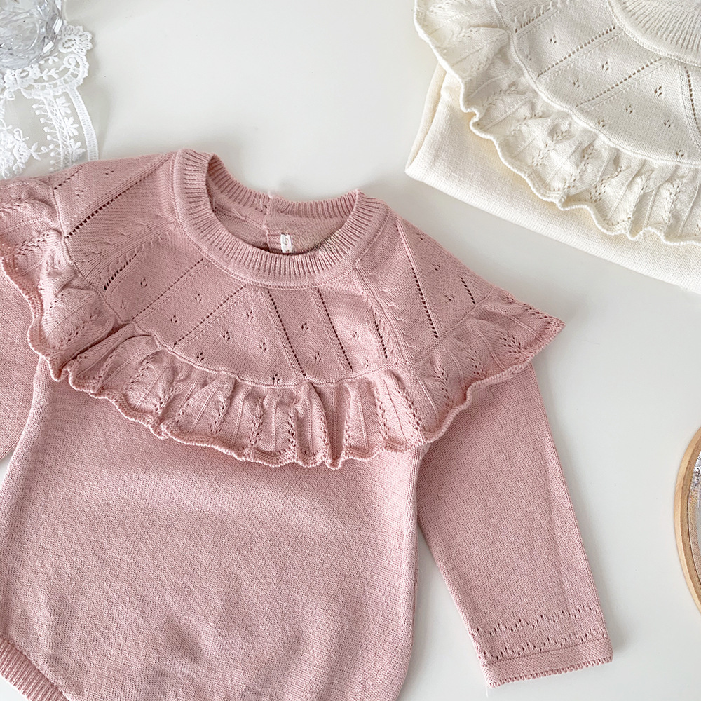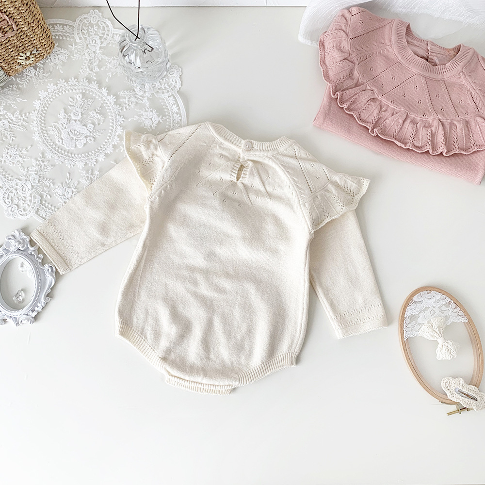 #Baby rompers #Ruffle shawl collar #Knitted bodysuit #Long sleeve rompers #Stylish baby clothes #Comfortable outfit