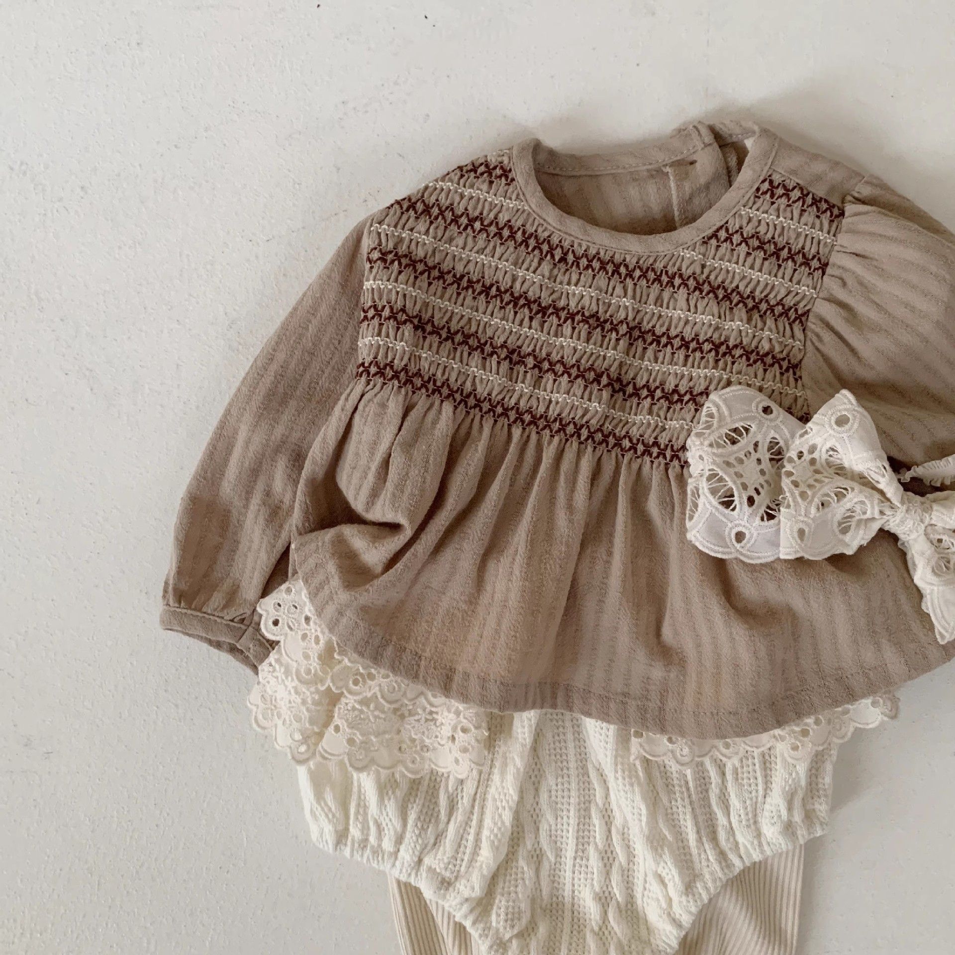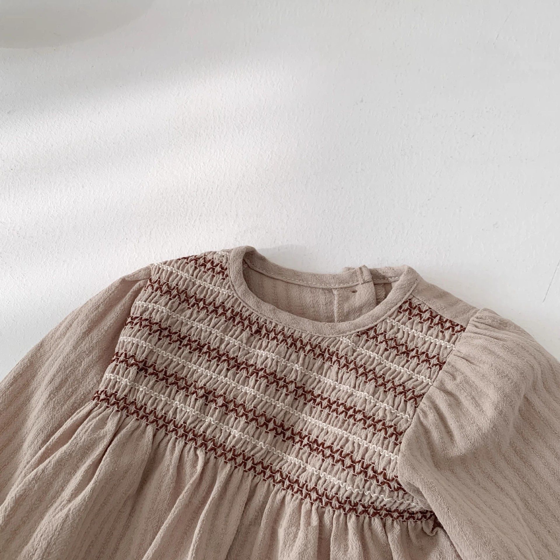 #Baby tops #Long sleeve tunic #Stitch embroidery #Fashionable baby #Casual outfit #Children's clothes