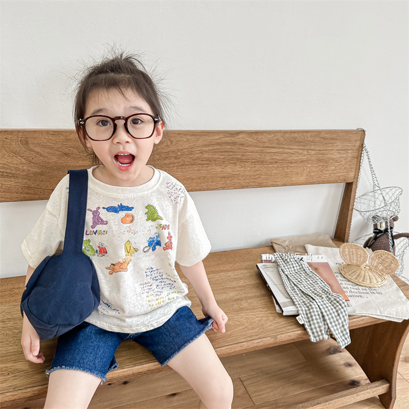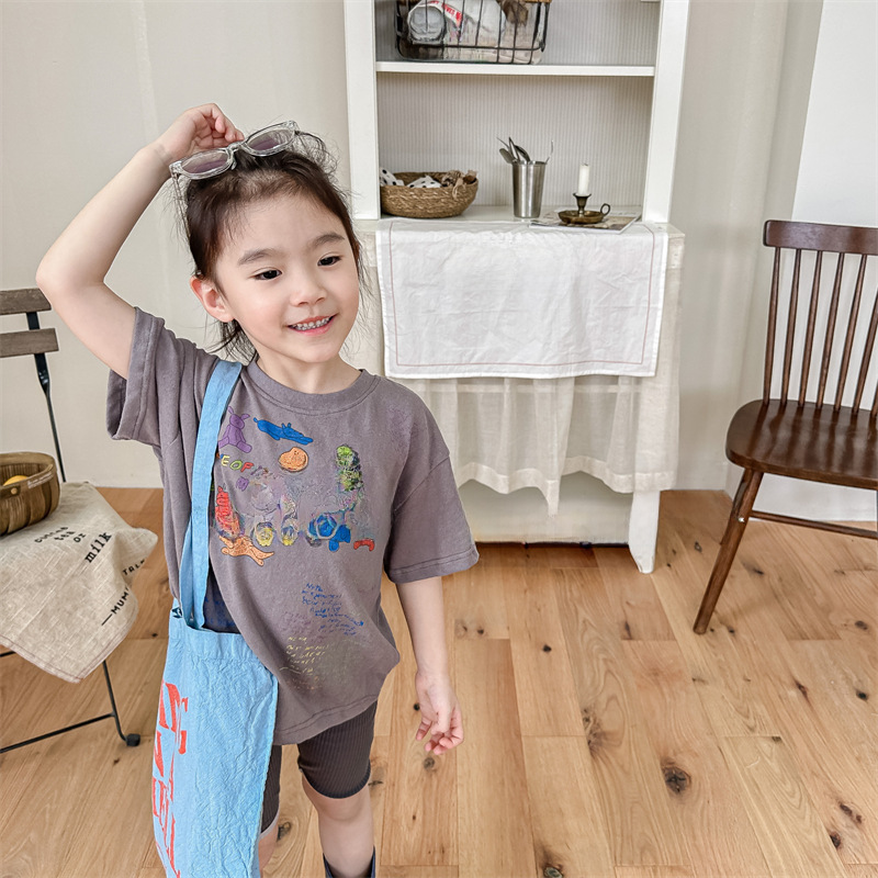 #Short-sleeved T-shirt #Active print #Korean children's clothing #Unisex #Summer outfit #Children's clothing