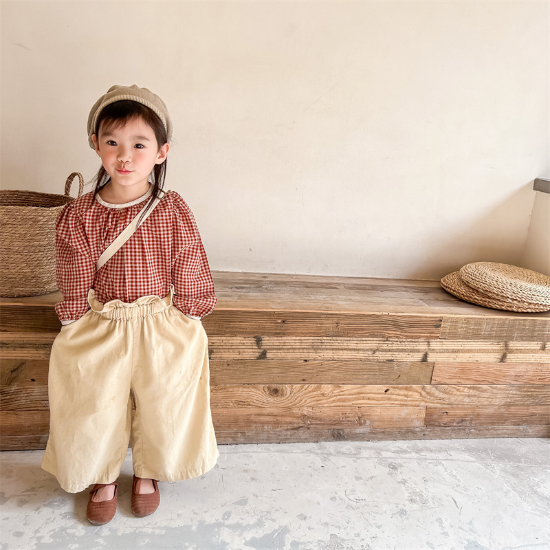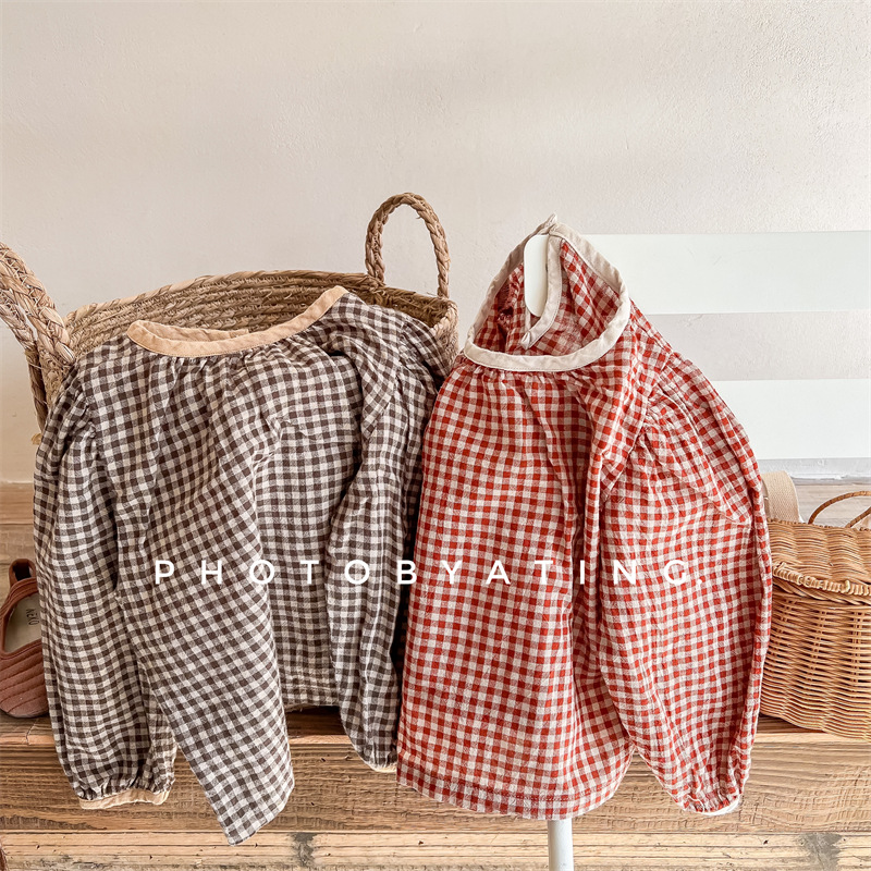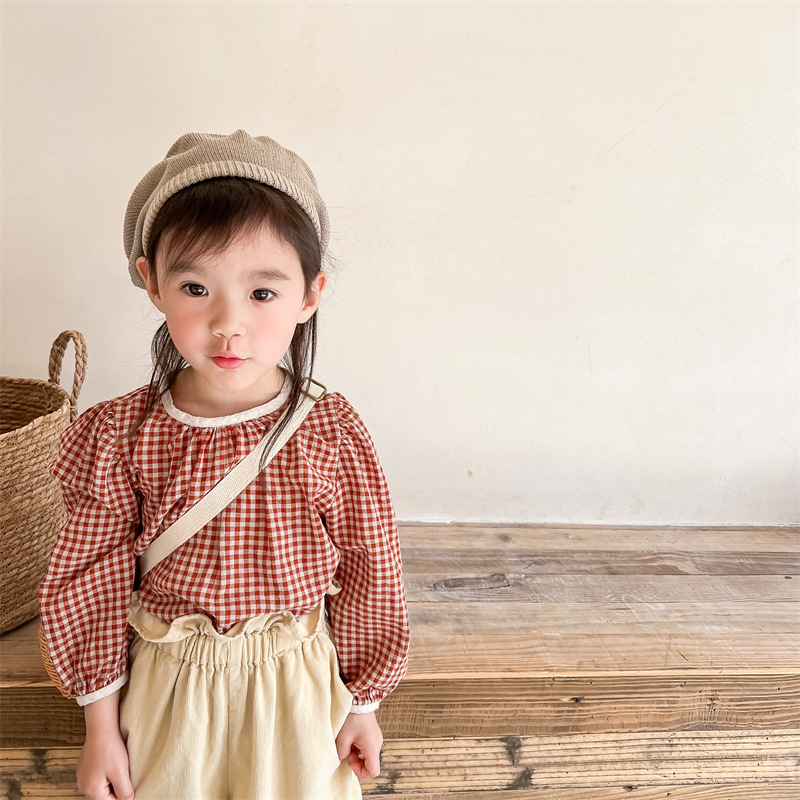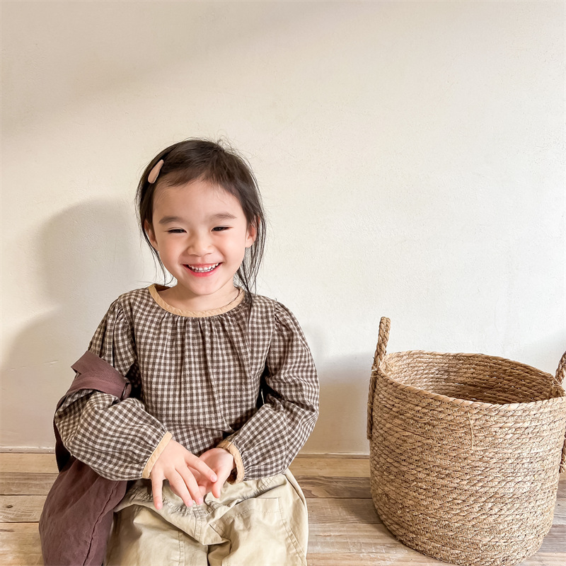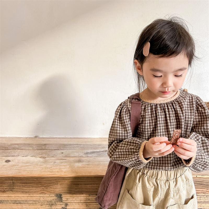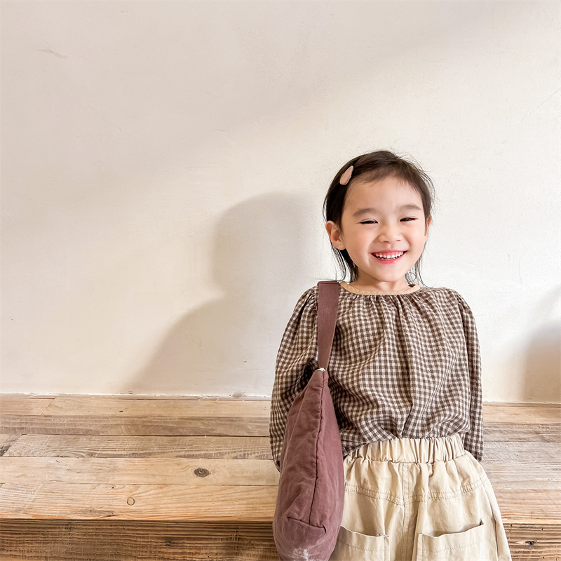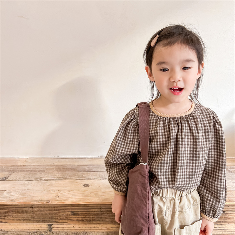 #Check shirt #Cotton linen #Girls shirt #Korean children's clothes #Spring/Autumn outfit #Children's clothes
