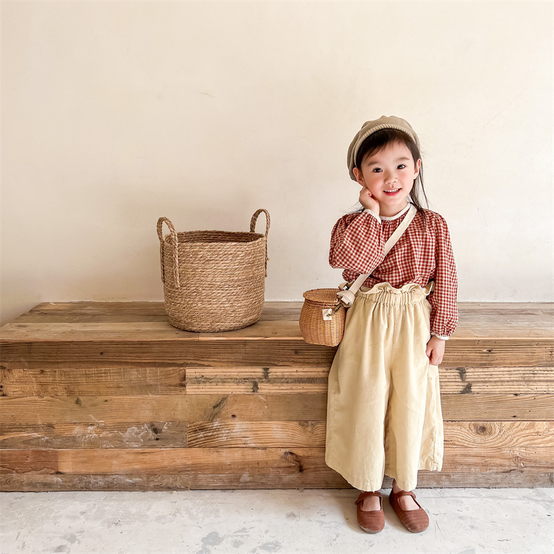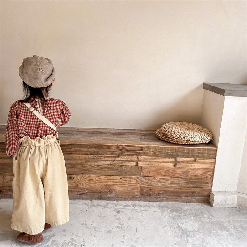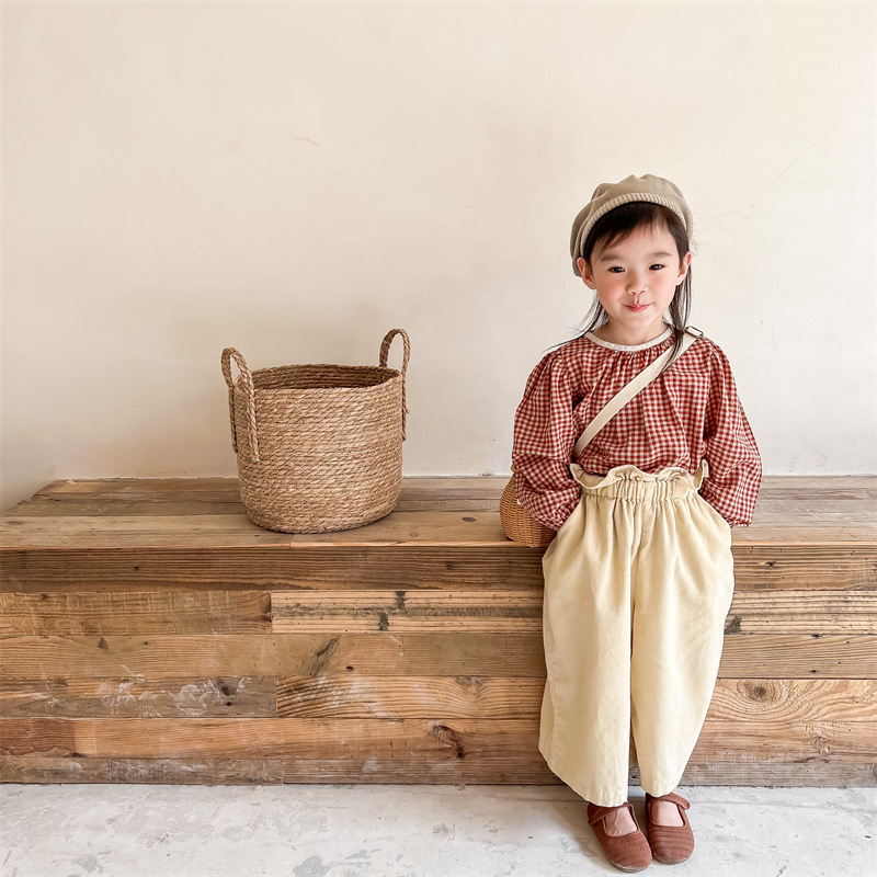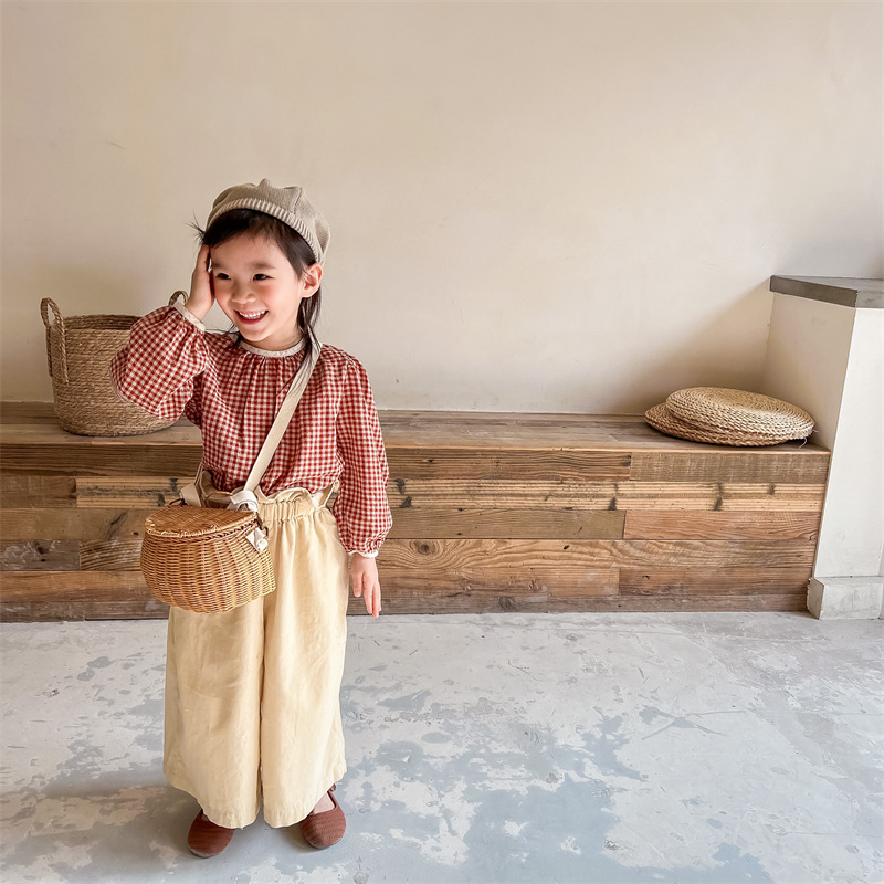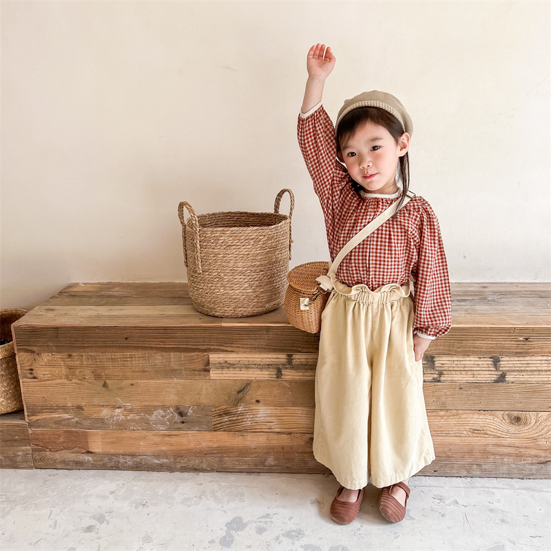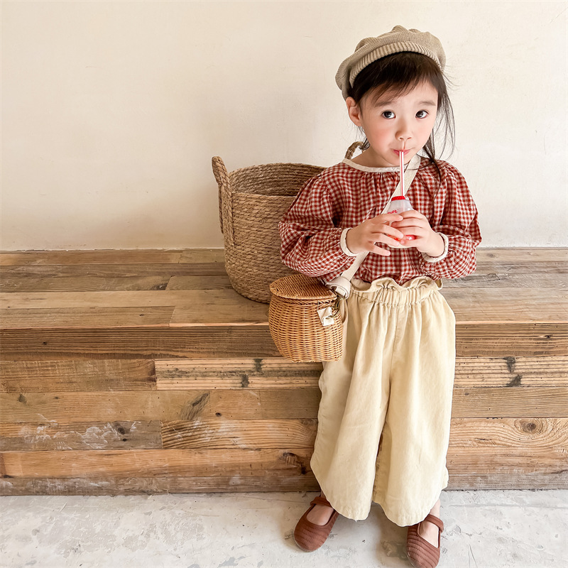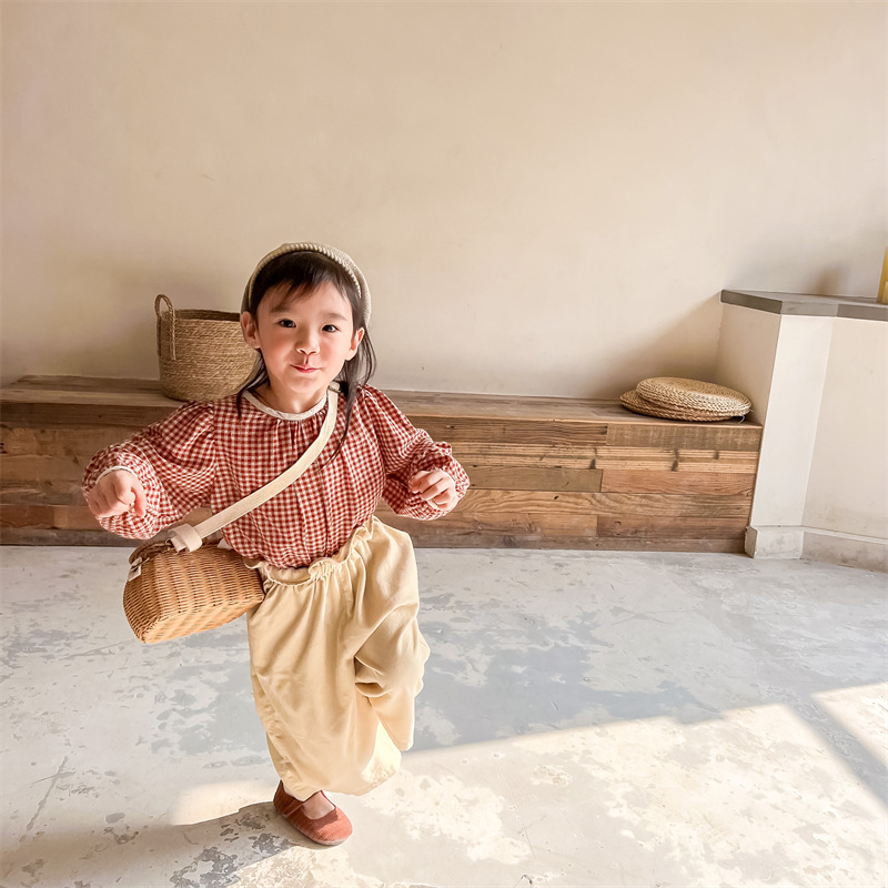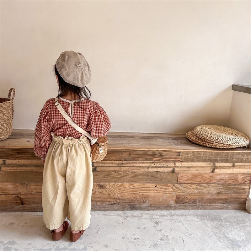 #Check shirt #Cotton linen #Girls shirt #Korean children's clothes #Spring/Autumn outfit #Children's clothes