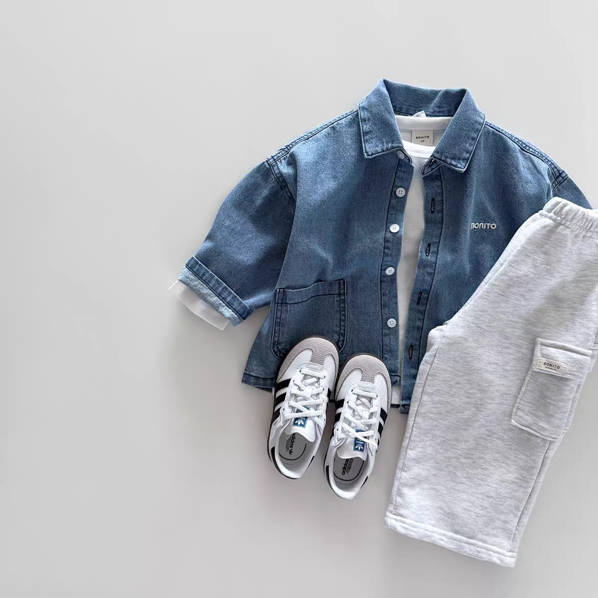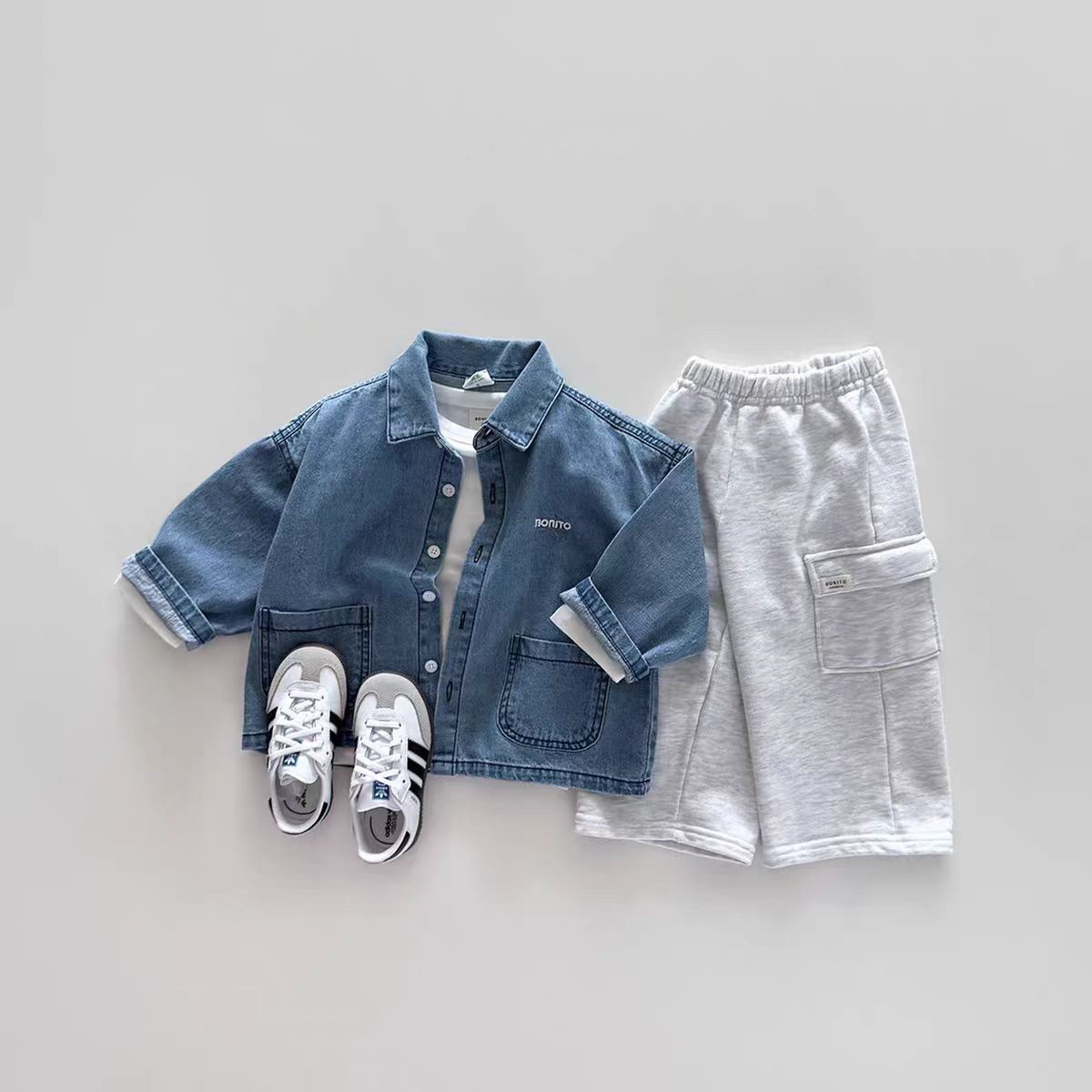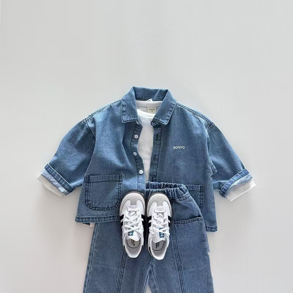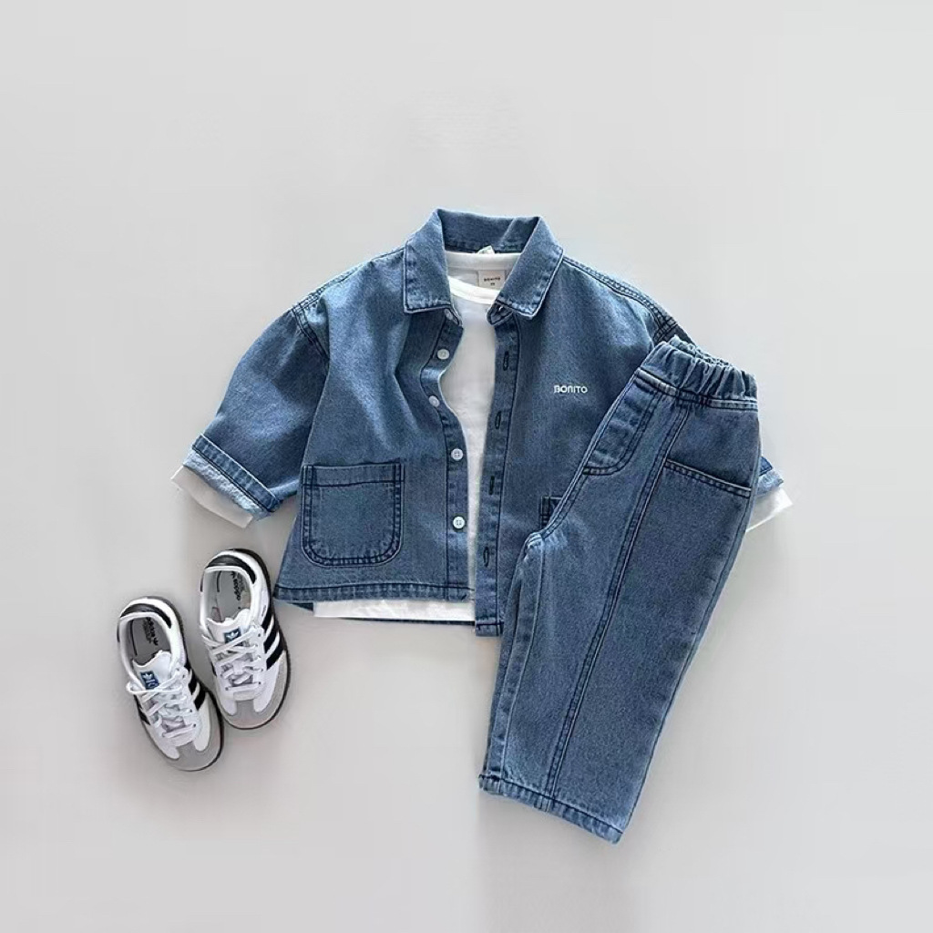 #kids denim #set up #denim shirt #long pants #unisex #kids clothes