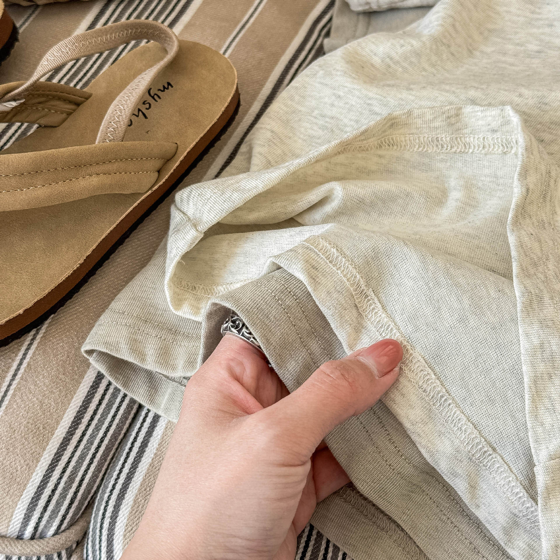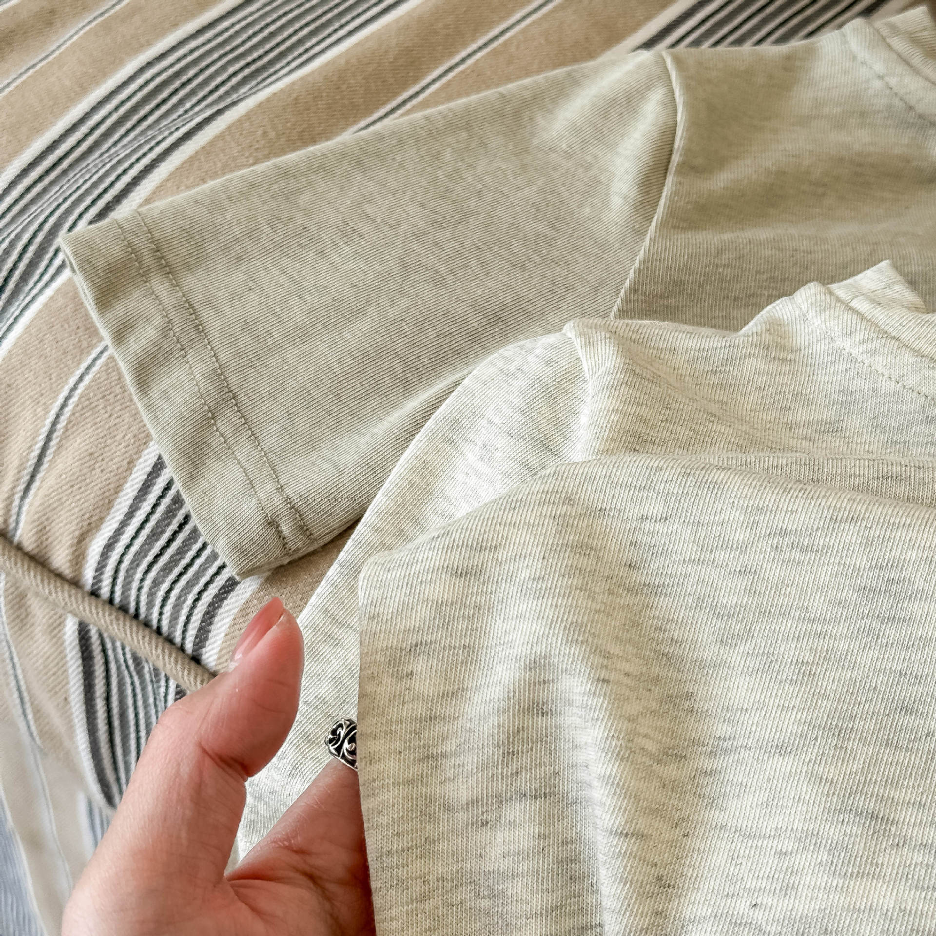 - There may be threads of different colors mixed into the fabric or other threads attached to your clothing.