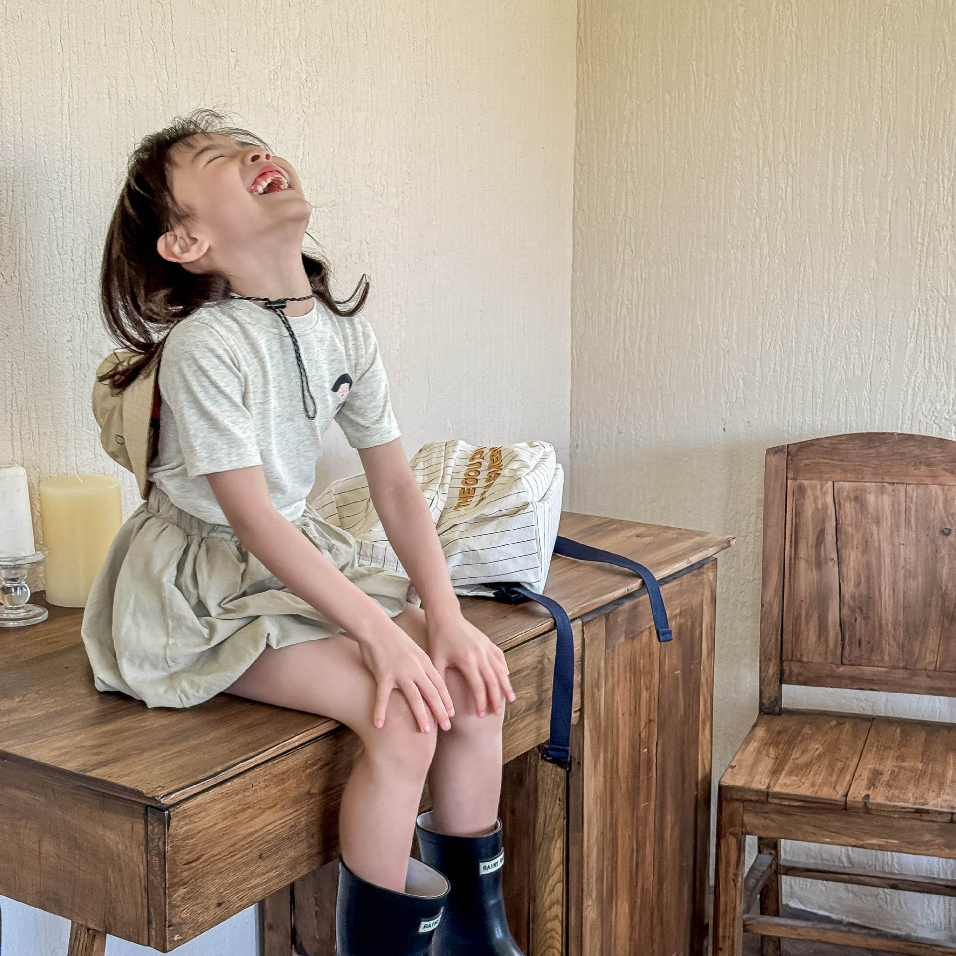 (Because Chinese children's product regulations prohibit tags from being attached to parts that come into contact with the skin, the size tags on almost all products are attached to the outside of the clothing, but this is not a defect.)