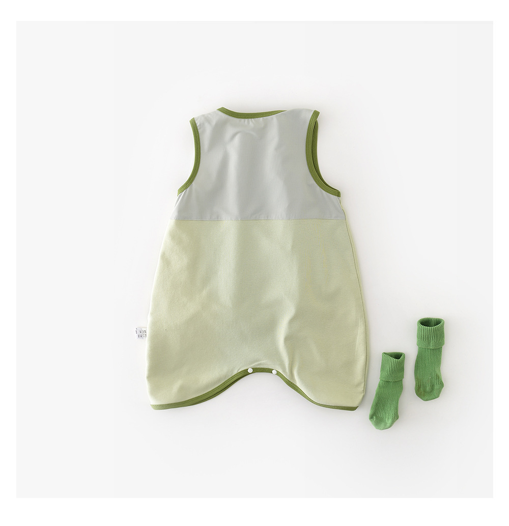 The Dino Dinosaur Sleeveless Bodysuit is a sleeveless summer bodysuit featuring dinosaur-themed illustrations. It's made of lightweight, breathable fabric, making it comfortable even in hot weather. The crotch has snap buttons, making diaper changes easy. Its unisex design can be worn by both boys and girls.