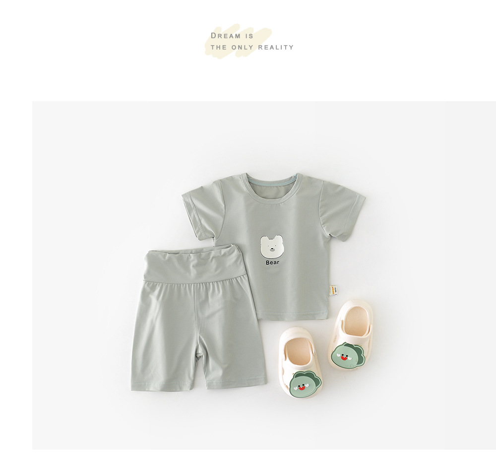 This set features a cute bear print short-sleeved T-shirt and high-waisted pants. The Korean-inspired design is perfect for babies and toddlers. The T-shirt is made of breathable material that keeps you comfortable even when you sweat. The high-waisted pants offer ease of movement and a stylish look. The simple yet cute design makes it perfect for everyday wear.