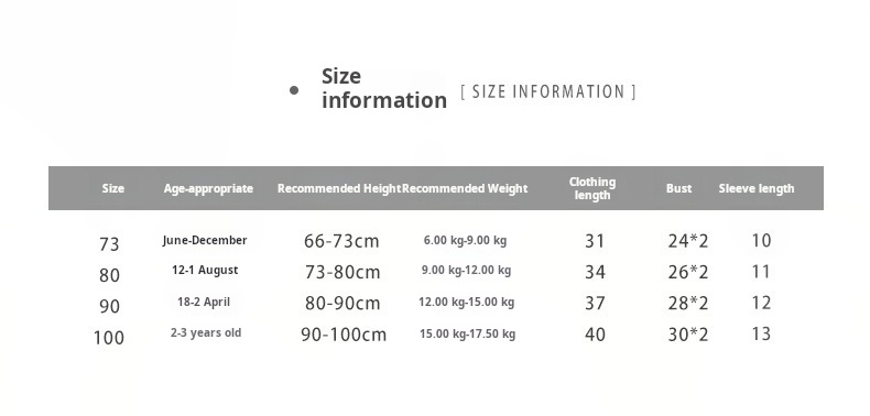 (Because Chinese children's product regulations prohibit tags from being attached to parts that come into contact with the skin, the size tags on almost all products are attached to the outside of the clothing, but this is not a defect.)