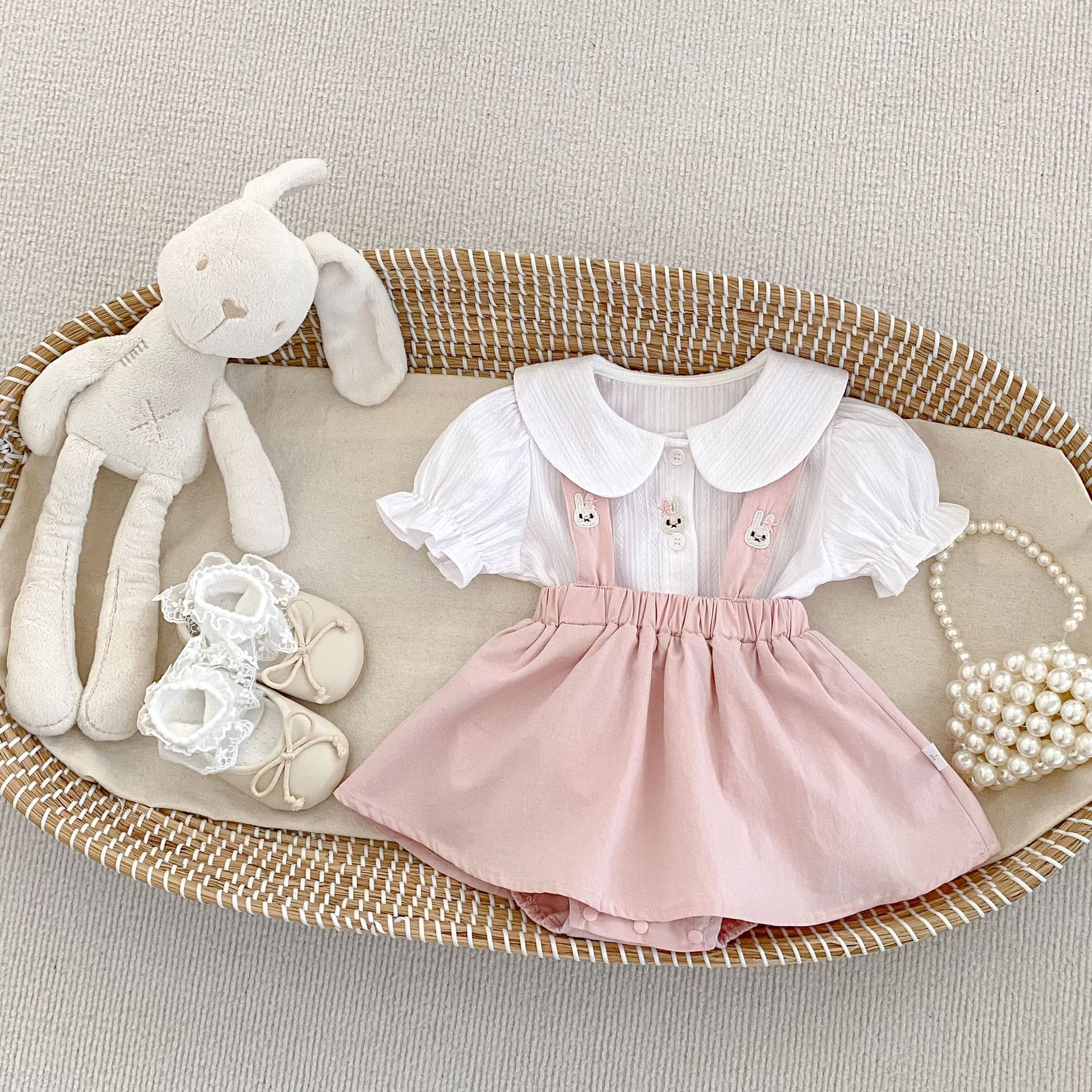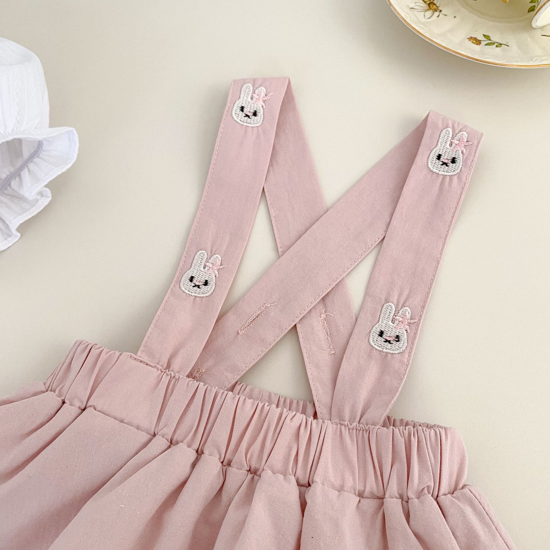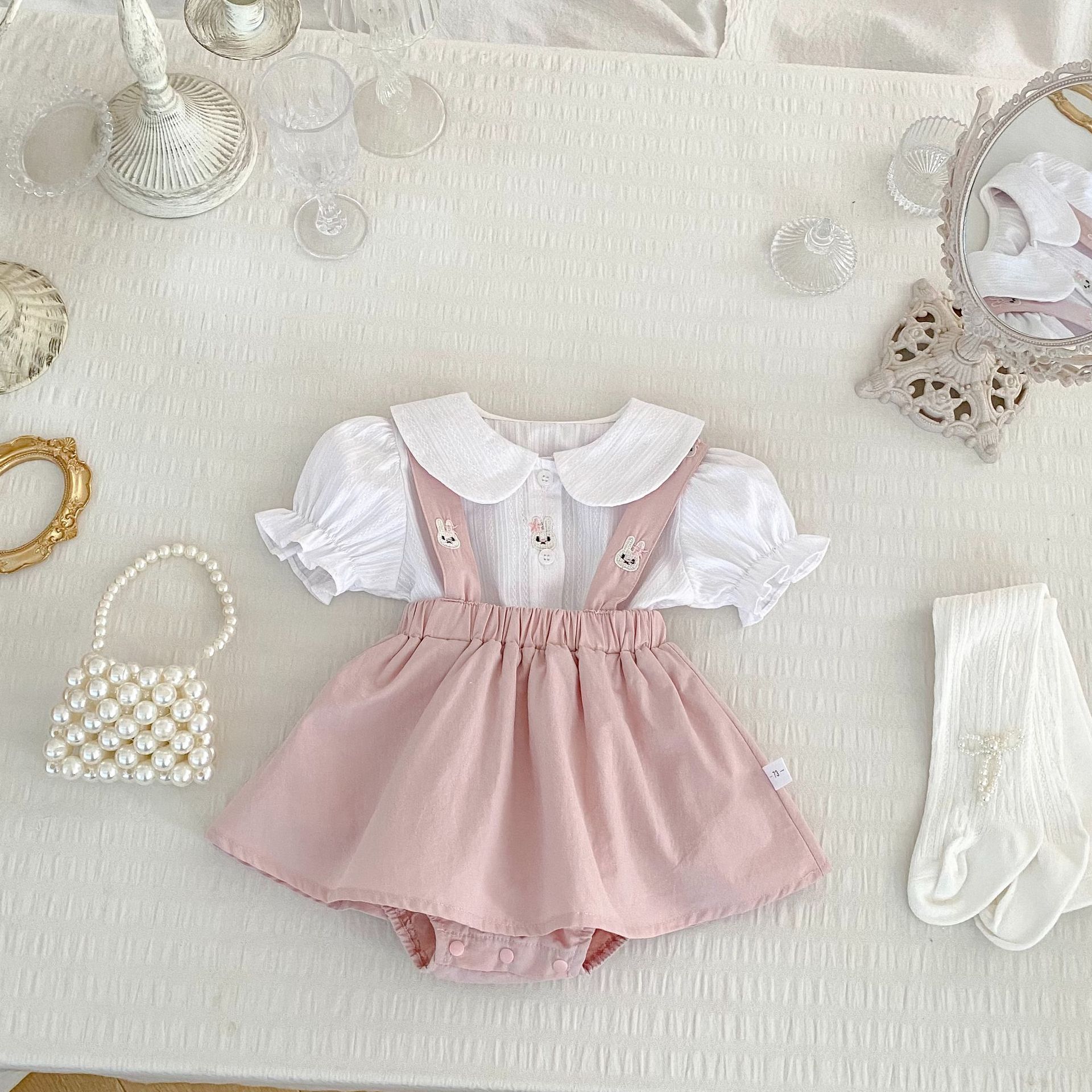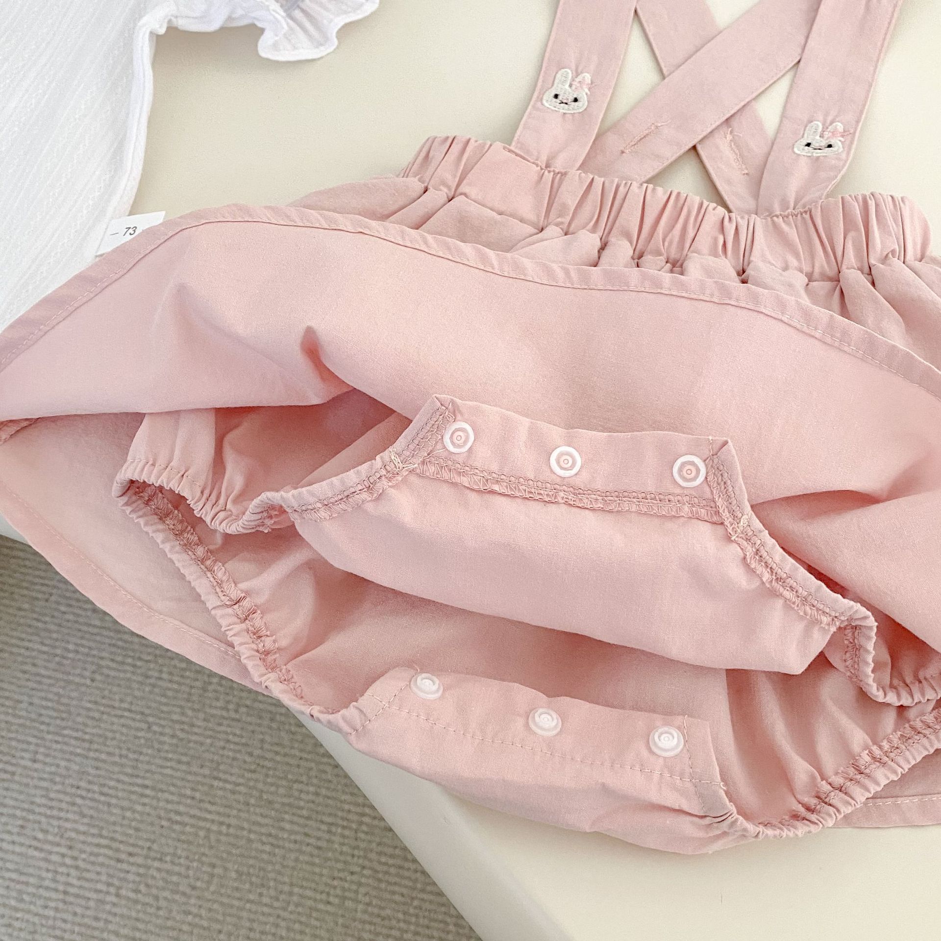 #Baby clothes #Baby girl #Short sleeve blouse #Culottes #With suspenders #Rabbit embroidery #Summer baby