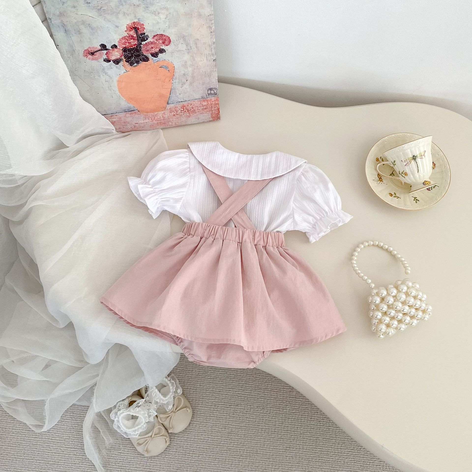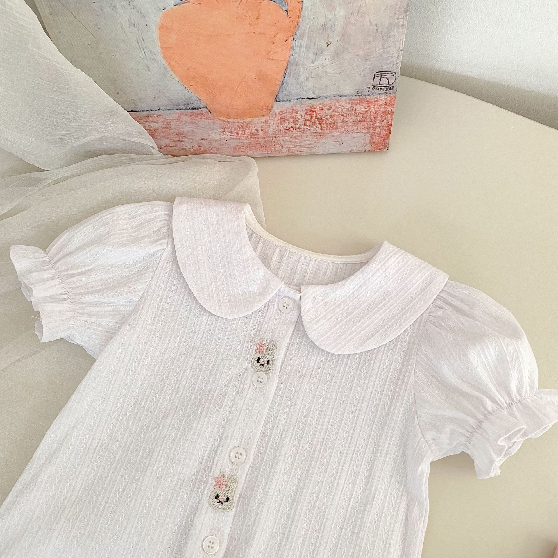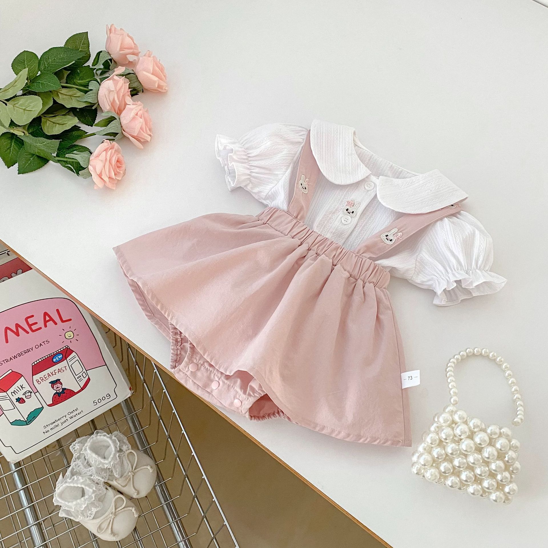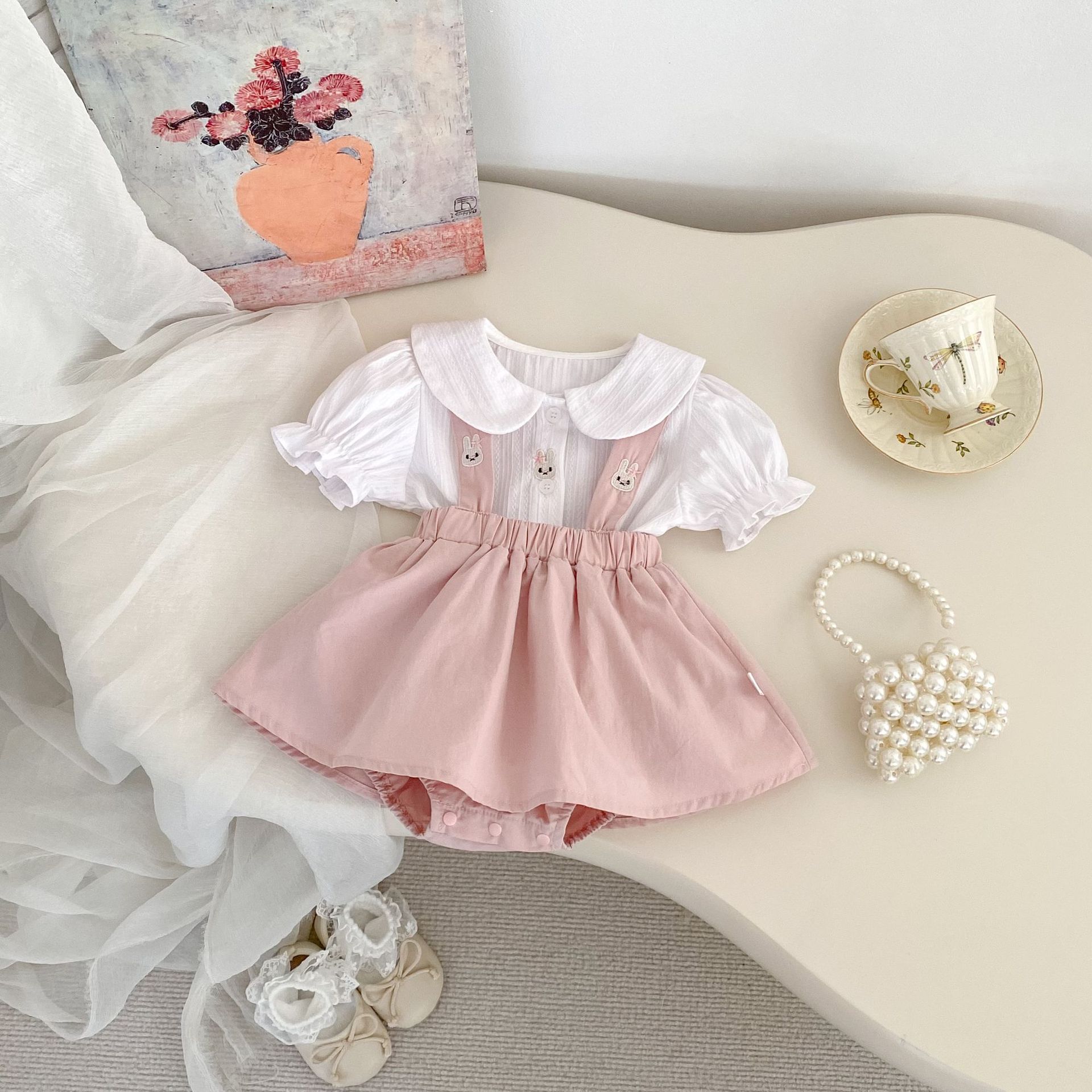 #Baby clothes #Baby girl #Short sleeve blouse #Culottes #With suspenders #Rabbit embroidery #Summer baby