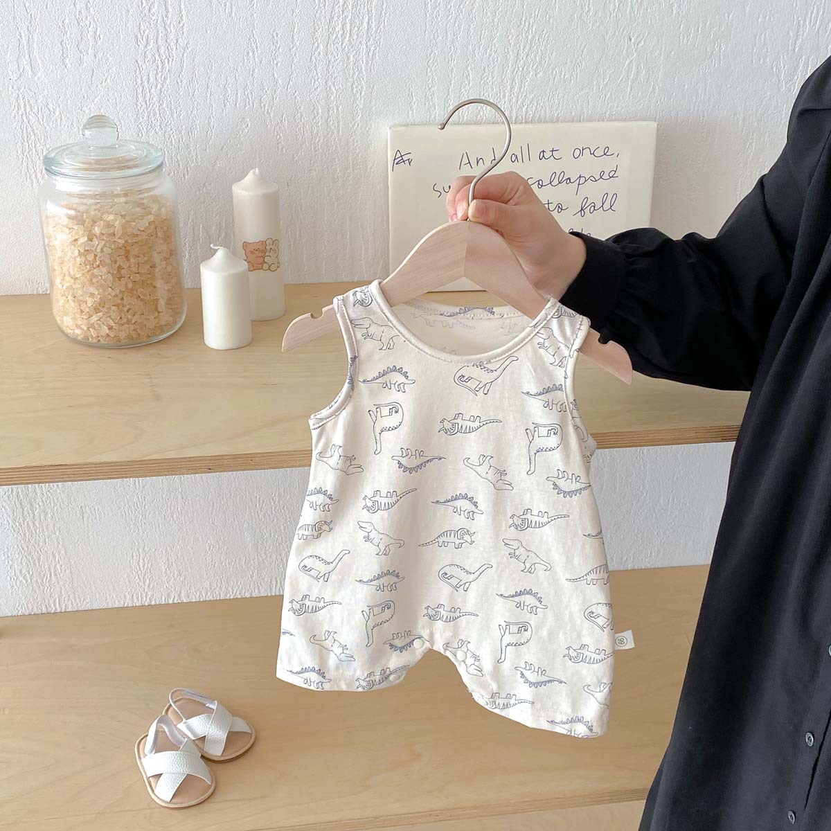 #BabyClothes #BabyBoy #SleevelessRomper #DinosaurPrint #SummerBaby #EasyToDress #BabyOutfit