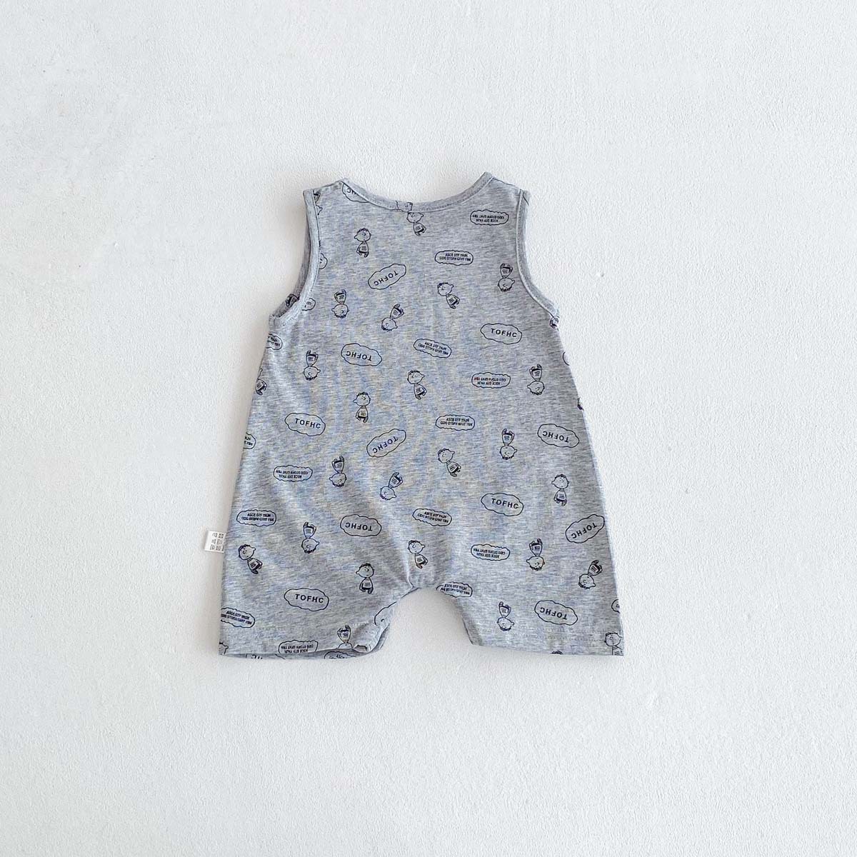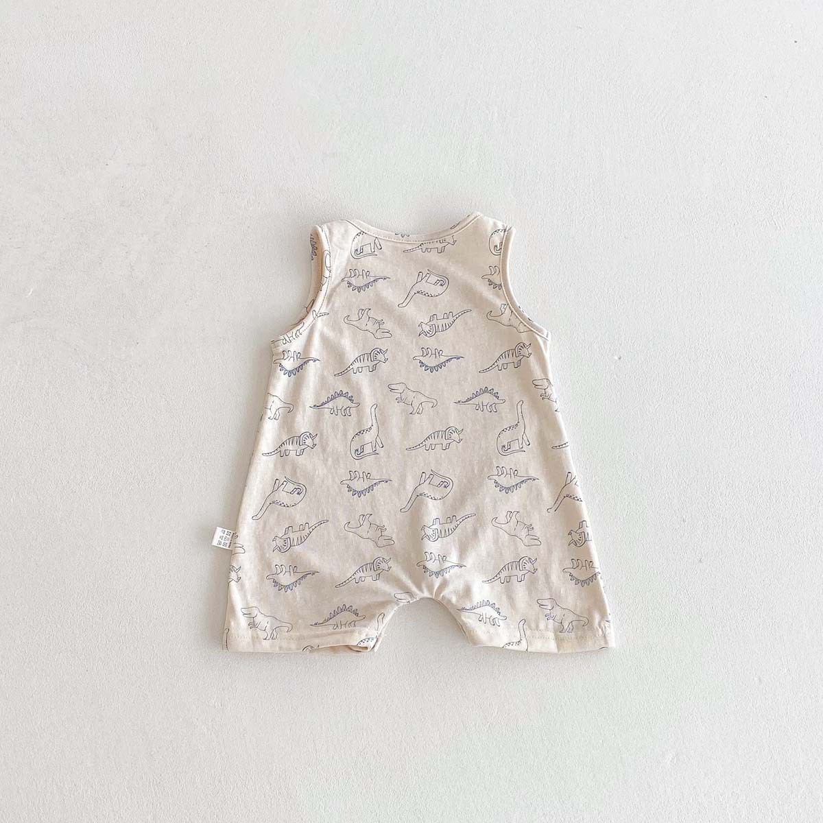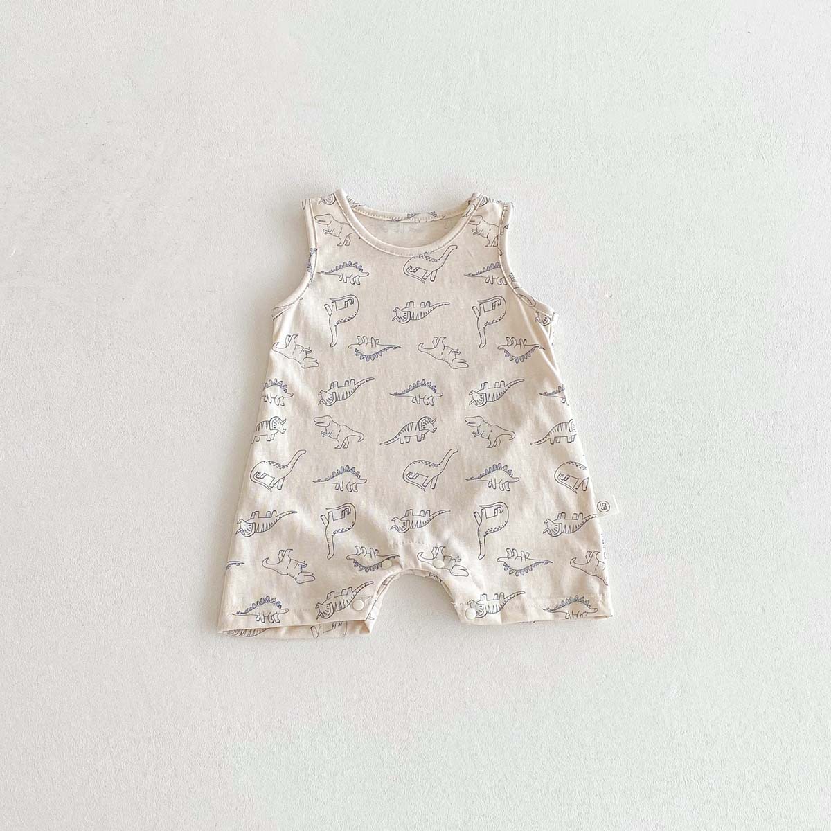This sleeveless romper for baby boys features a lively dinosaur print that will inspire your baby's adventurous spirit. Made from cool, refreshing material, it's perfect for summer babies. The easy-to-move design makes changing clothes and diapers a breeze. It's perfect for everyday wear as well as playing outside. It's a playful item that will bring out your baby's cuteness.