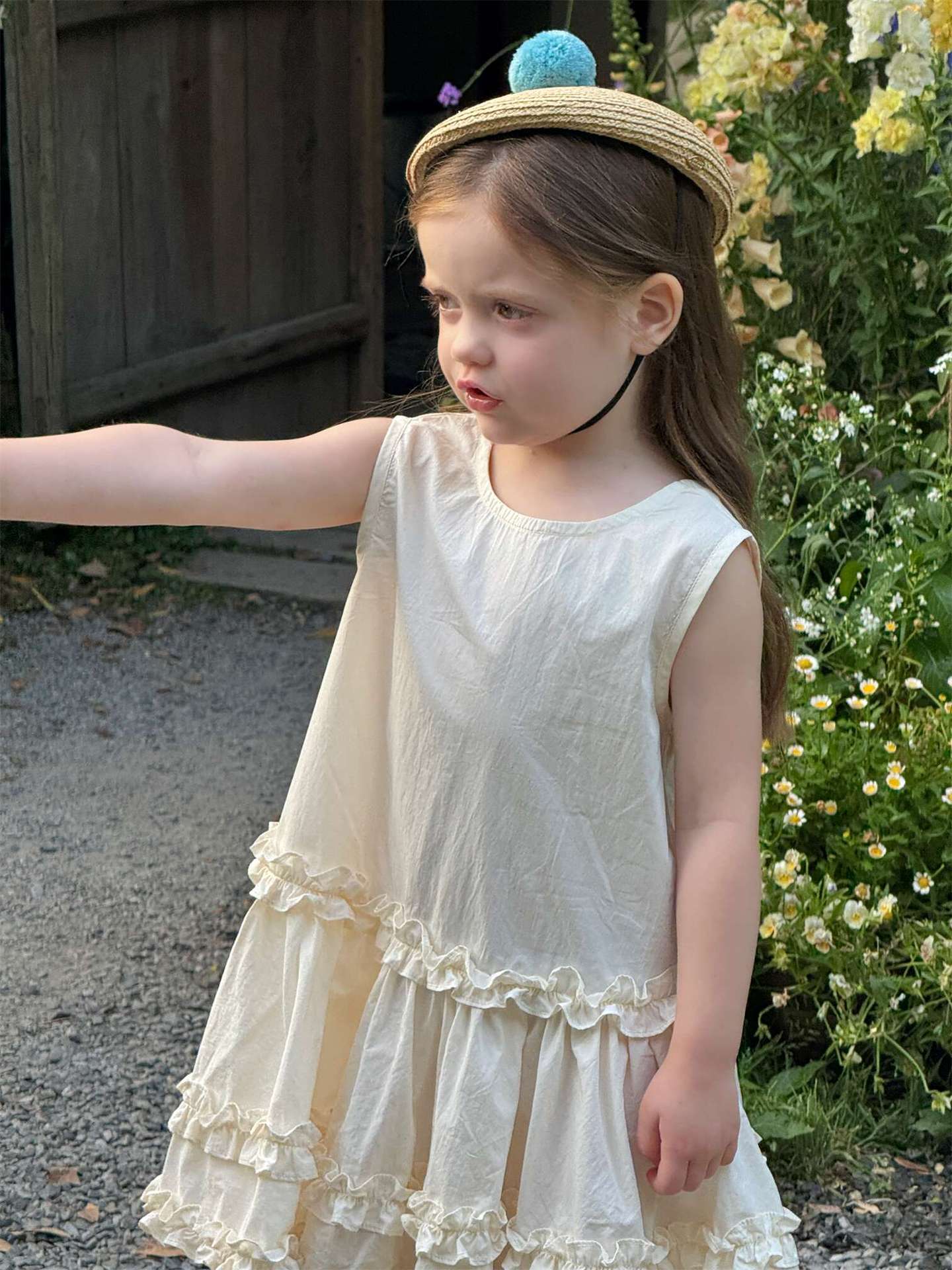 #KidsDress #Children'sClothing #RuffleDress #Sleeveless #SolidDress #GirlyDress #GirlsClothing