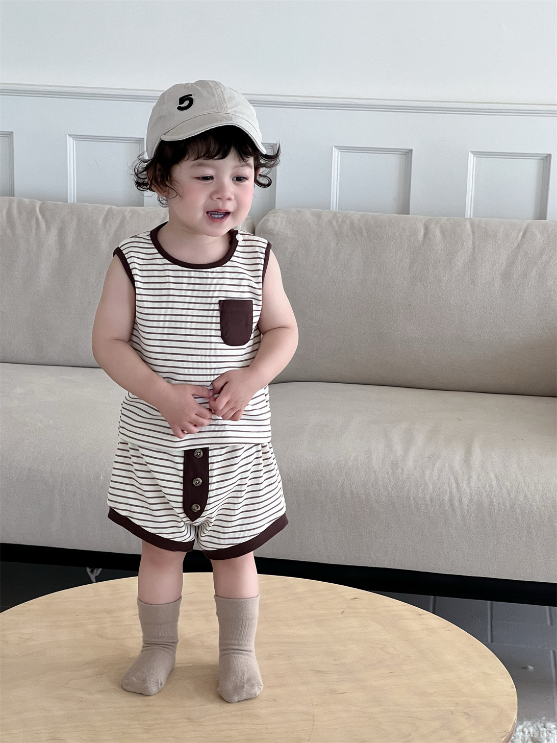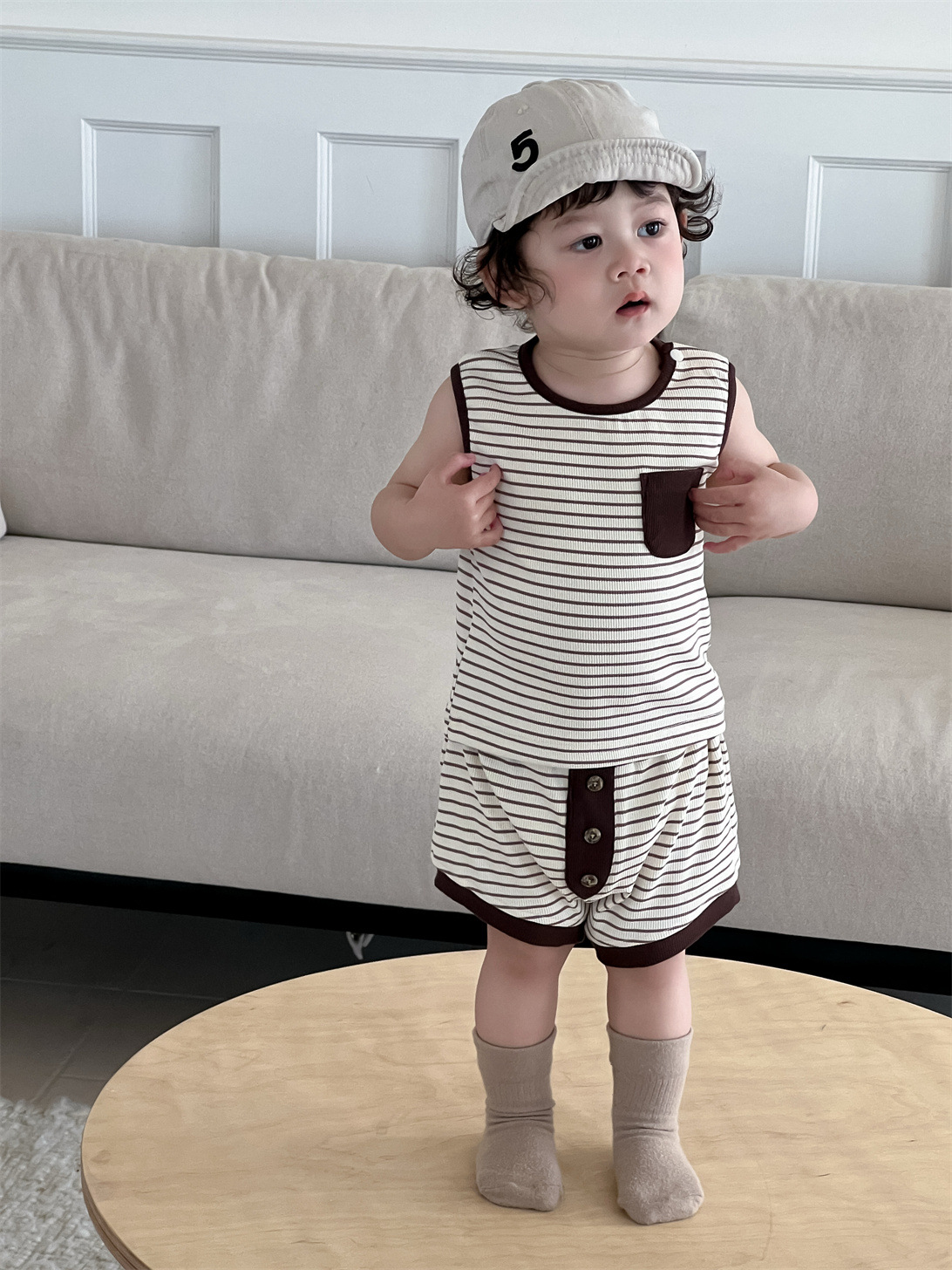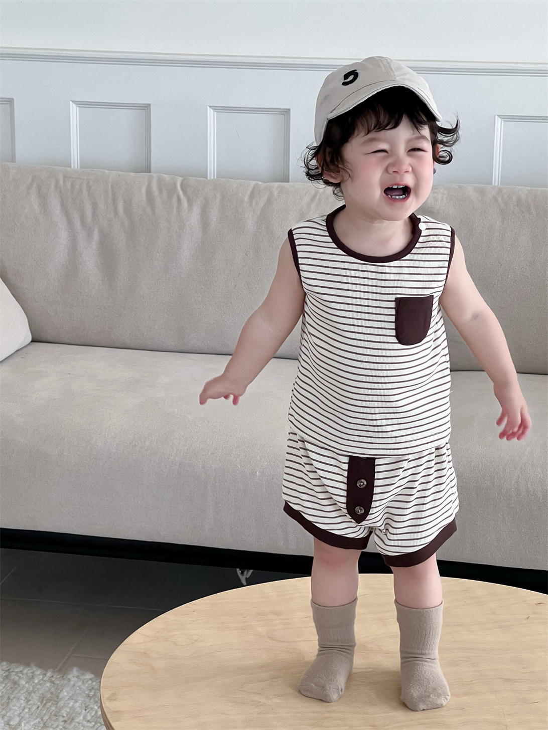 #KidsSet #Children'sClothing #StripedPattern #TankTop #Shorts #BoysClothing #CasualSet