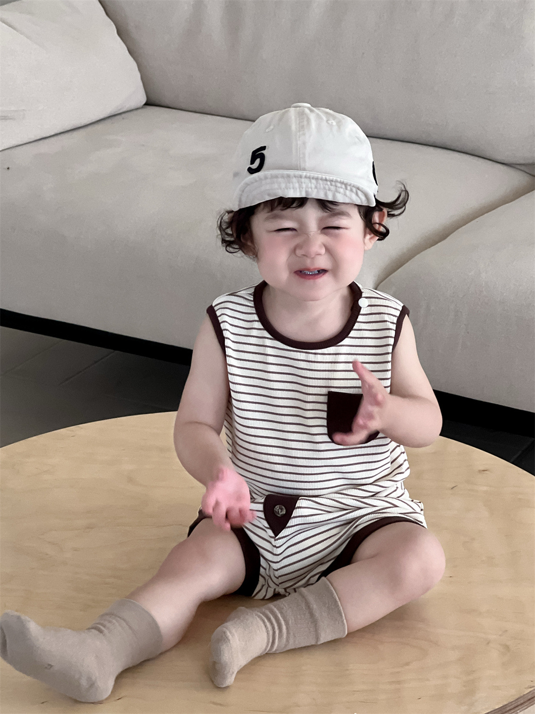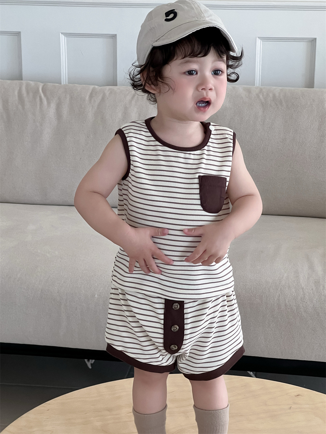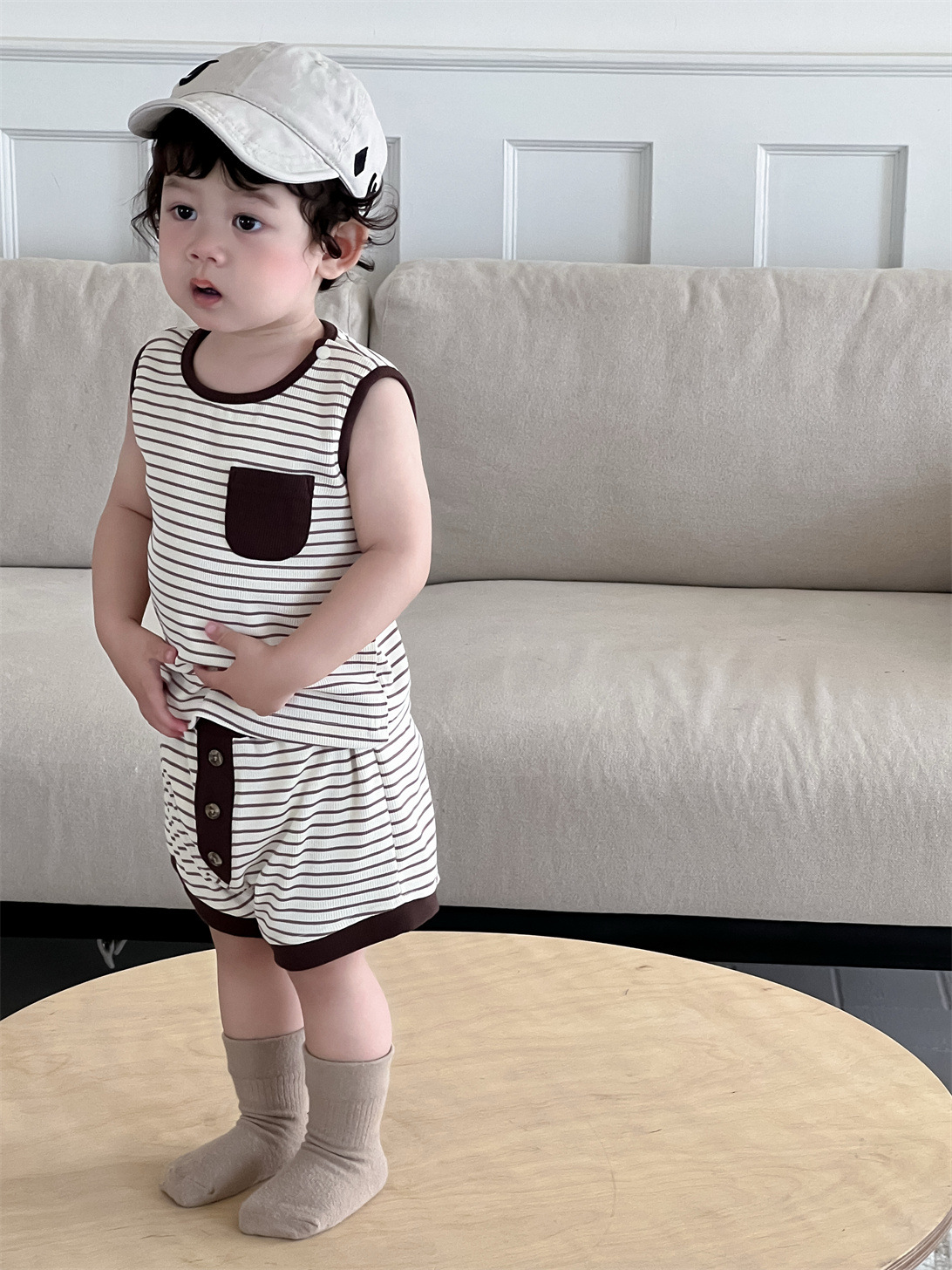 #KidsSet #Children'sClothing #StripedPattern #TankTop #Shorts #BoysClothing #CasualSet