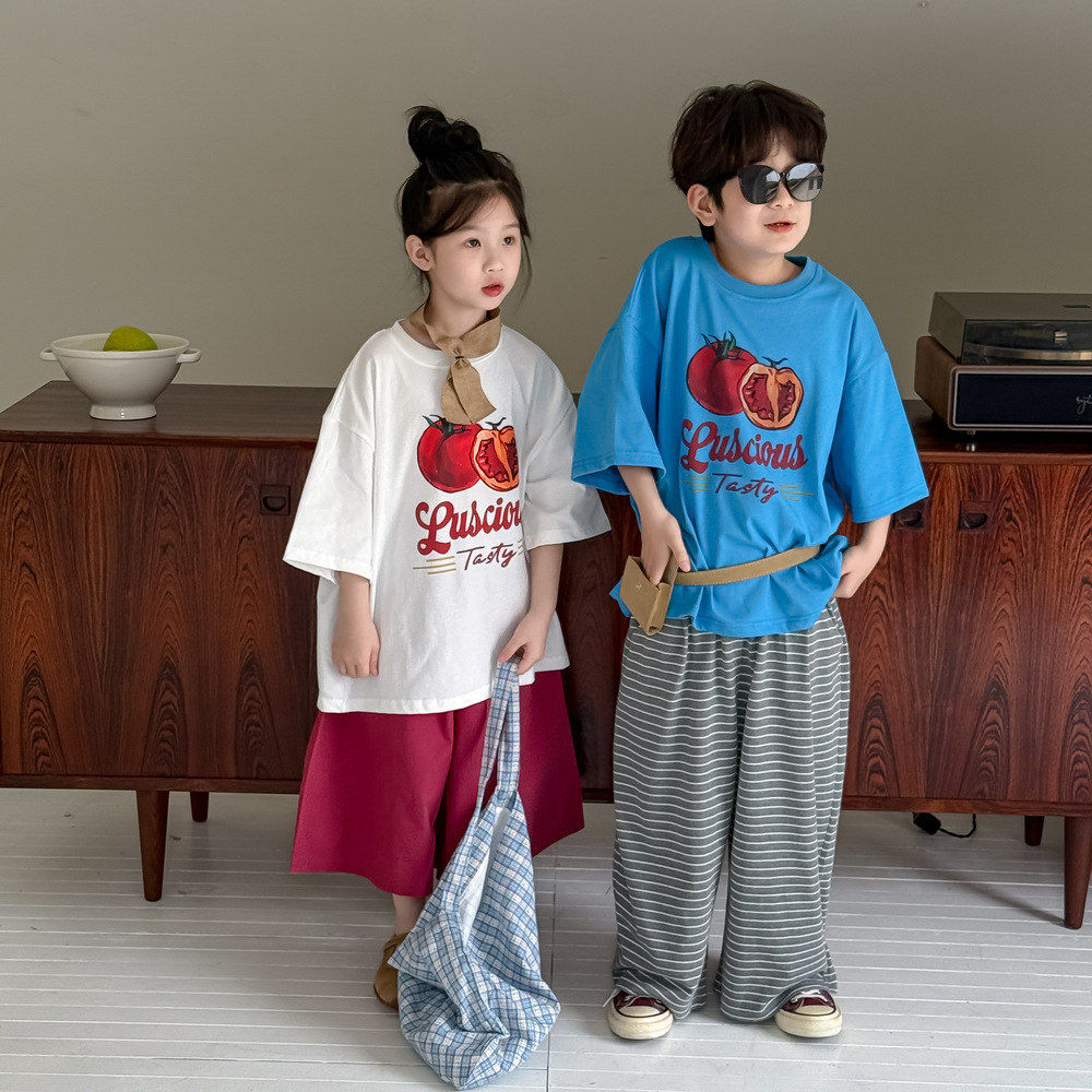 #Kids' T-shirt #Printed T-shirt #Short-sleeved T-shirt #Tomato print #Summer clothes #Unisex #Casual