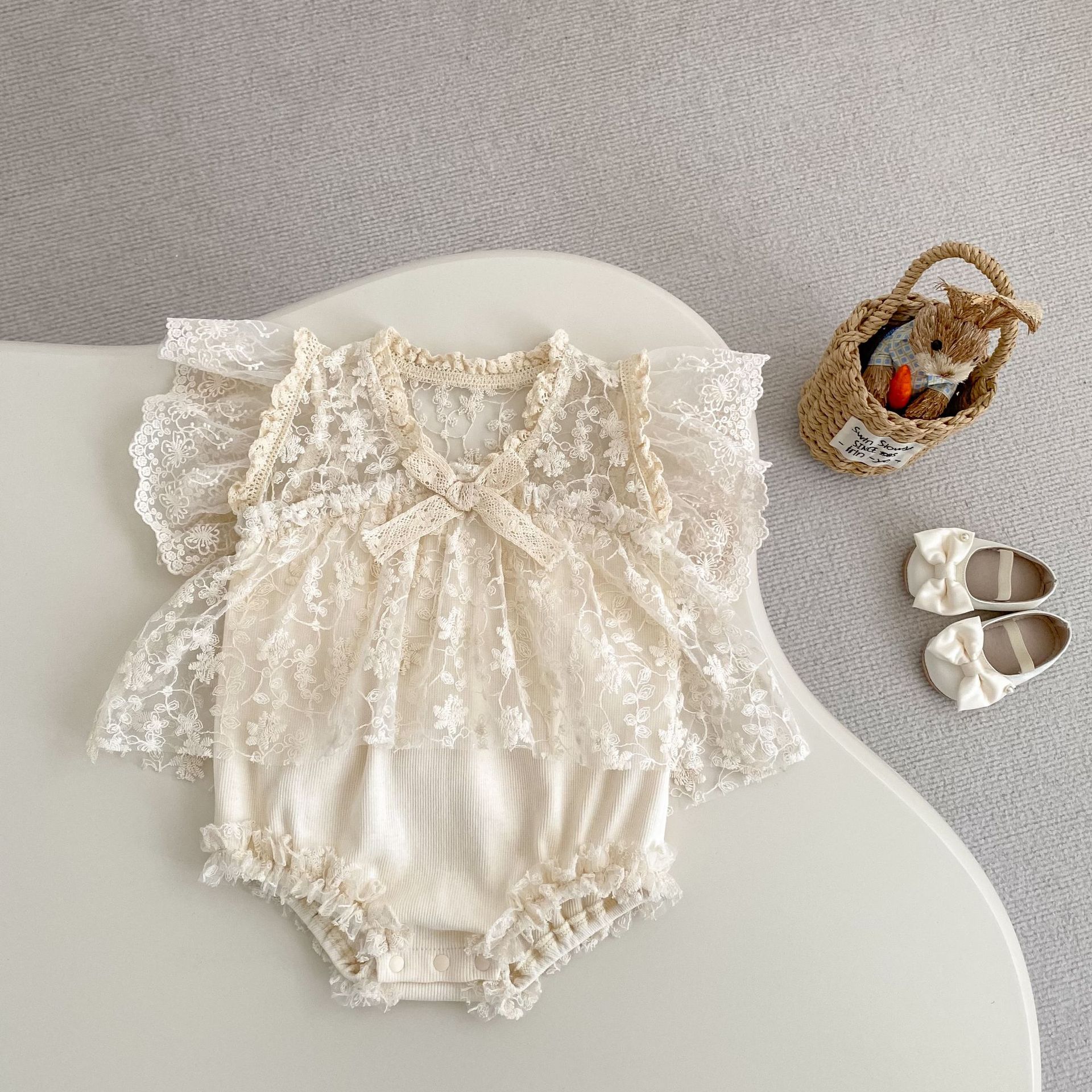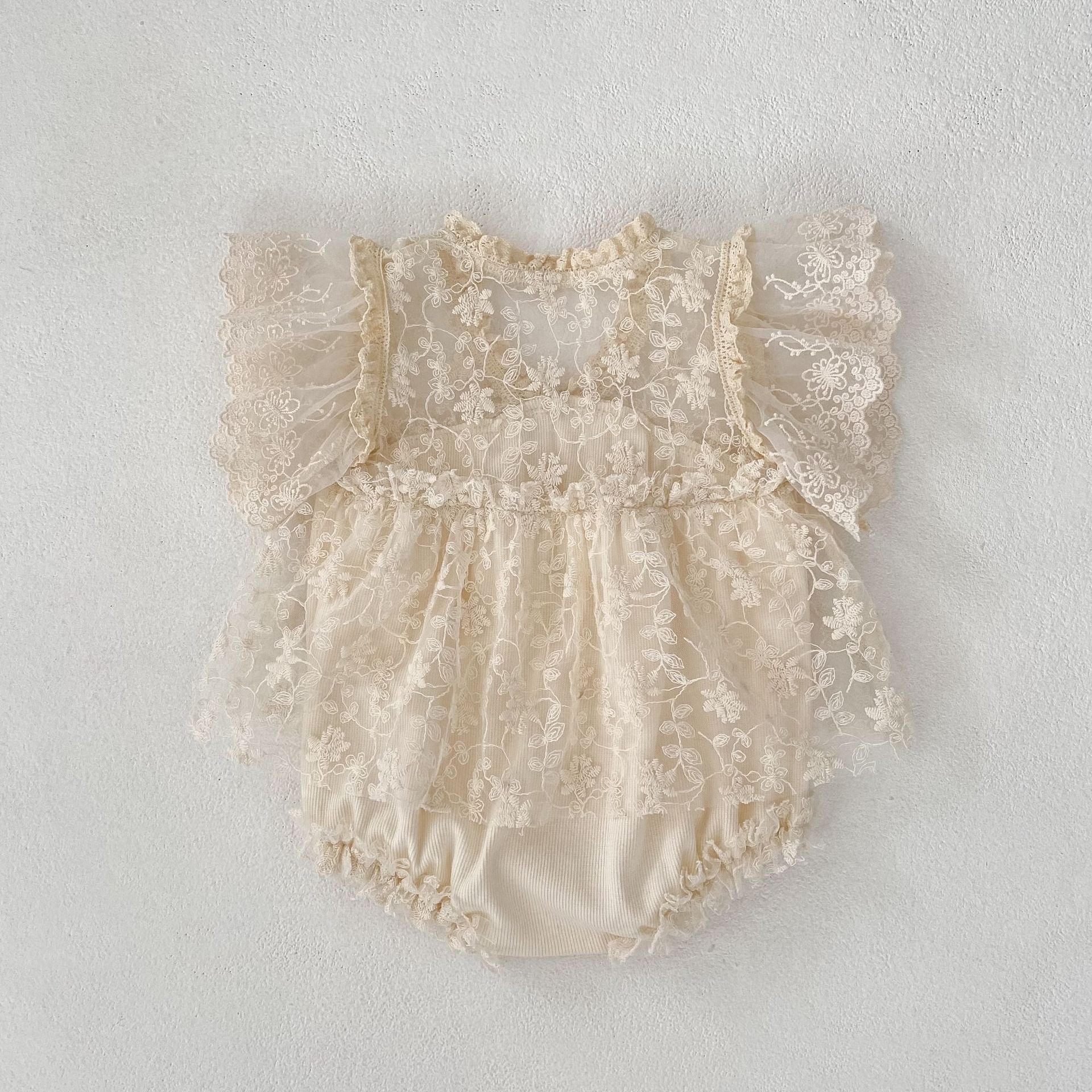 Introducing this adorable Korean-style embroidered lace docking romper . A princess-like piece perfect for summer babies.