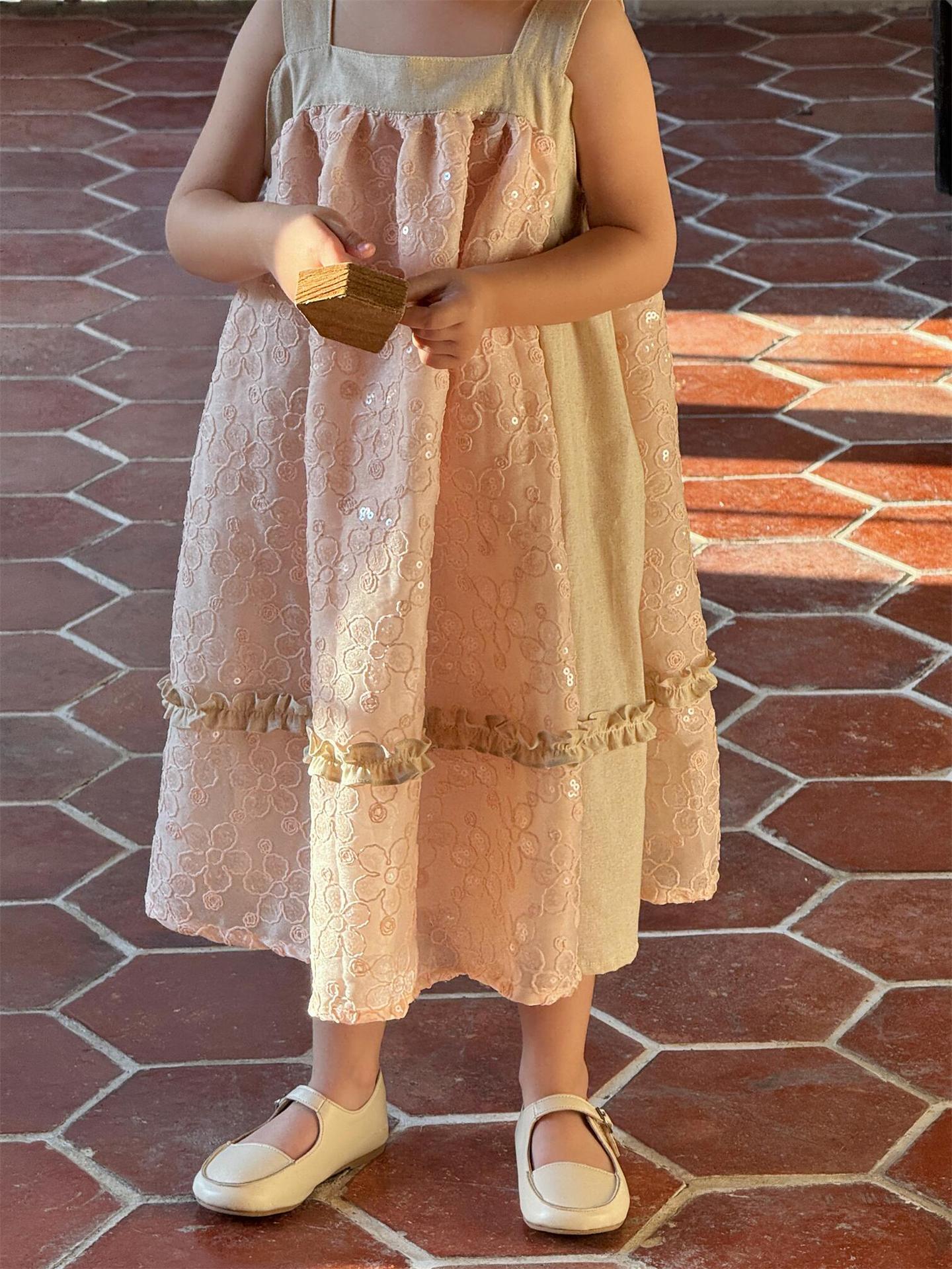 #Kids dress #Sleeveless dress #Embroidered lace #Sequins #Summer clothes #Baby girl