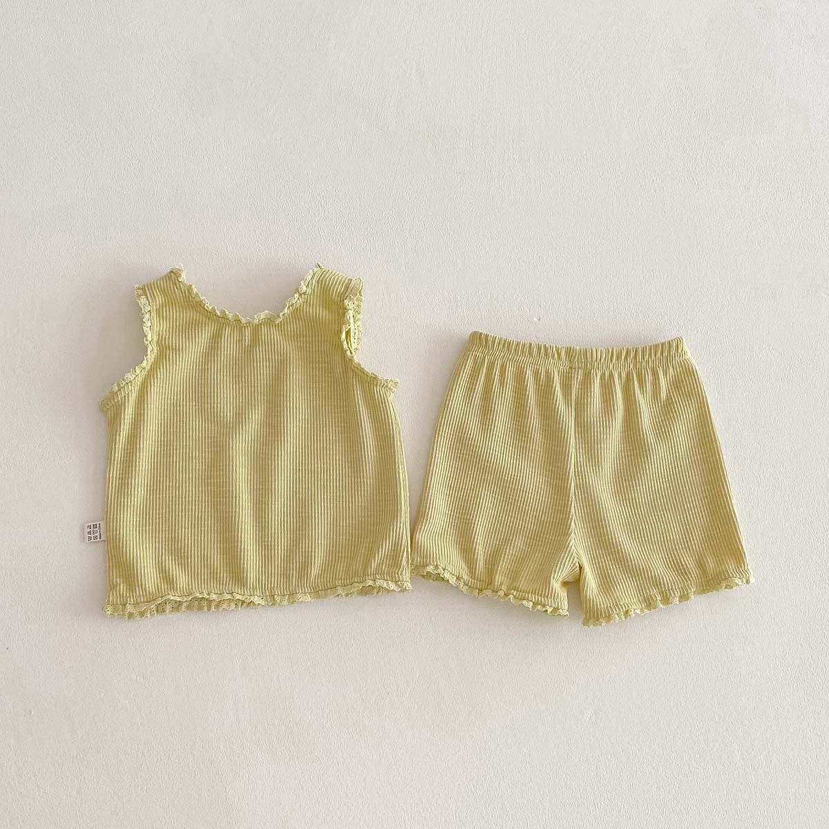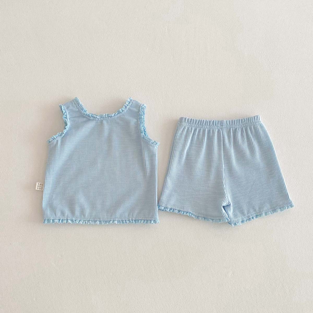 This lightweight , two-piece set, consisting of a ribbon frill tank top and shorts , is perfect for summer and will add a touch of cuteness to your baby or toddler girl.