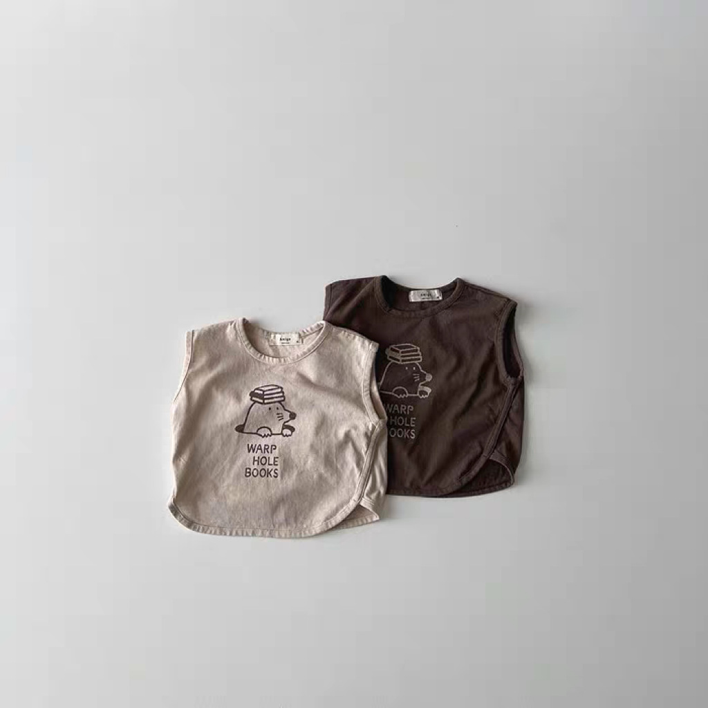 The cool, sleeveless design keeps your child comfortable even on hot days. Made from soft, breathable cotton, it features a playful design with a cute mole illustration printed on the chest. Pair it with simple bottoms for a stylish, casual look. This versatile piece is perfect for everyday wear, as well as for playing at the park.