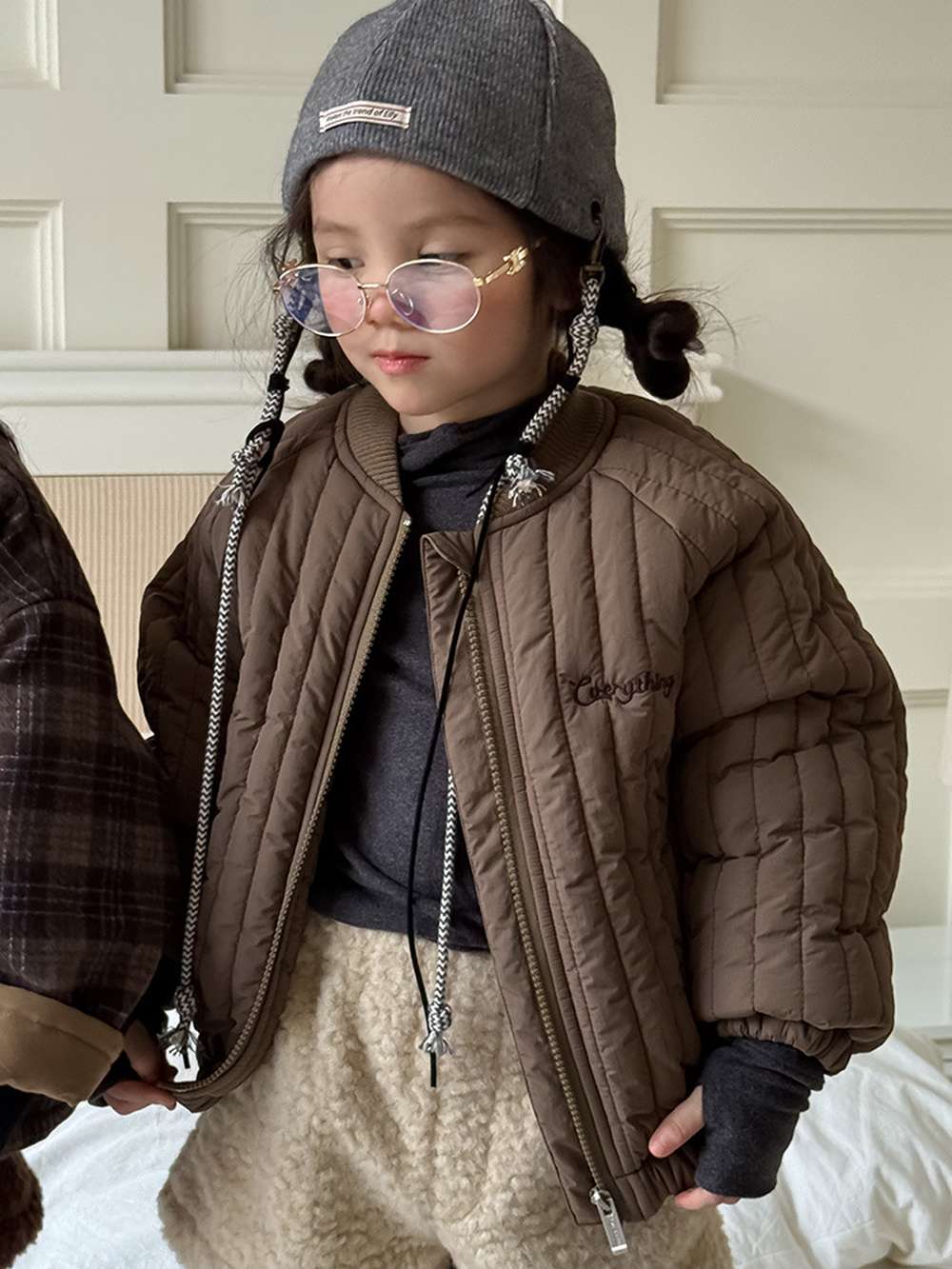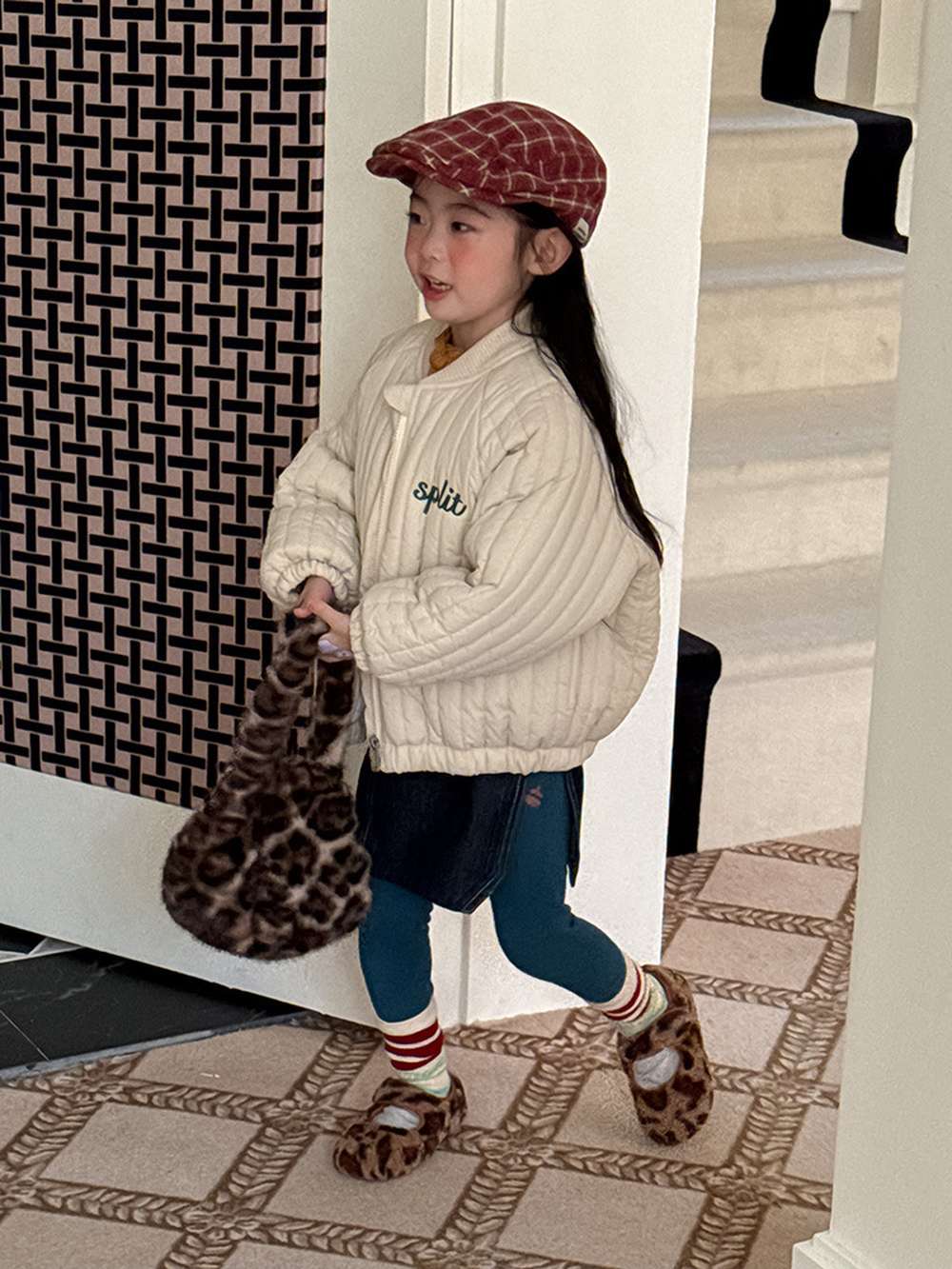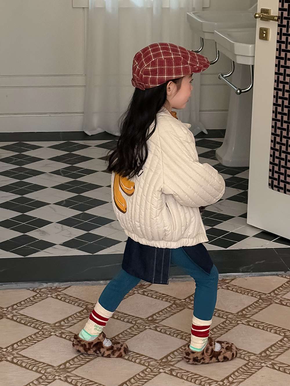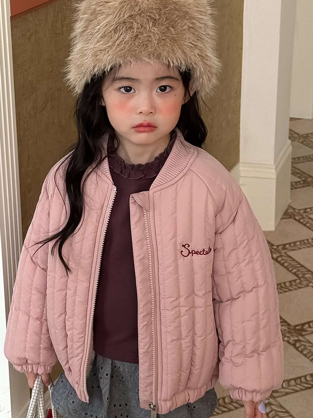 This long-sleeved quilted jacket is a children's item that is filled with padding for fluffy warmth. The all-over embroidery of character patterns adds a special, adorable touch to this casual outerwear . The lining is made of soft rabbit fur-like material, making this jacket both comfortable and stylish, making it a stylish winter garment for the cold season.