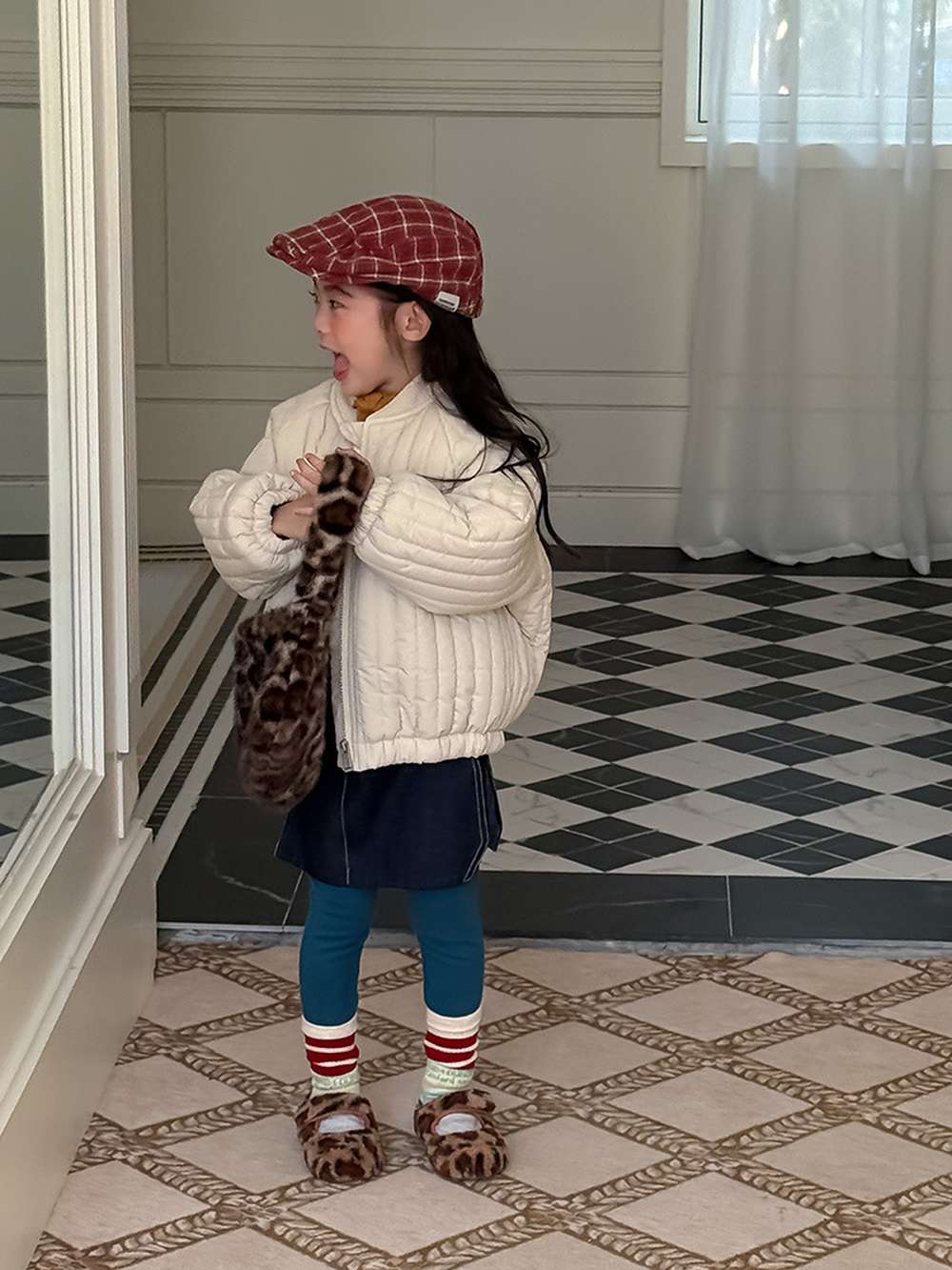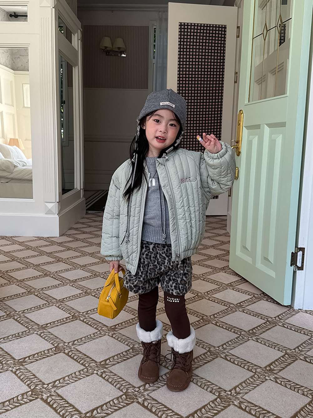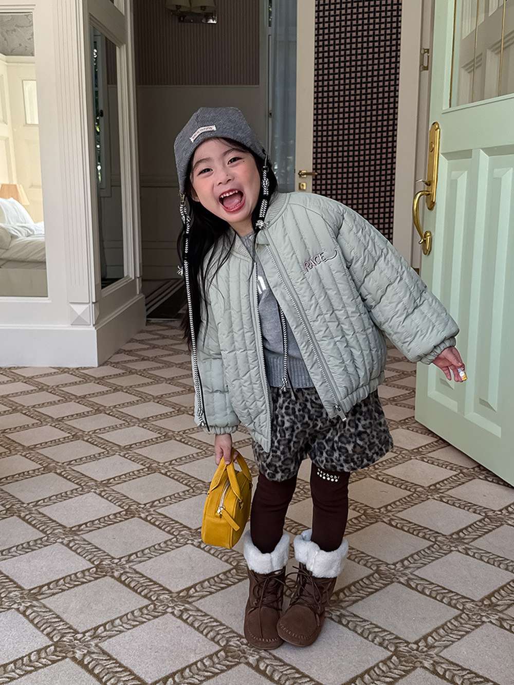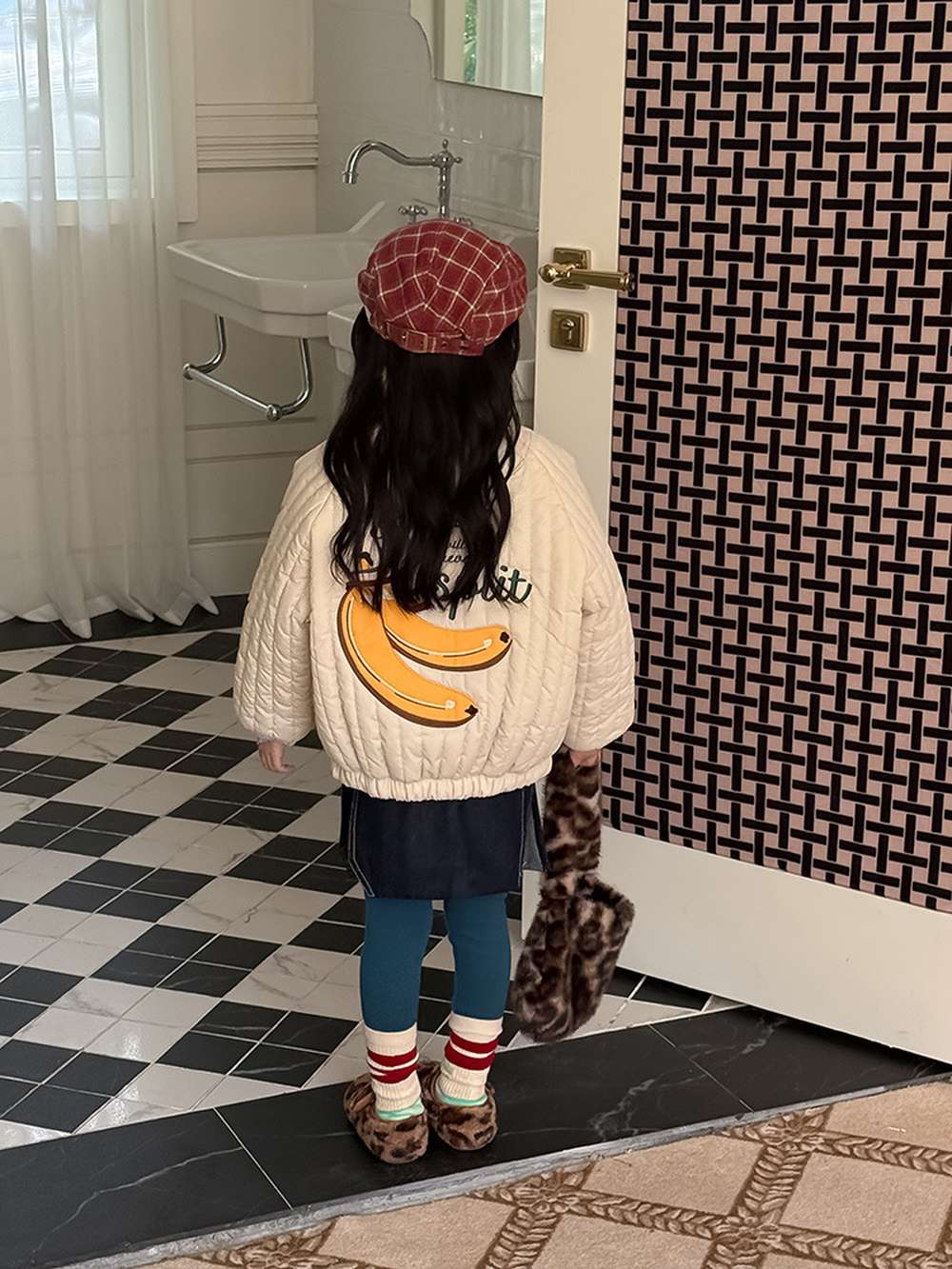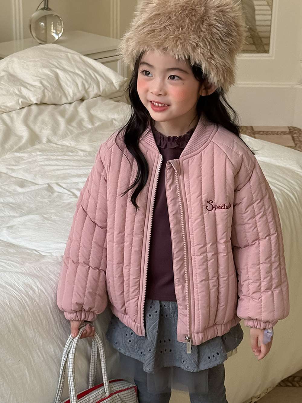This long-sleeved quilted jacket is a children's item that is filled with padding for fluffy warmth. The all-over embroidery of character patterns adds a special, adorable touch to this casual outerwear . The lining is made of soft rabbit fur-like material, making this jacket both comfortable and stylish, making it a stylish winter garment for the cold season.