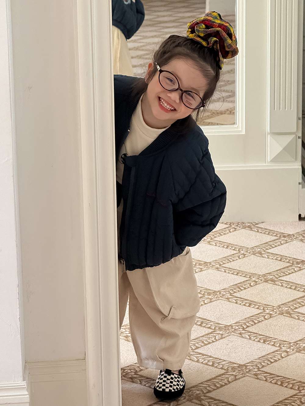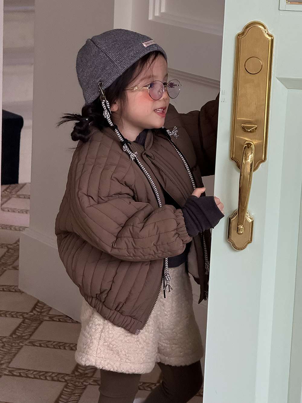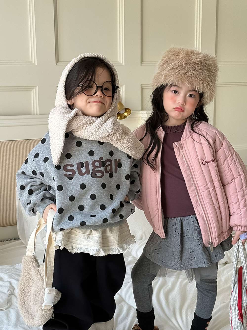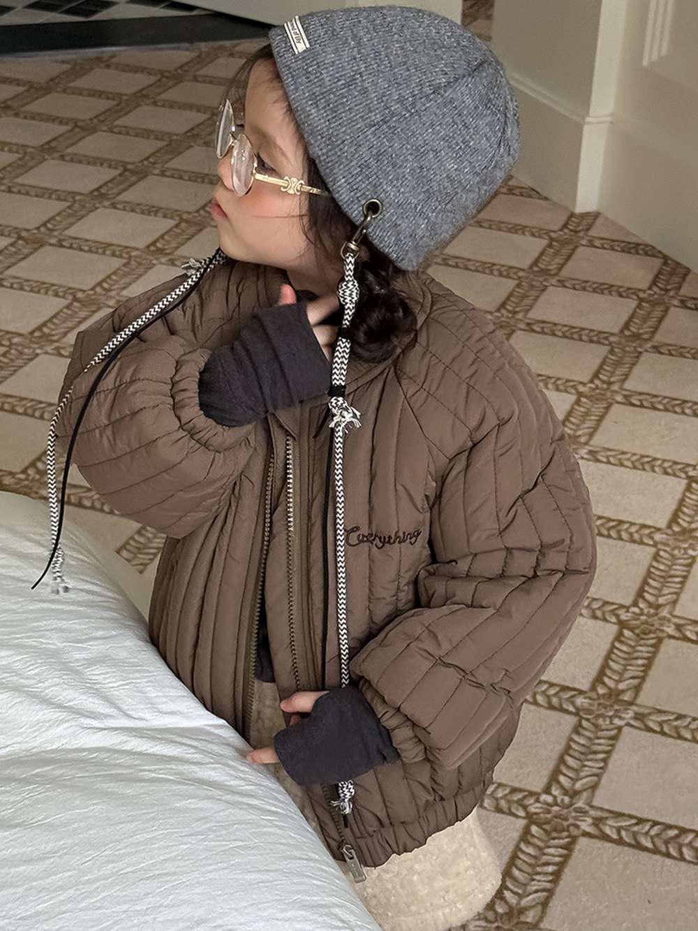This long-sleeved quilted jacket is a children's item that is filled with padding for fluffy warmth. The all-over embroidery of character patterns adds a special, adorable touch to this casual outerwear . The lining is made of soft rabbit fur-like material, making this jacket both comfortable and stylish, making it a stylish winter garment for the cold season.